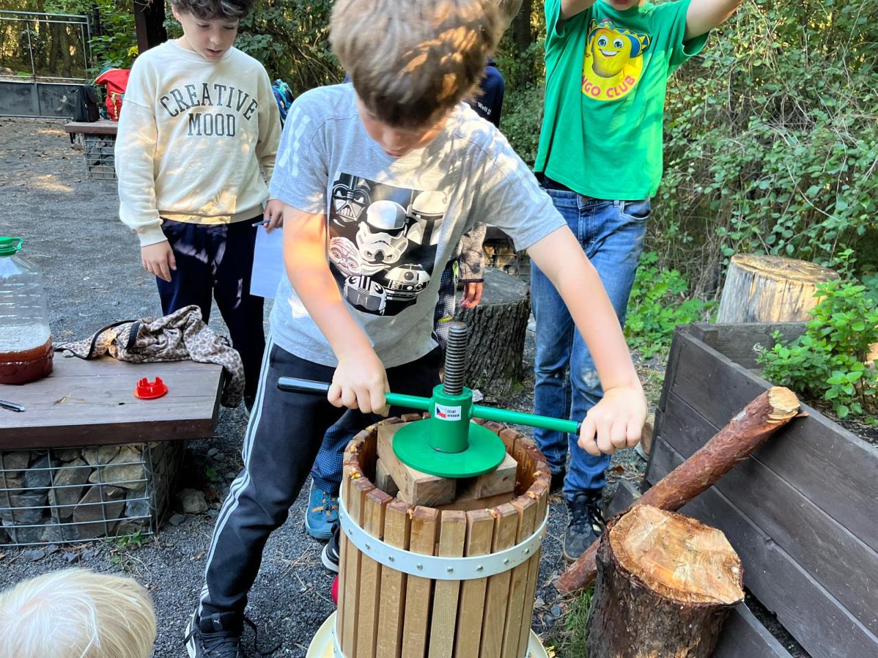 Vůně čerstvě lisovaných jablek je pro mne jedním ze symbolů pozdního léta a podzimu. Moštování, tedy proces získávání šťávy z ovoce, je stará tradice, která by se měla vracet do našich domovů. V době, kdy je na prvním místě kvalita a původ potravin, se domácí výroba moštu stává nejen koníčkem, ale i způsobem, jak si zajistit lahodný nápoj plný vitaminů a bez přidaných chemikálií. Naše lesní školka moštuje každý rok – letos to zvládla dokonce několikrát. I s návštěvou holek a kluků z 5. třídy, kteří si moštování nejen prakticky vyzkoušeli, ale napsali o tom i slohové cvičení – popis pracovního postupu.
