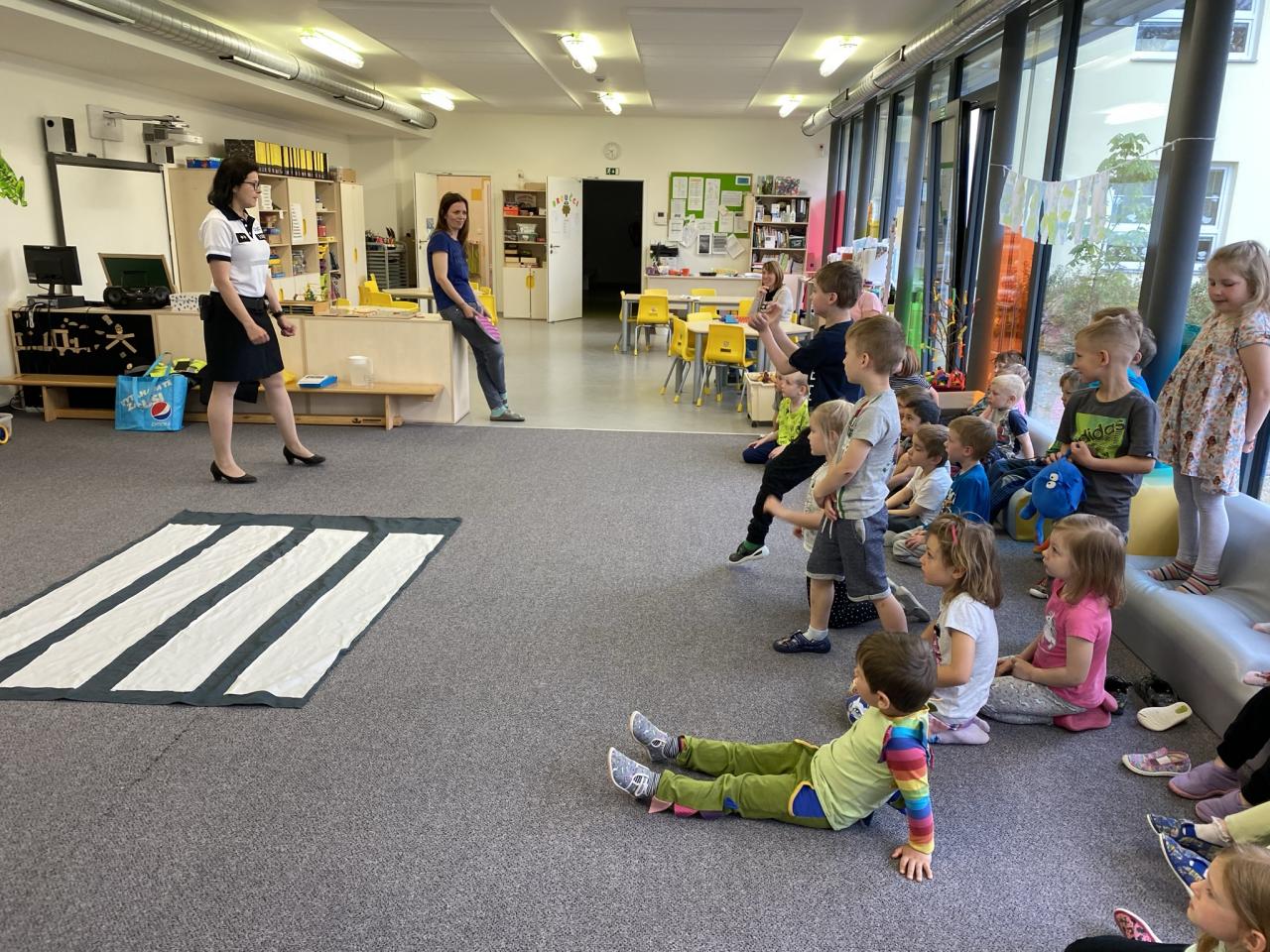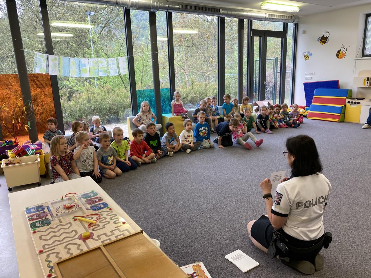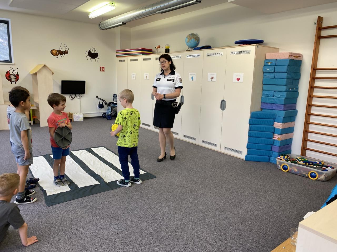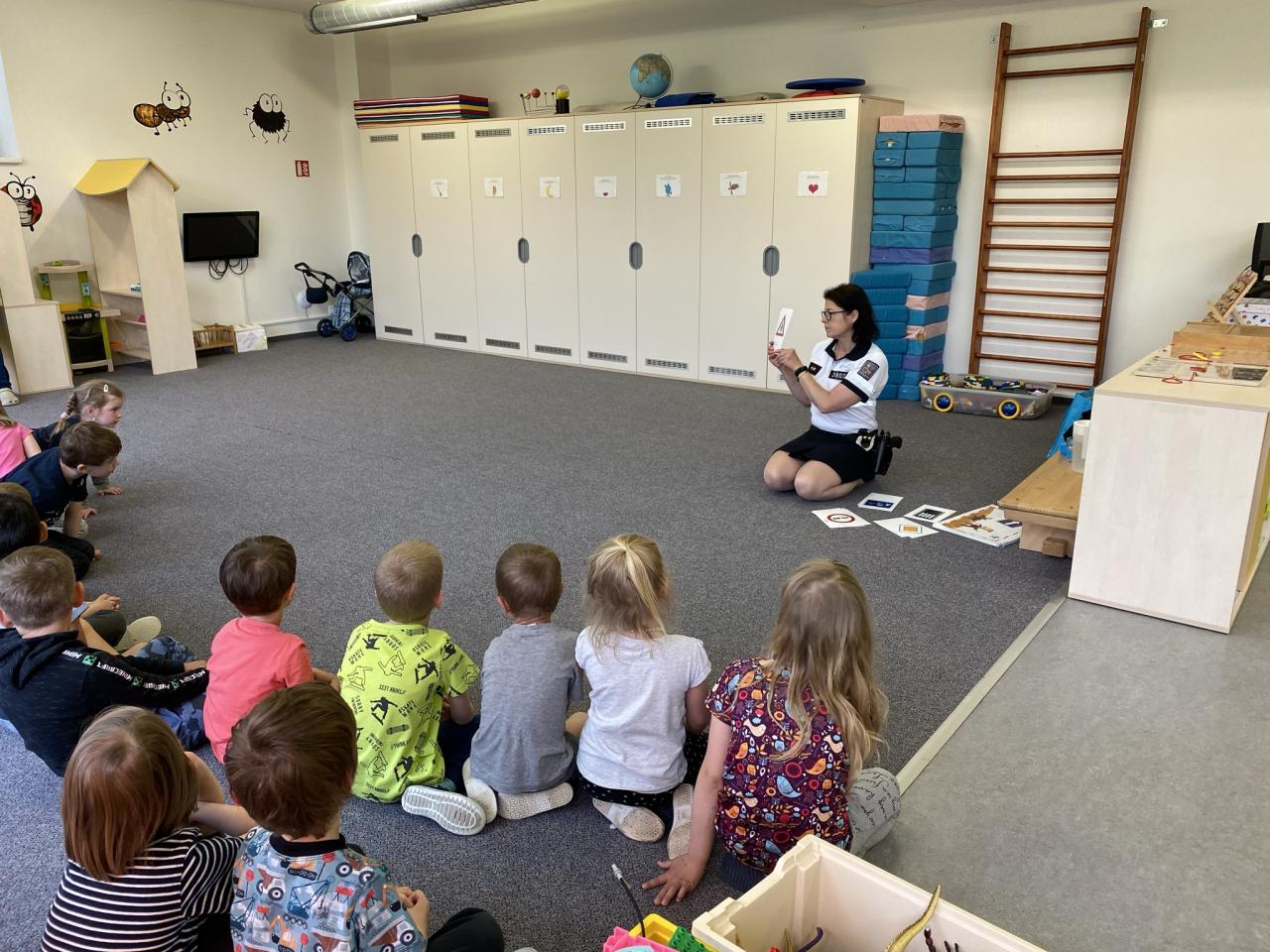 Za dětmi přijela do školky paní policistka, aby jim přiblížila bezpečnost na silnici.