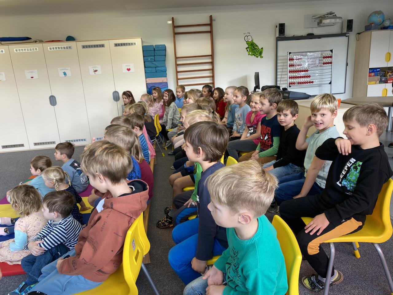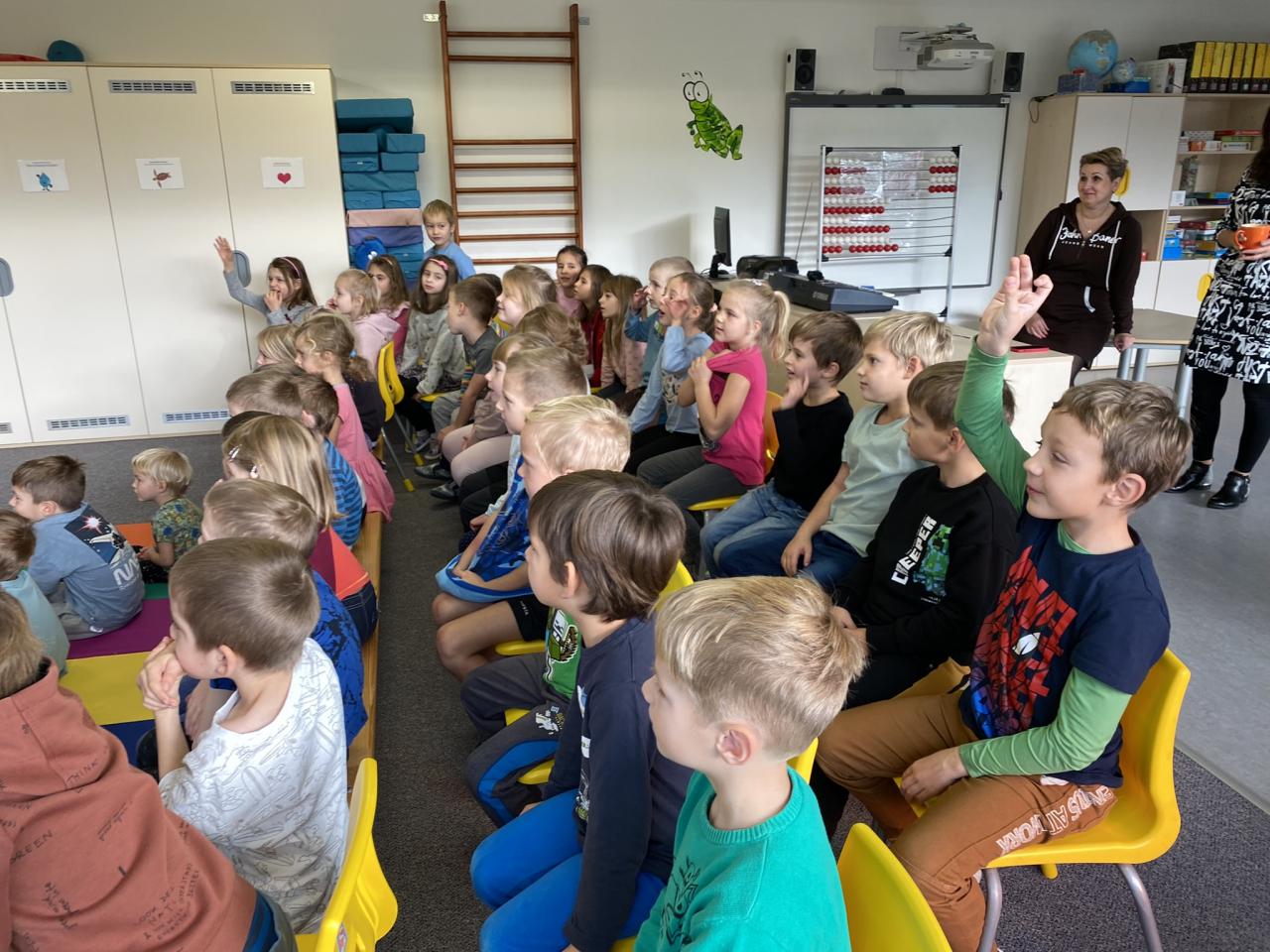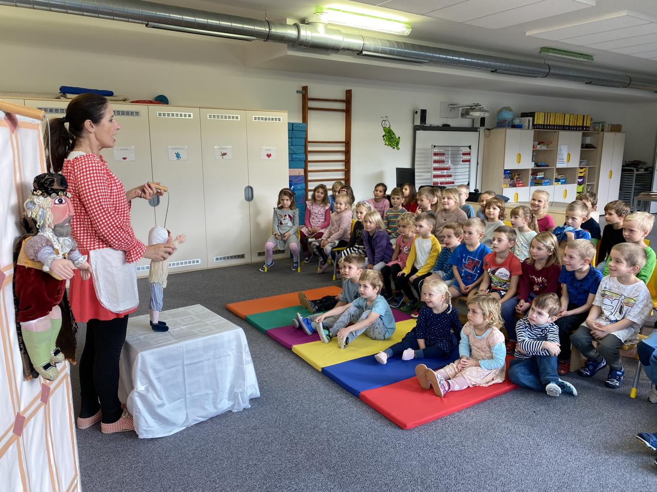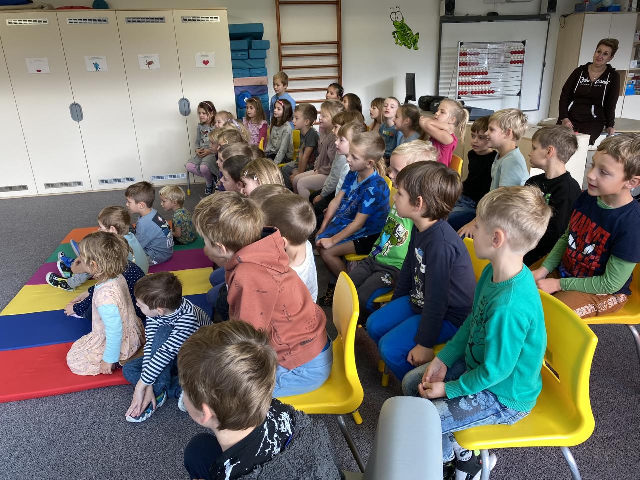 Za dětmi přijelo do školky divadlo Liberta s interaktivní pohádkou O Zlatovlásce, pohádka o chytrém Jiříkovi, mluvících zvířátkách a zlatovlasé panně. Dětem se pohádka moc líbila.