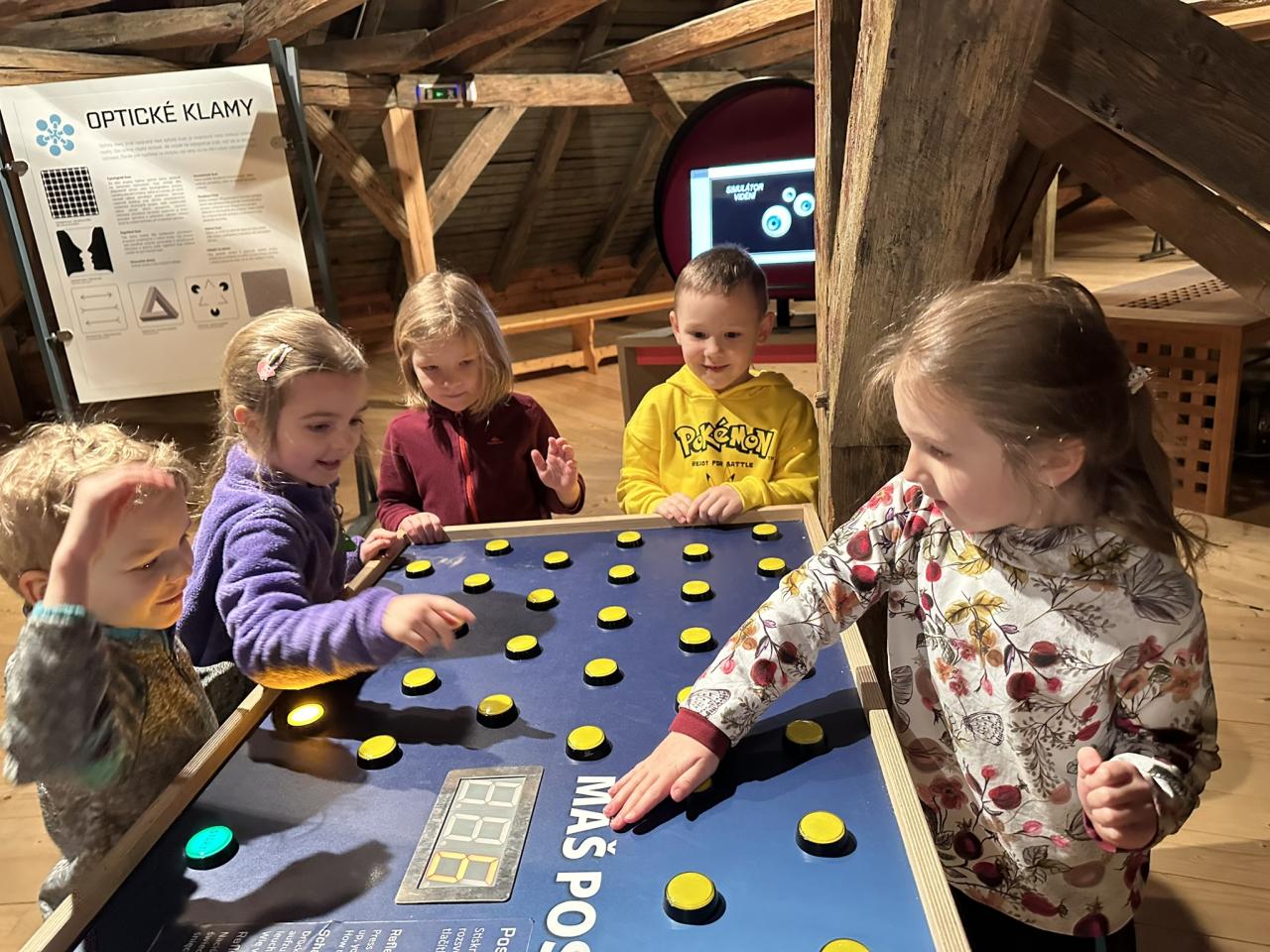 Na výlet jsme se vydali do Roztok u Prahy na interaktivní výstavu Chytrá zábava. Děti zábavnou formou objevovaly principy elektromagnetické indukce, černou díru a vyzkoušely si různé optické klamy. Výstava nabídla spoustu zajímavostí, které si děti mohly samy vyzkoušet a prozkoumat vlastními smysly.