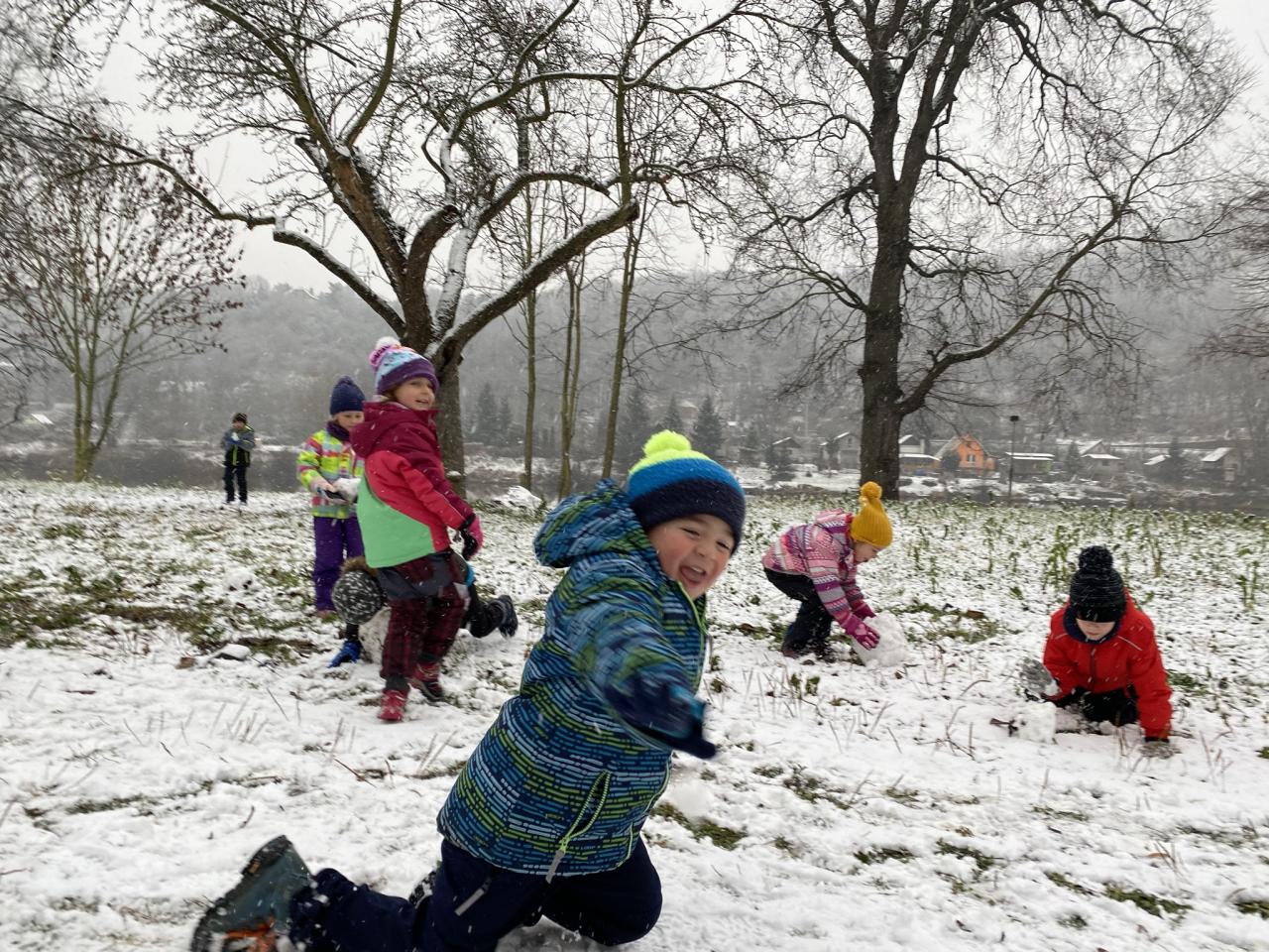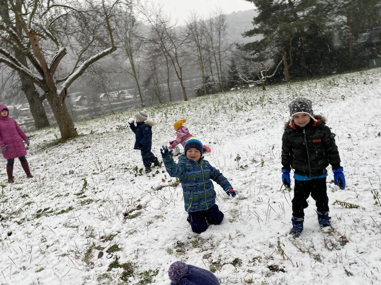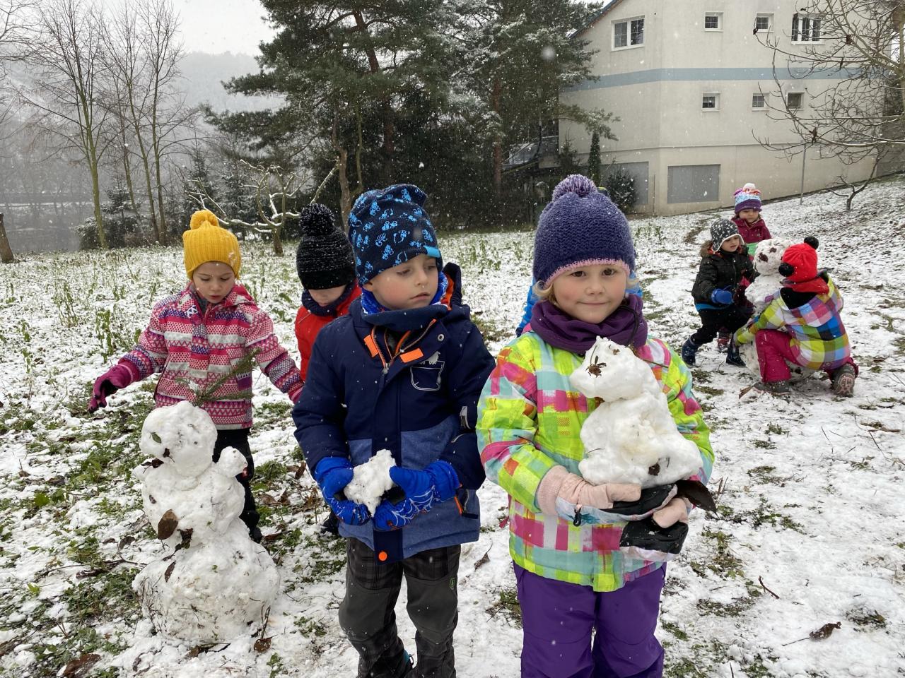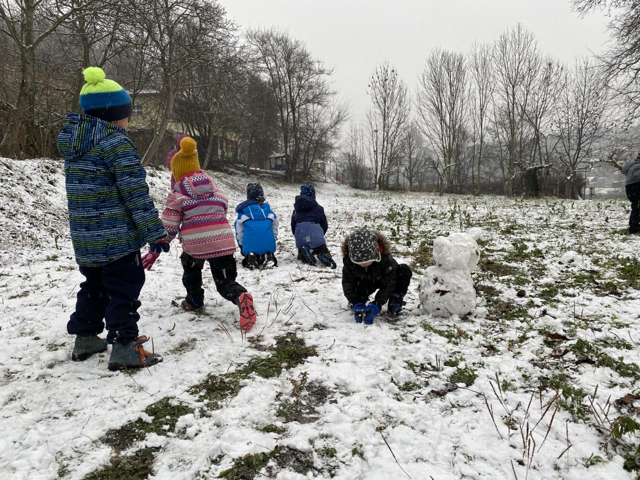 Podařilo se nám postavit pár malých sněhuláků a udělat i menší koulovačku.