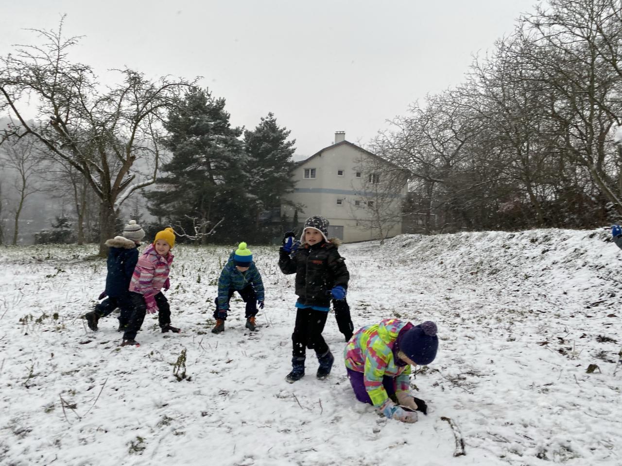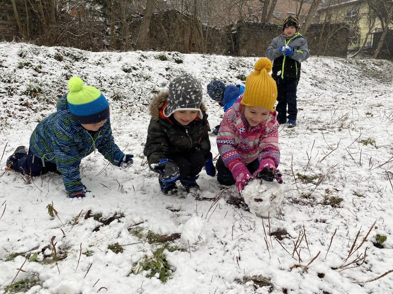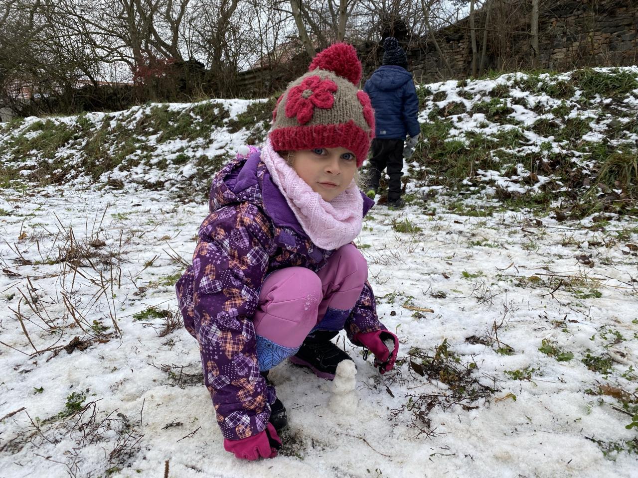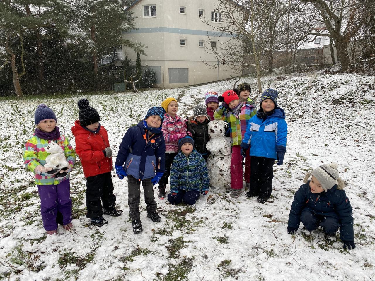 Podařilo se nám postavit pár malých sněhuláků a udělat i menší koulovačku.