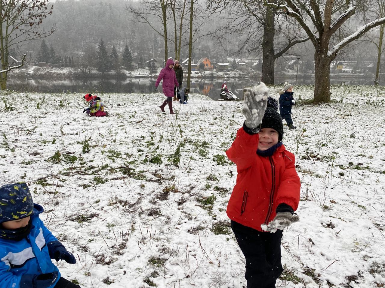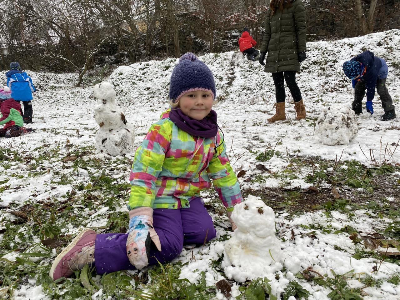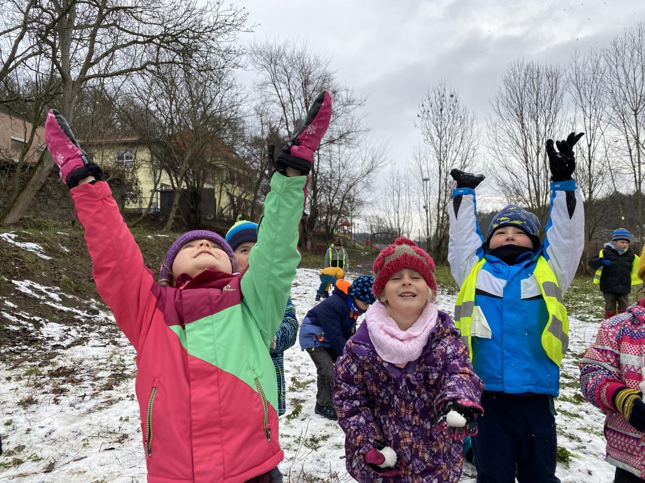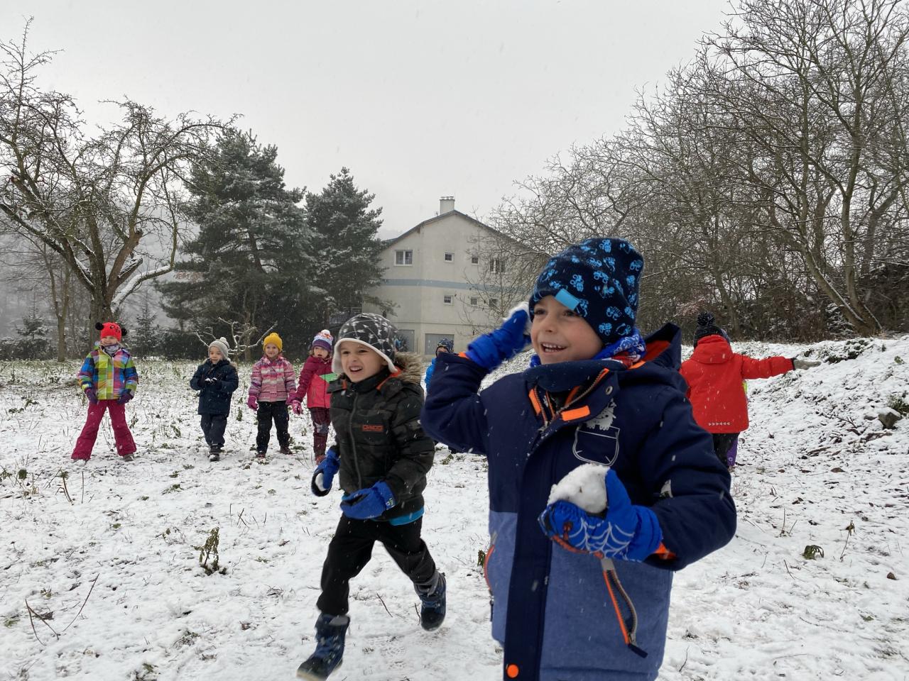 Podařilo se nám postavit pár malých sněhuláků a udělat i menší koulovačku.