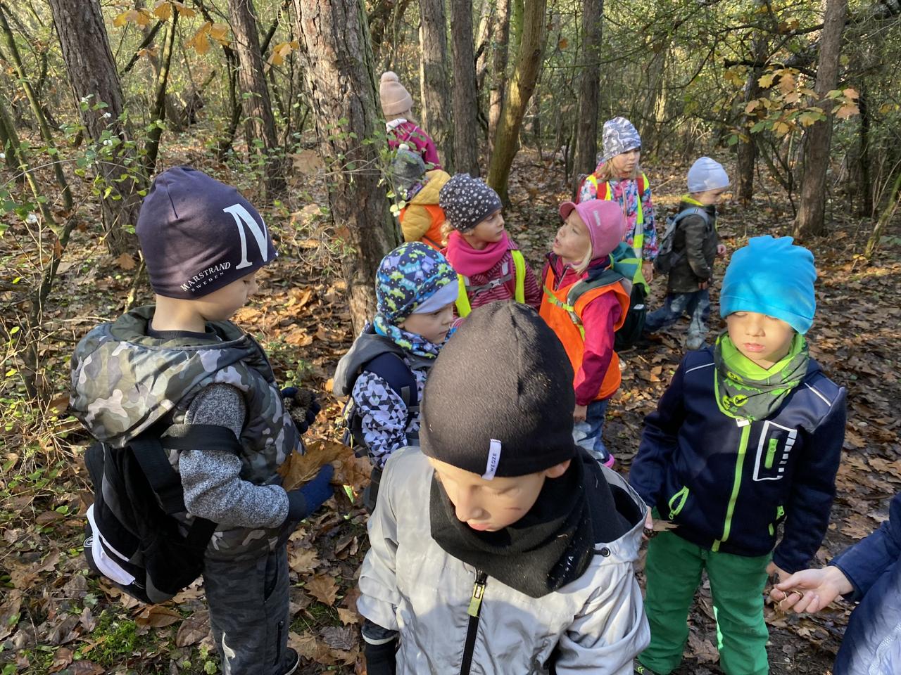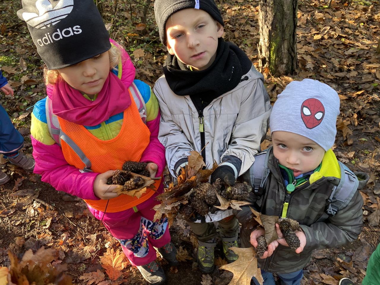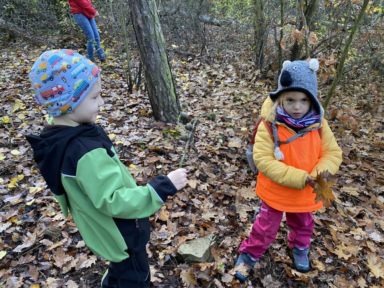 Tento lesní den jsme v lese společně poznávali různé přírodniny, stromy a děti si postavily domečky z přírodnin.