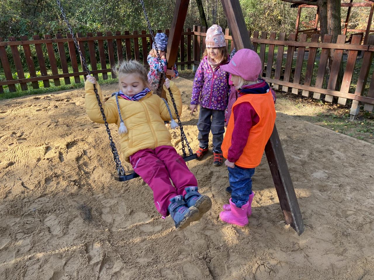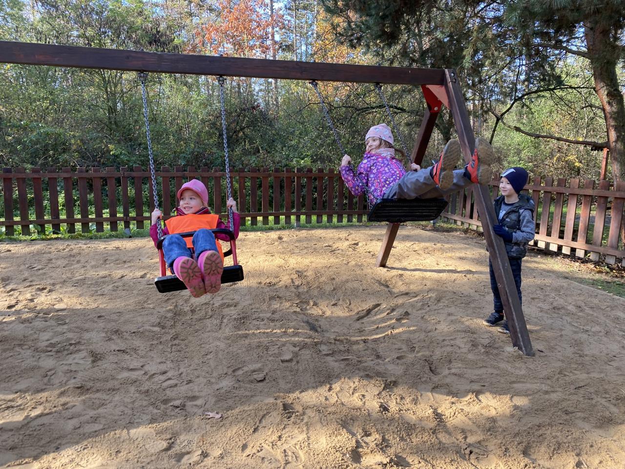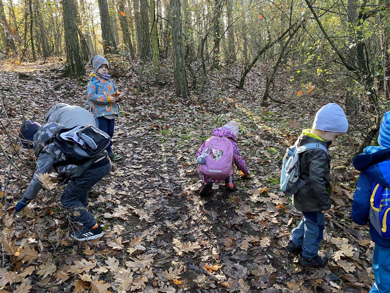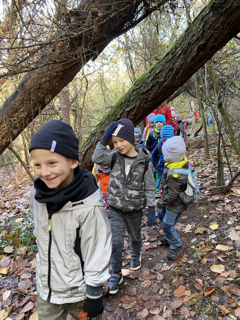 Tento lesní den jsme v lese společně poznávali různé přírodniny, stromy a děti si postavily domečky z přírodnin.