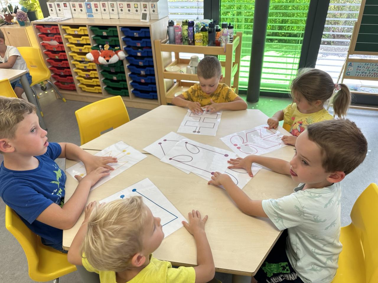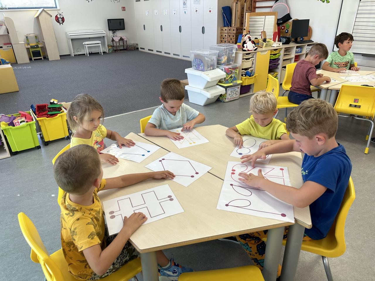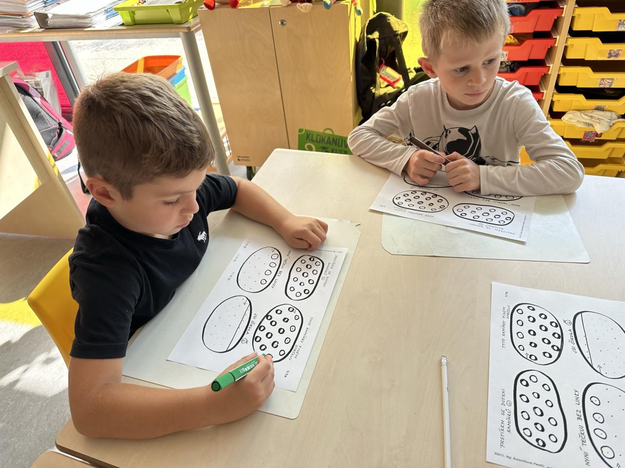 Od září u nás probíhá stimulační program Maxík pro předškoláky. Děti se učí systematicky pracovat, všímat si své práce a dodržovat pravidla. Nacvičují nové pohybové stereotypy – správné sezení, správné dýchání a úchop tužky.