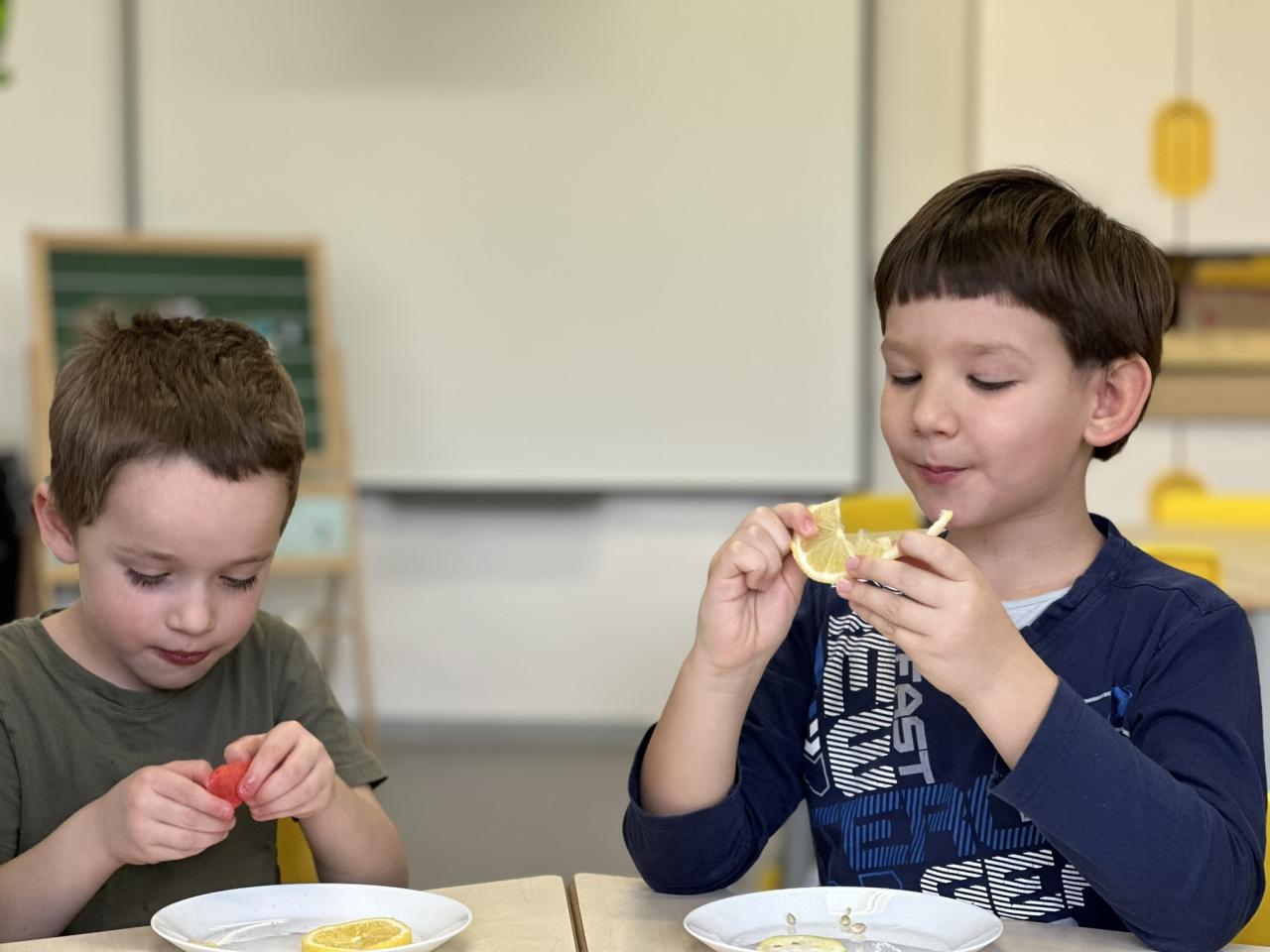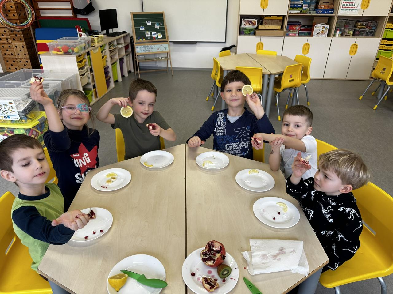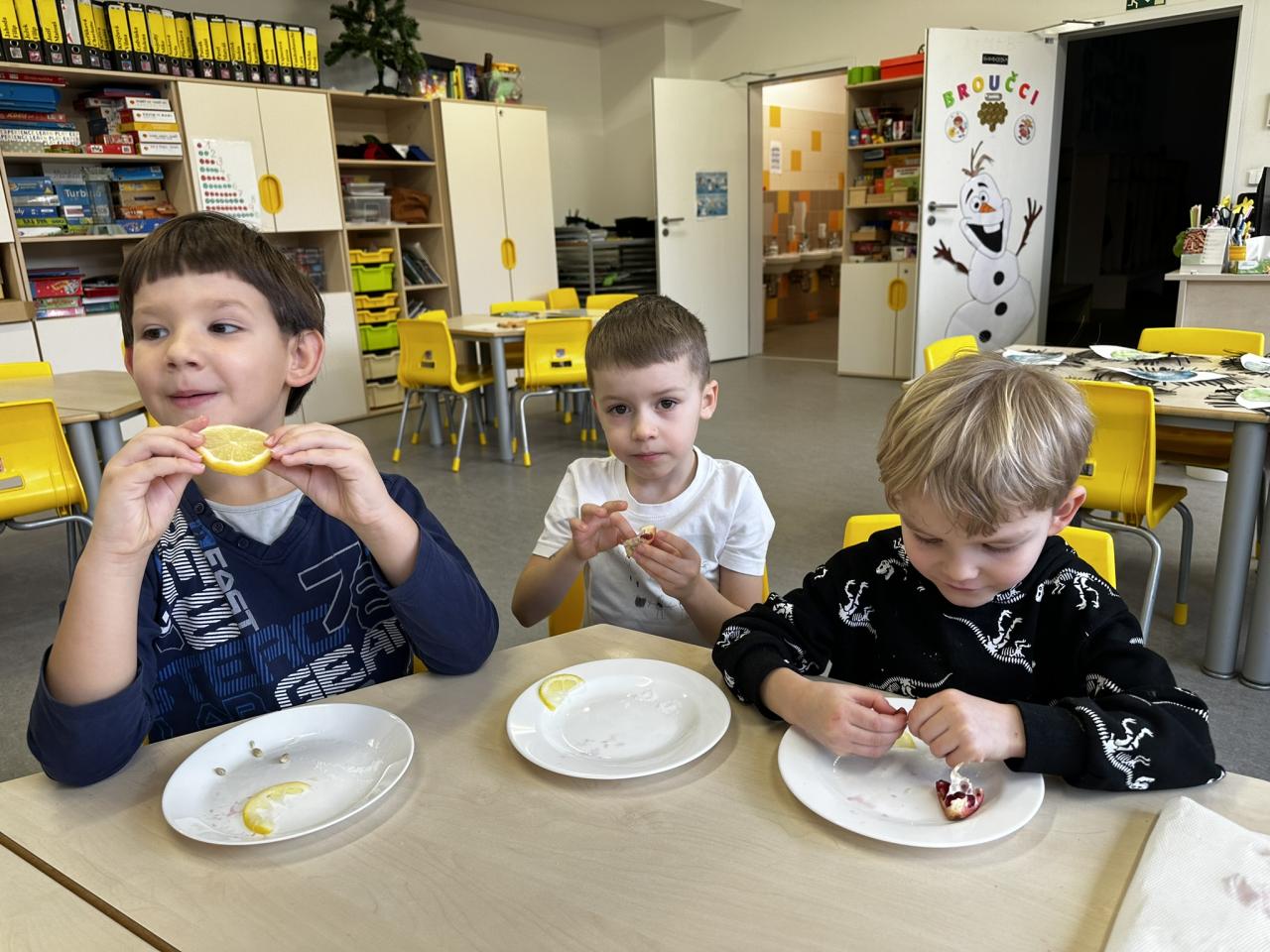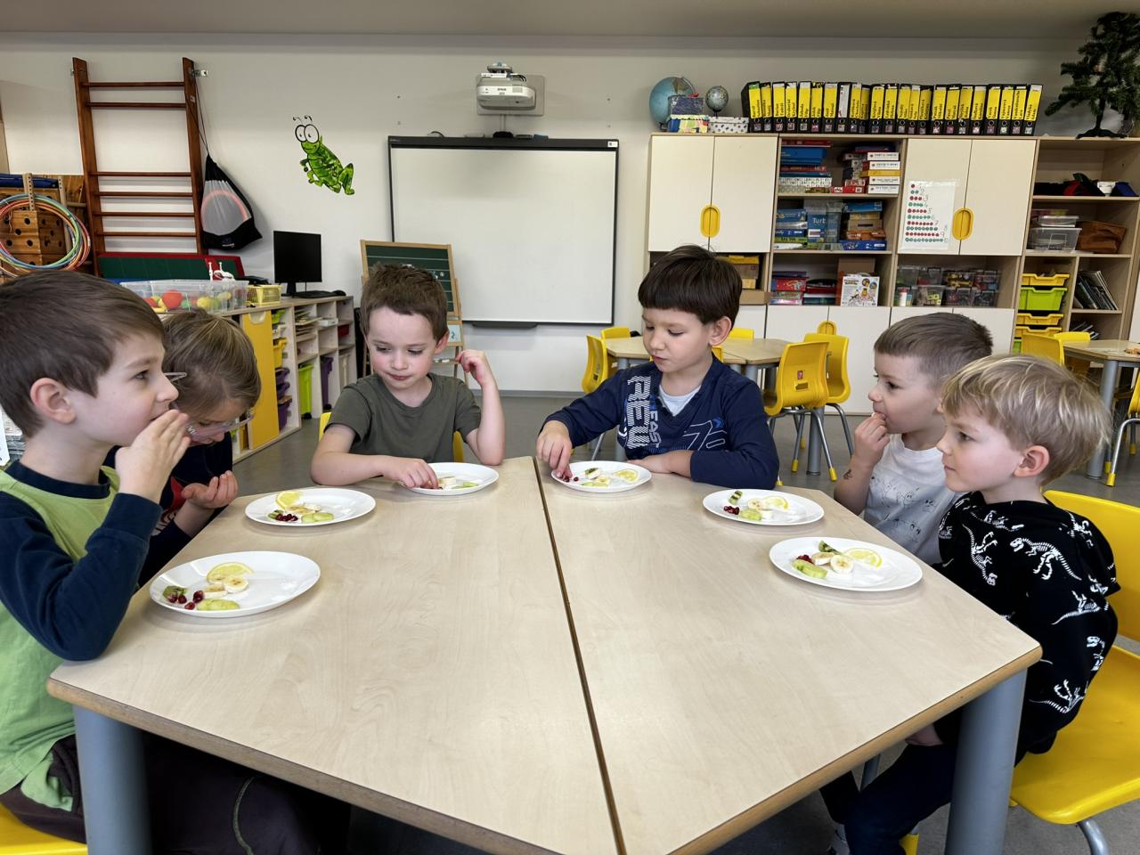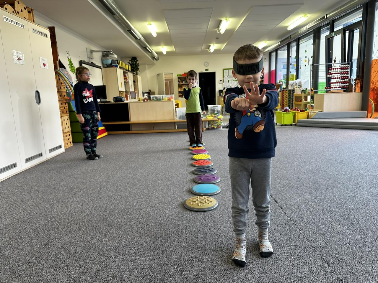 V tomto týdnu jsme s dětmi prováděli zajímavé aktivity zaměřené na vnímání smyslů. Při tvoření děti kreslily oko a do něj nakreslily to, co oko právě vidí. Další zábavou byla hra na zrcadla, kde jedno dítě opakovalo pohyby druhého. Děti ochutnávaly různé chutě a chodily po slepu podle navigátora.