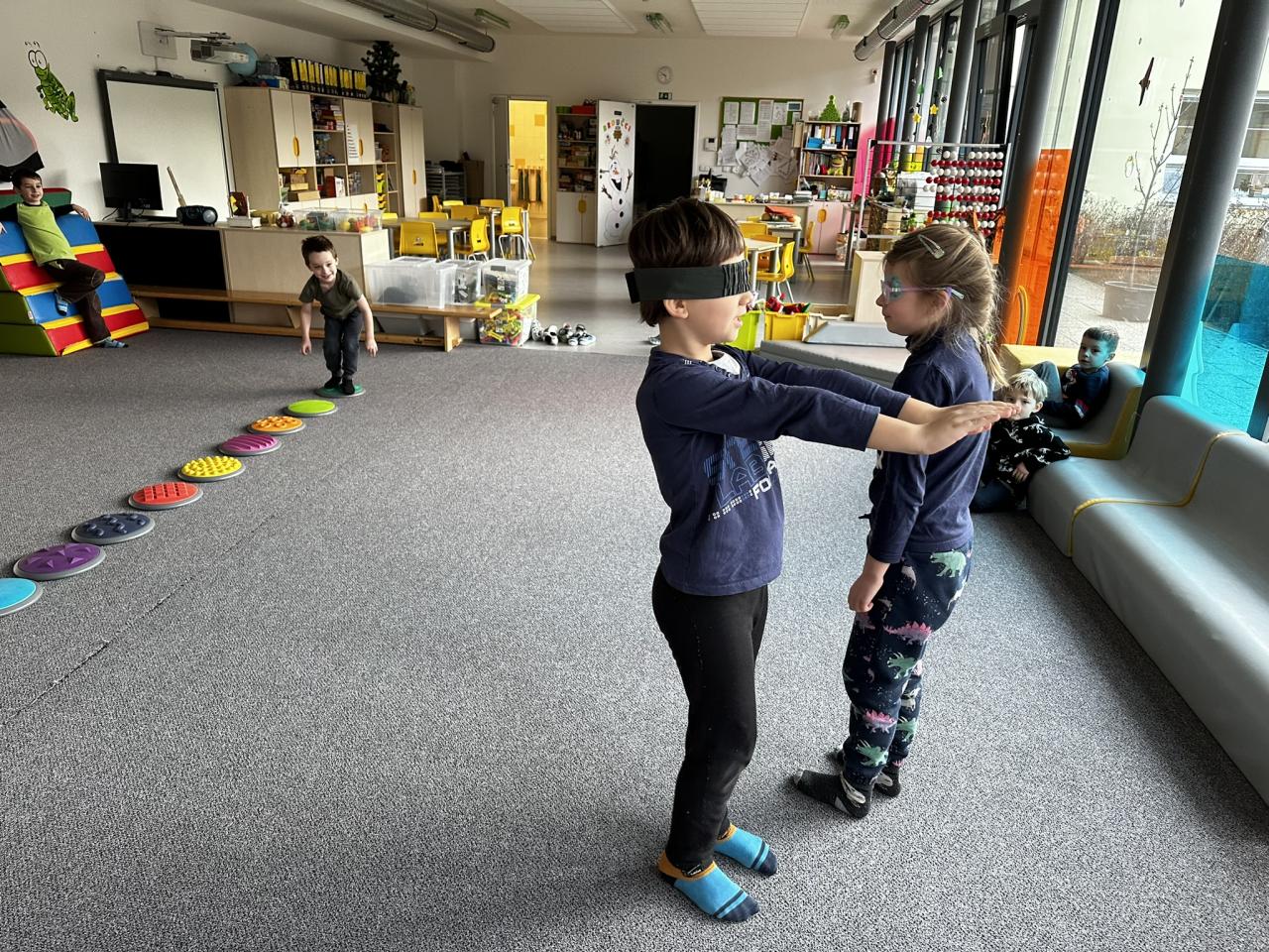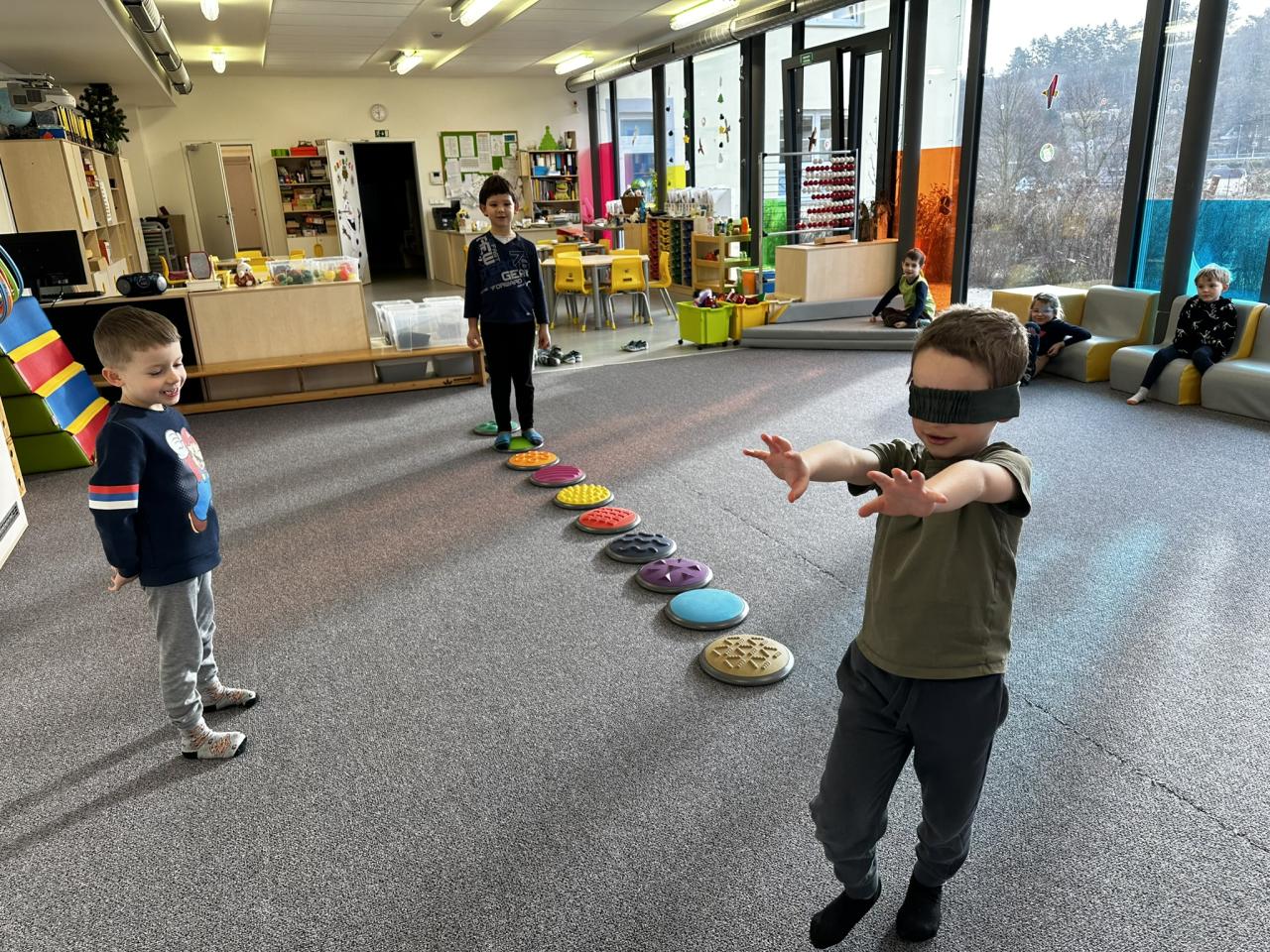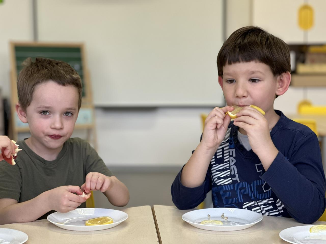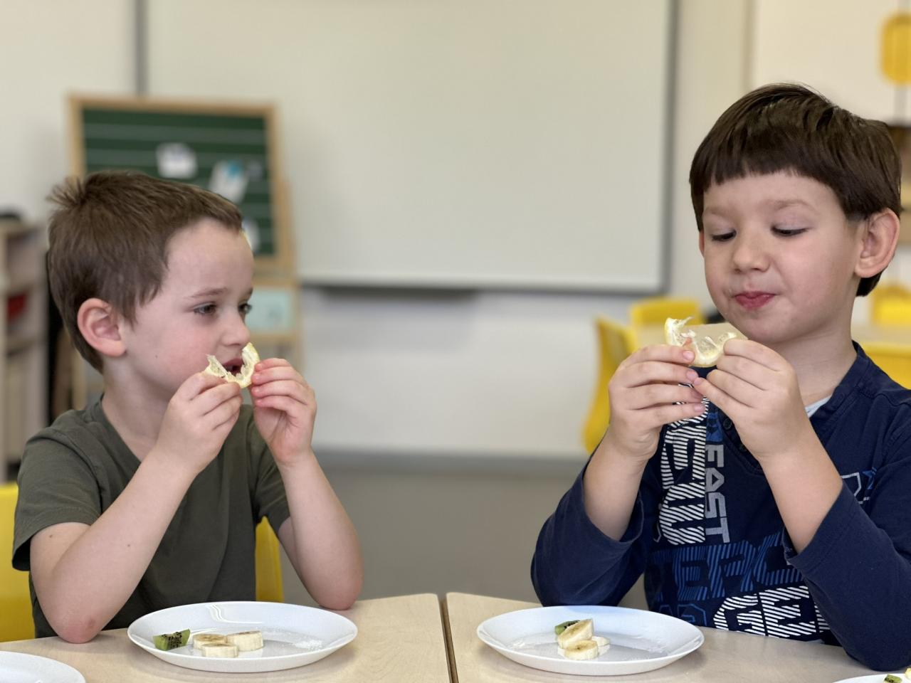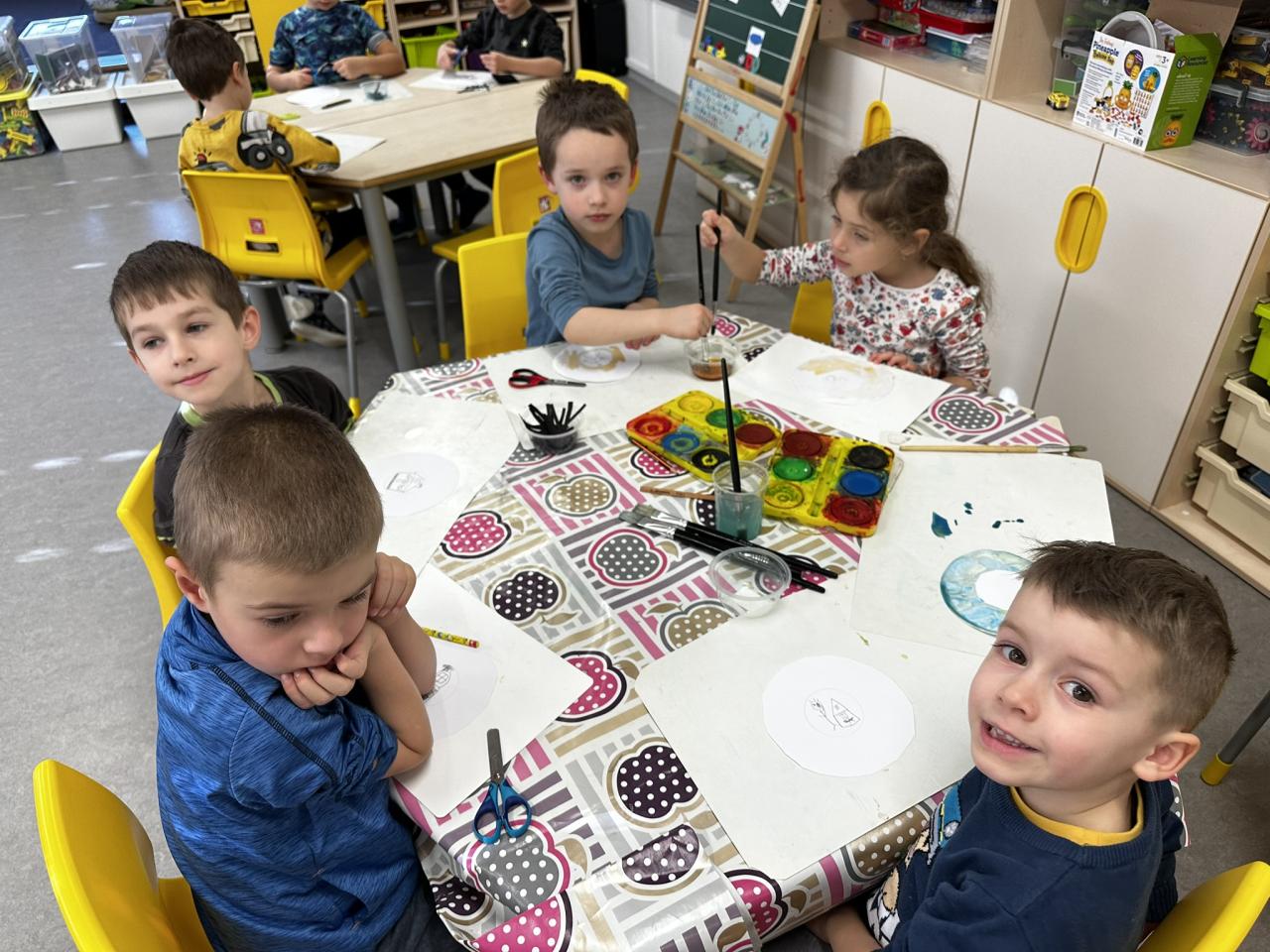 V tomto týdnu jsme s dětmi prováděli zajímavé aktivity zaměřené na vnímání smyslů. Při tvoření děti kreslily oko a do něj nakreslily to, co oko právě vidí. Další zábavou byla hra na zrcadla, kde jedno dítě opakovalo pohyby druhého. Děti ochutnávaly různé chutě a chodily po slepu podle navigátora.