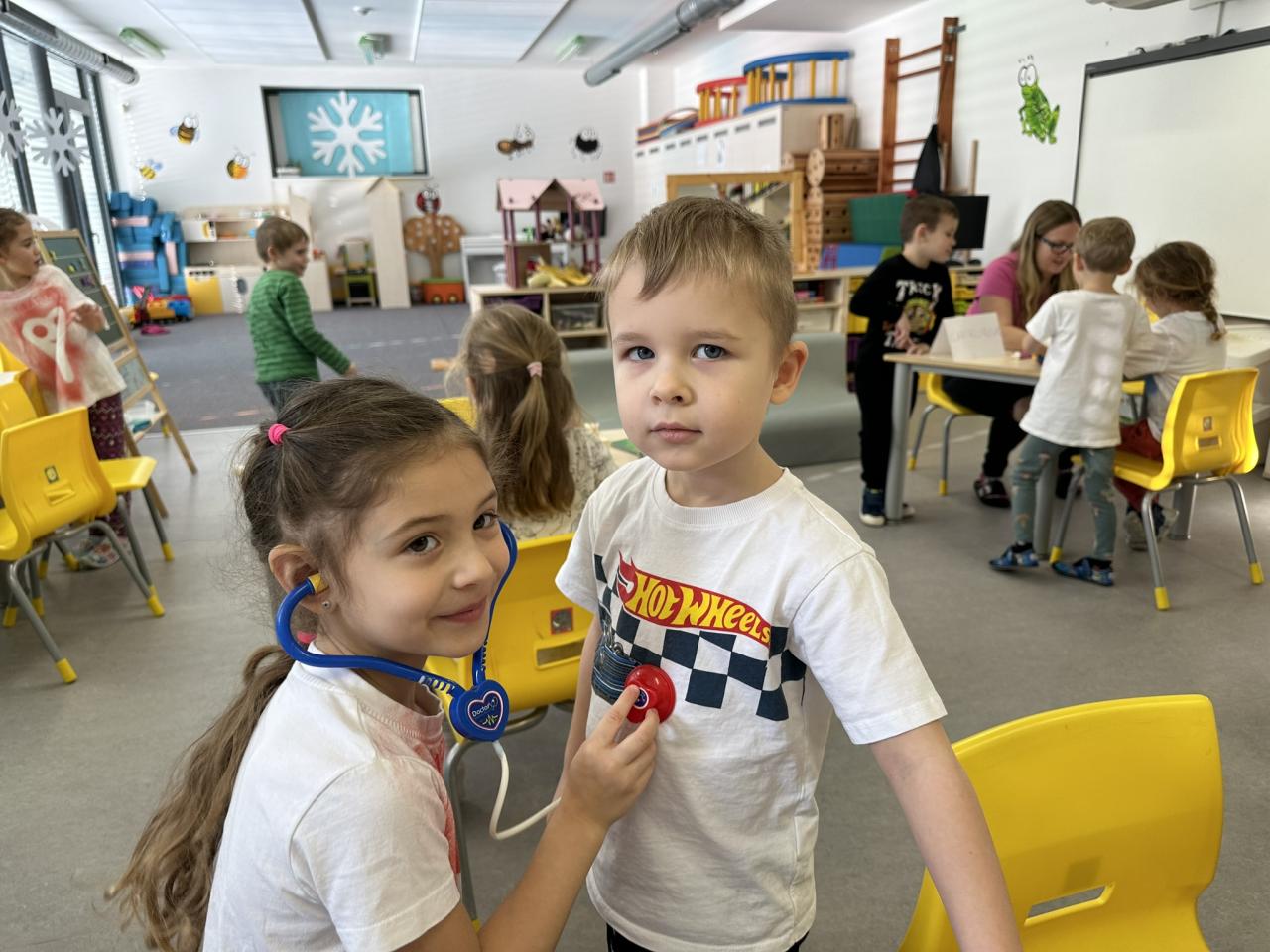 Cvičili jsme, hráli pohybové i jiné hry, dělali pokus a společně pracovali. Velkým zážitkem byl Doktorský den, kdy se celá třída proměnila v nemocnici plnou malých doktorů. Děti si vyzkoušely práci v ordinacích, např. na chirurgii, ORL, oční atd.