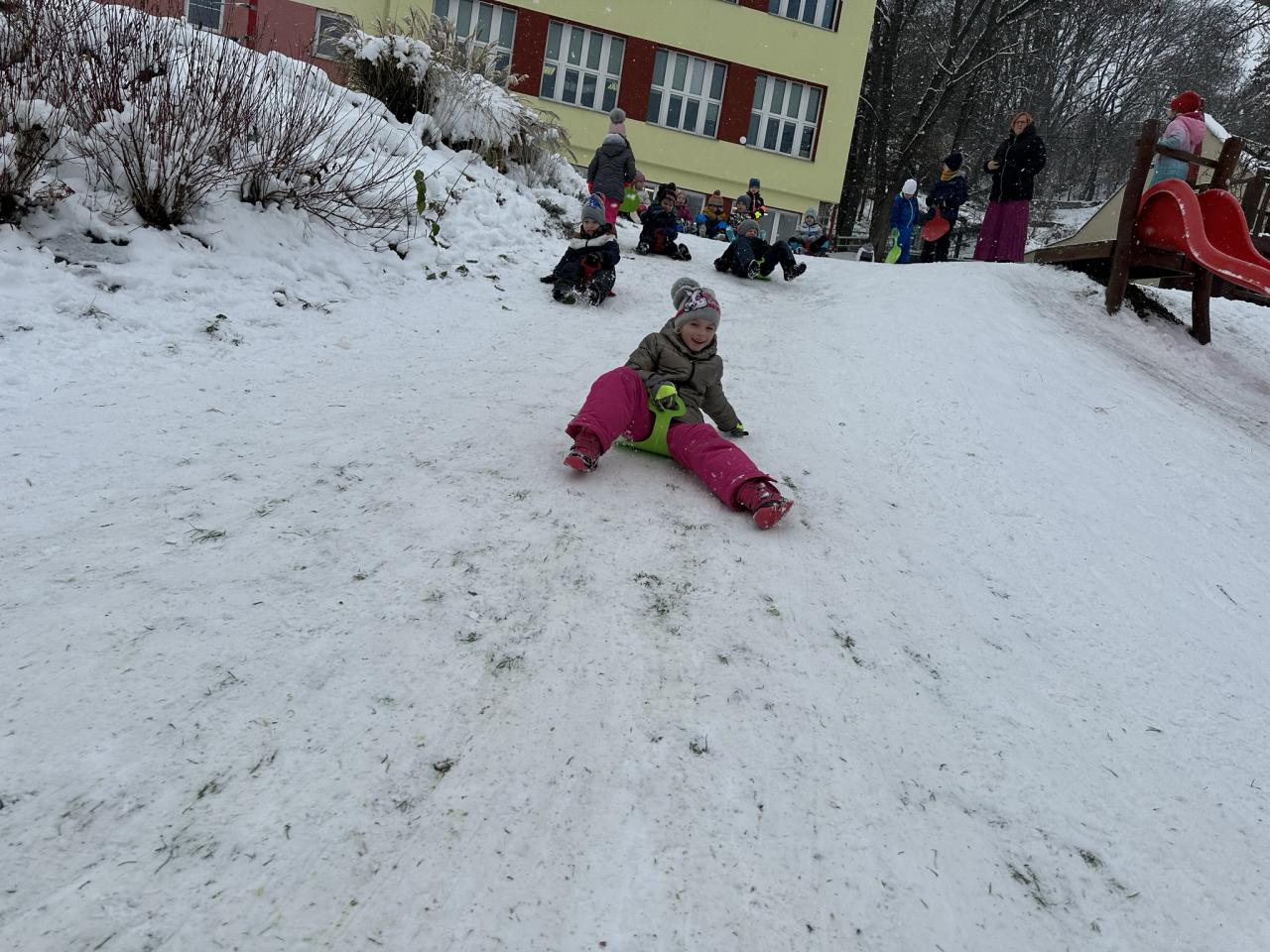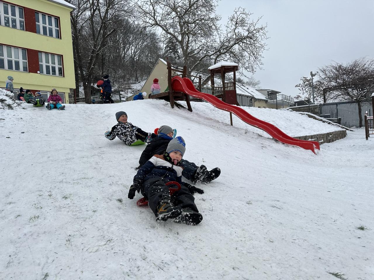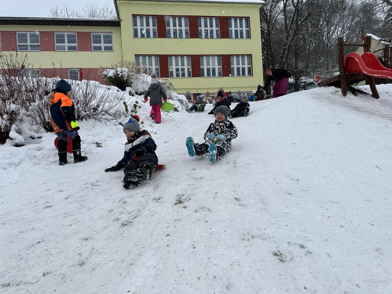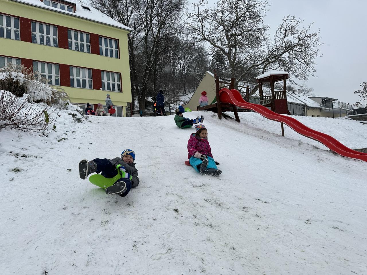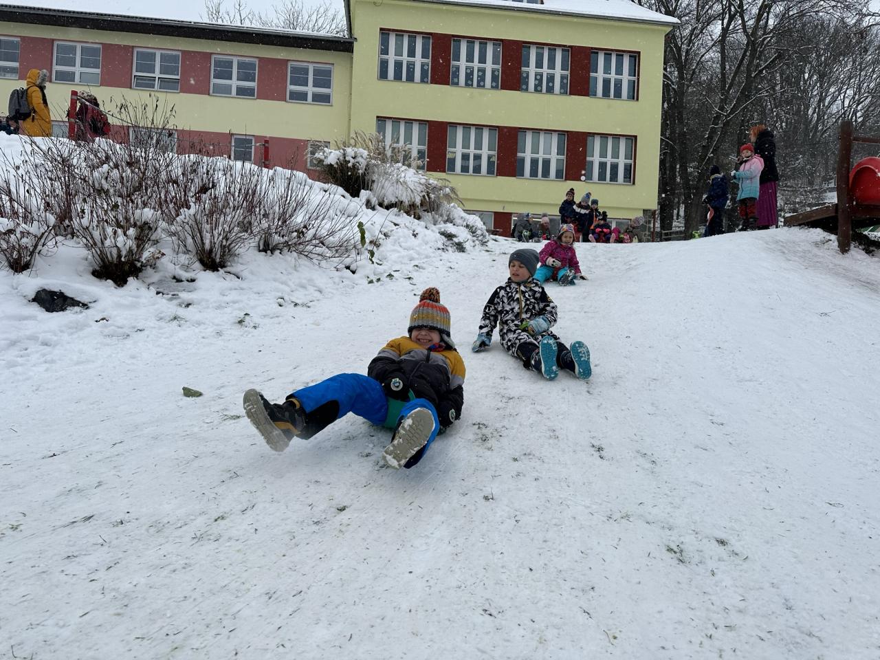 Tento den si děti po dlouhé době užily sníh.