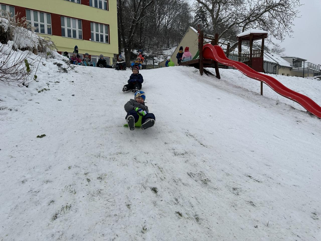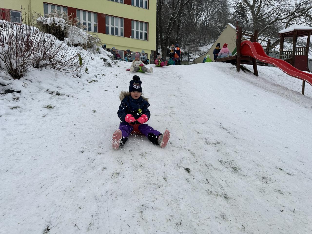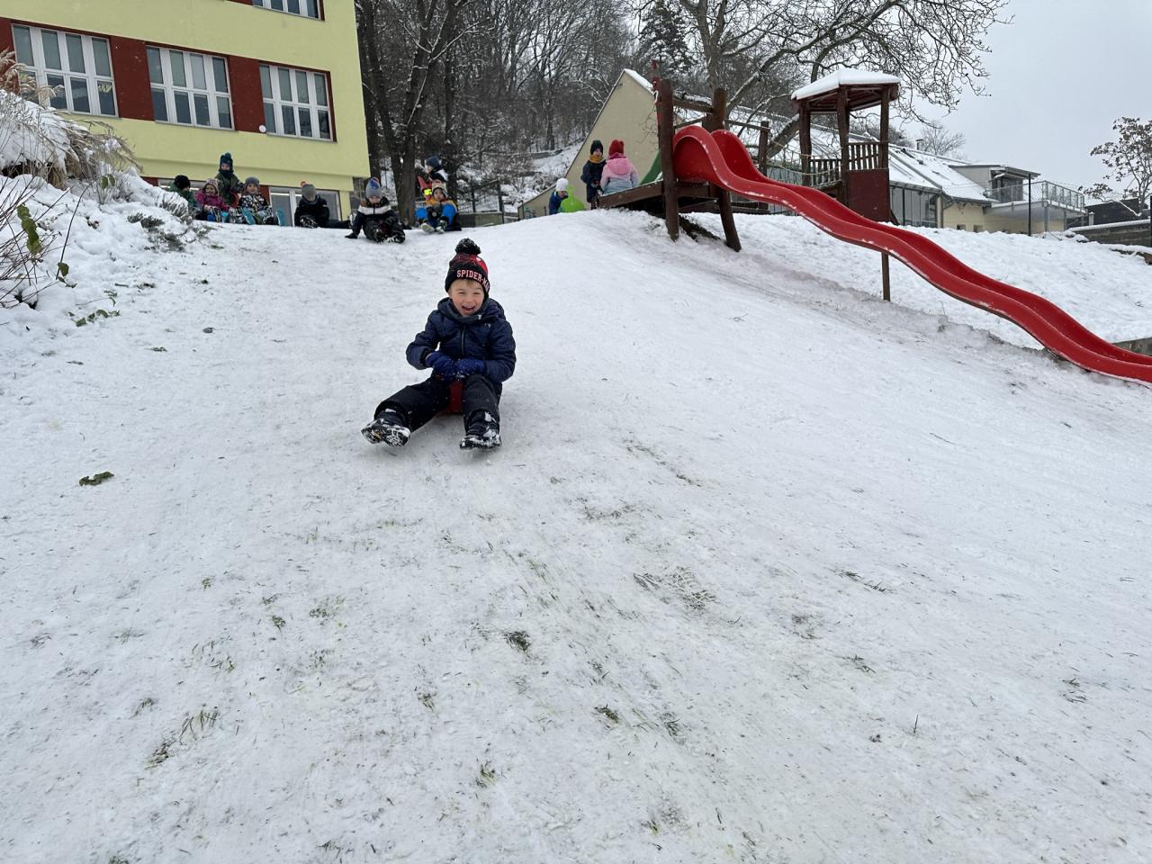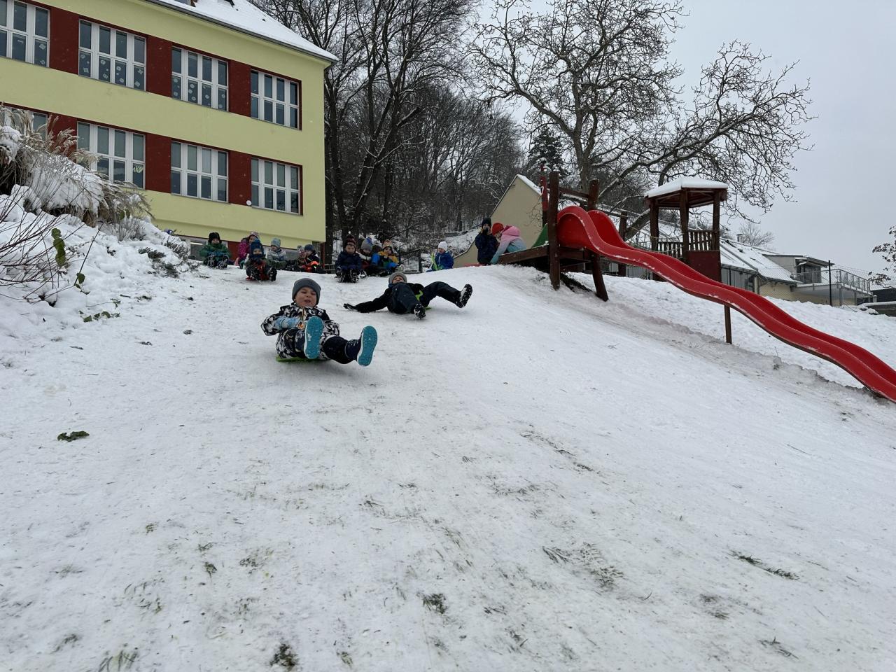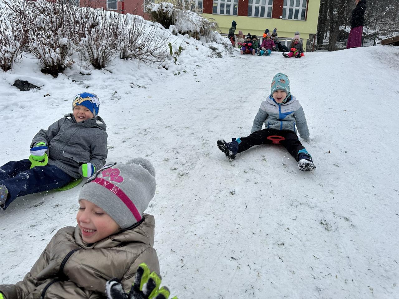 Tento den si děti po dlouhé době užily sníh.