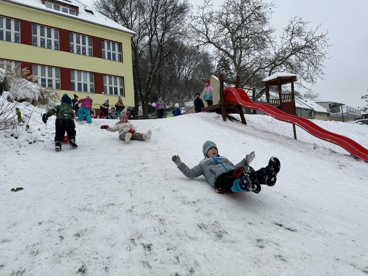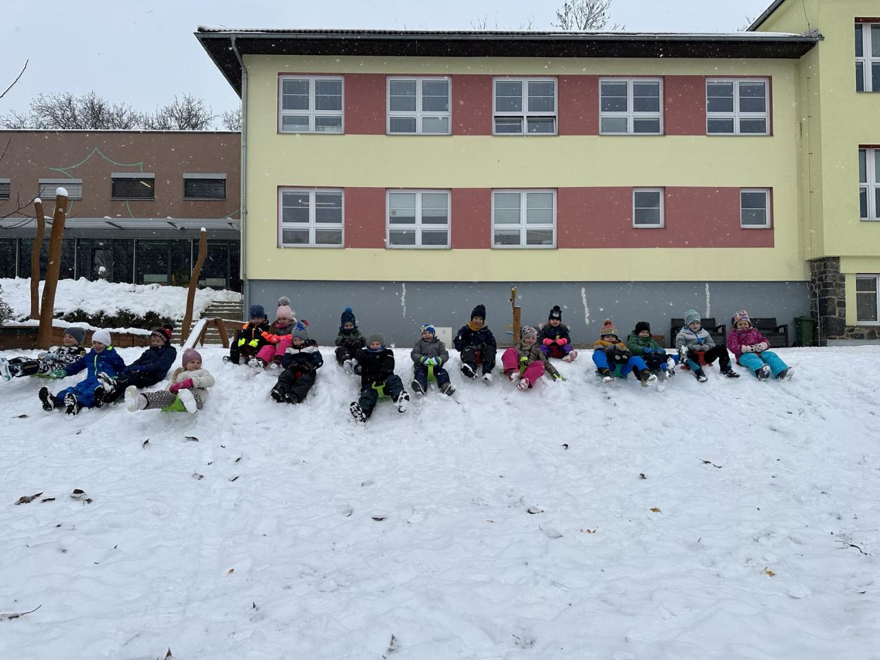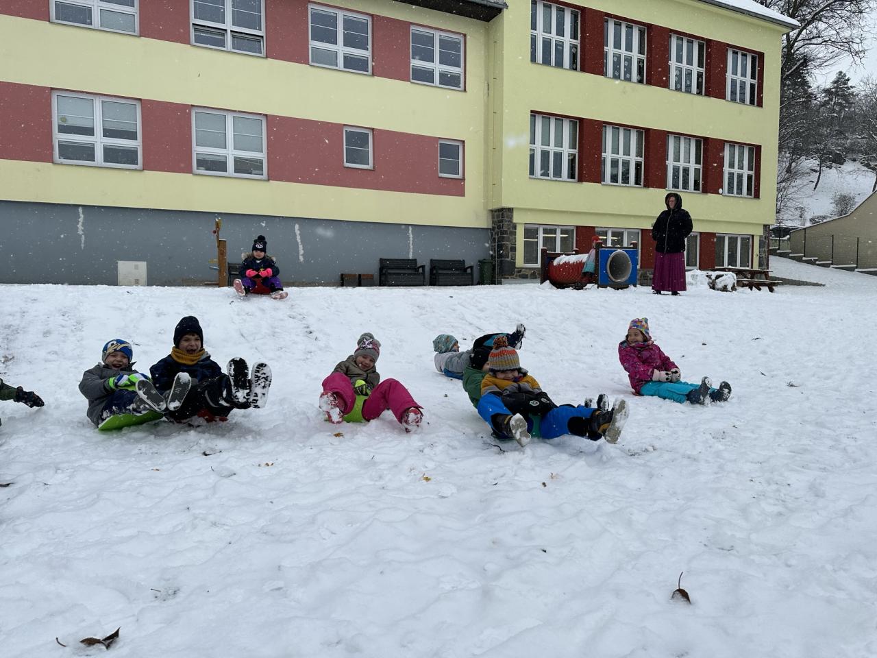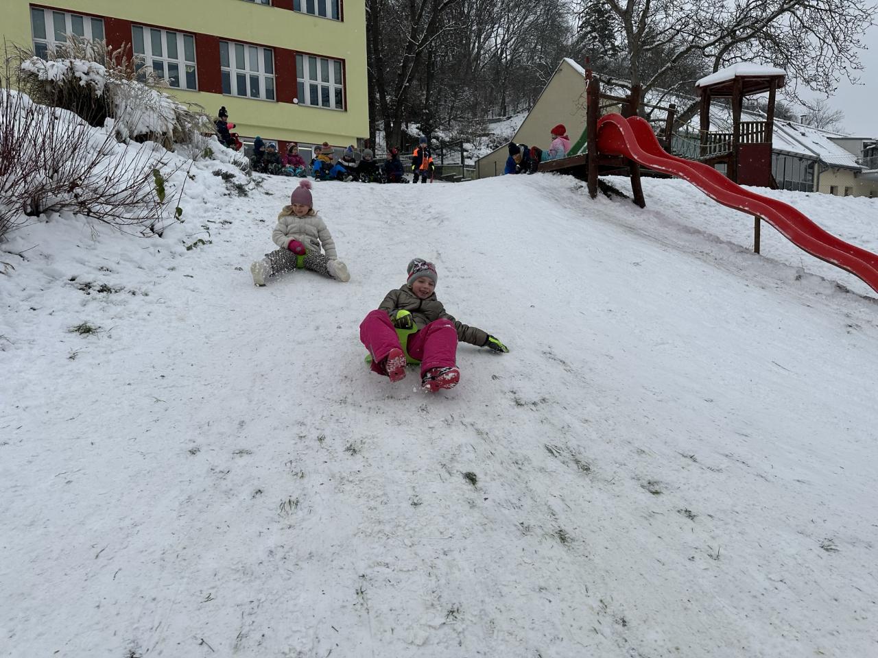 Tento den si děti po dlouhé době užily sníh.