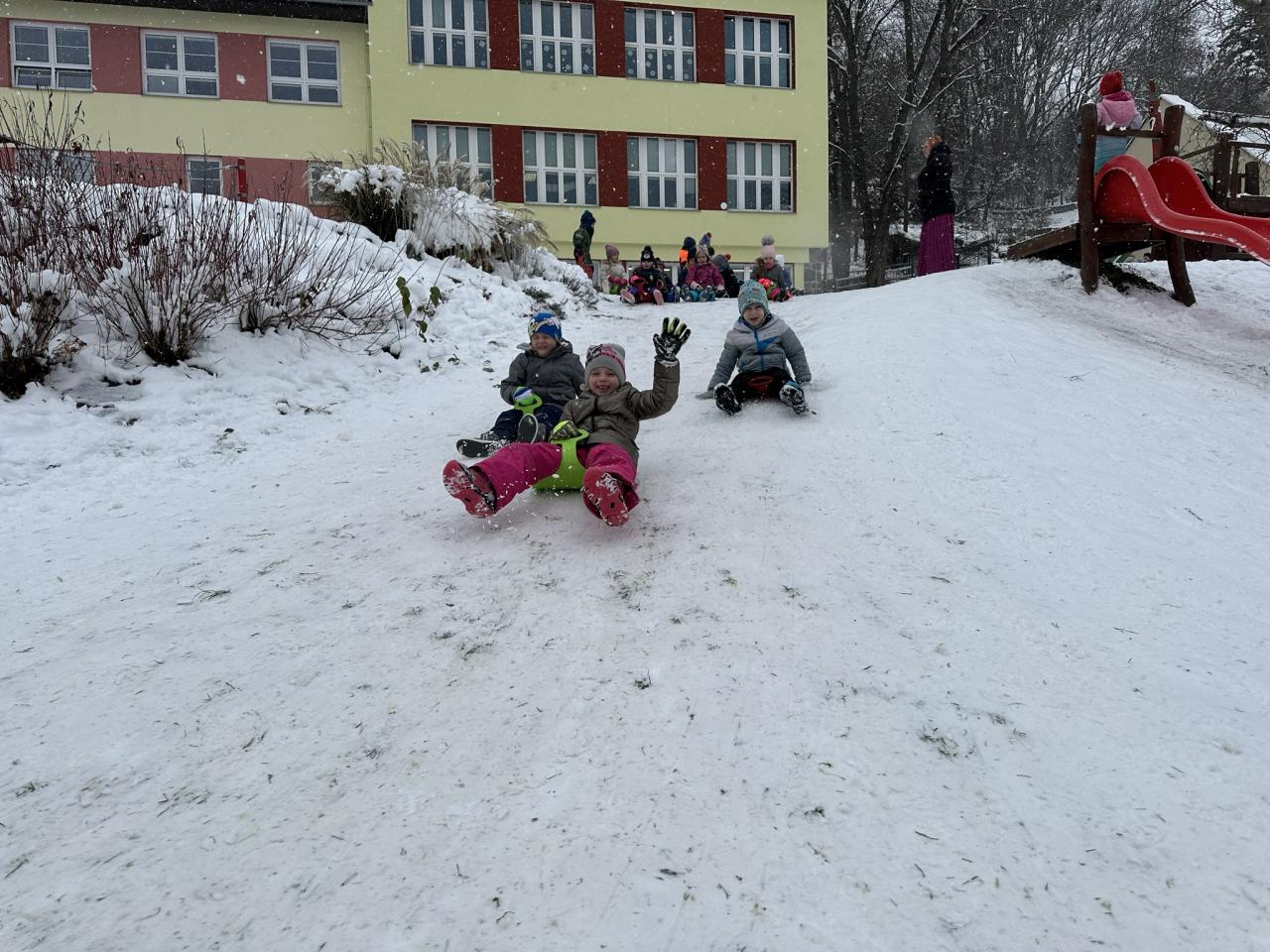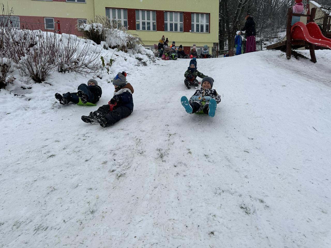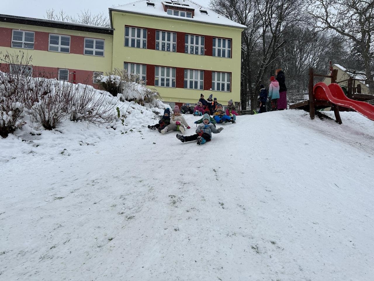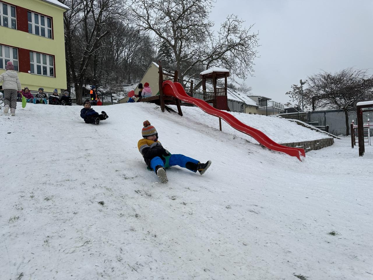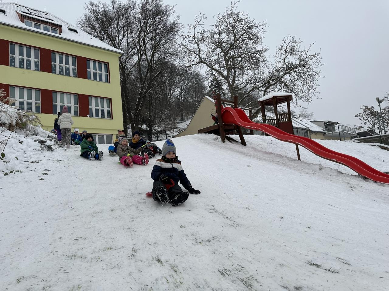 Tento den si děti po dlouhé době užily sníh.