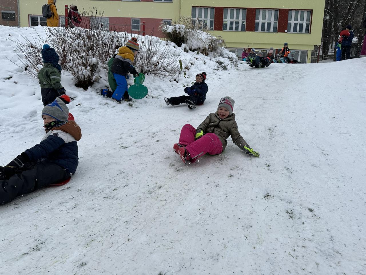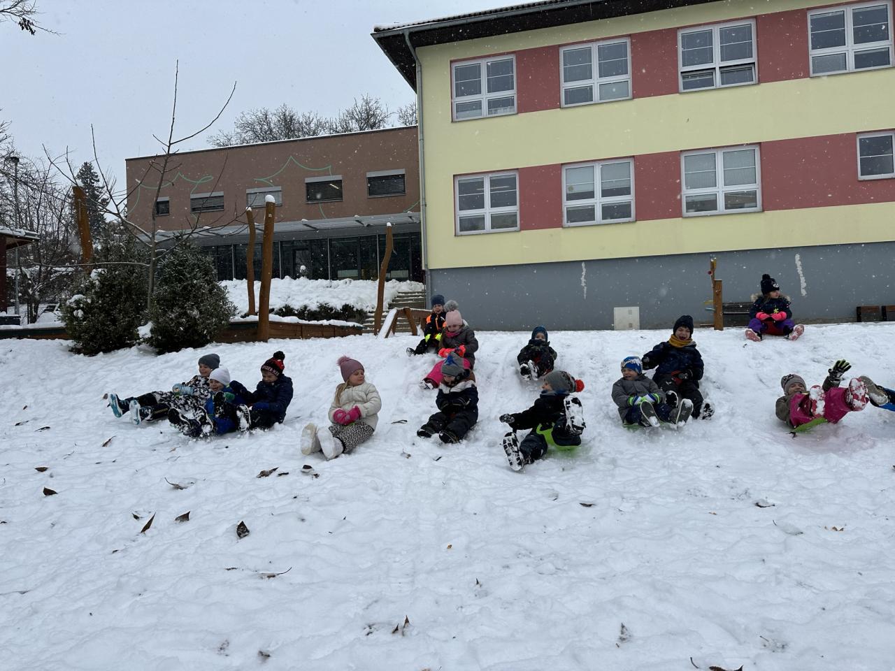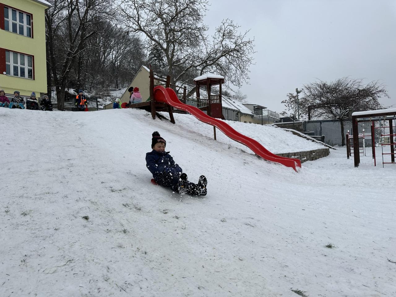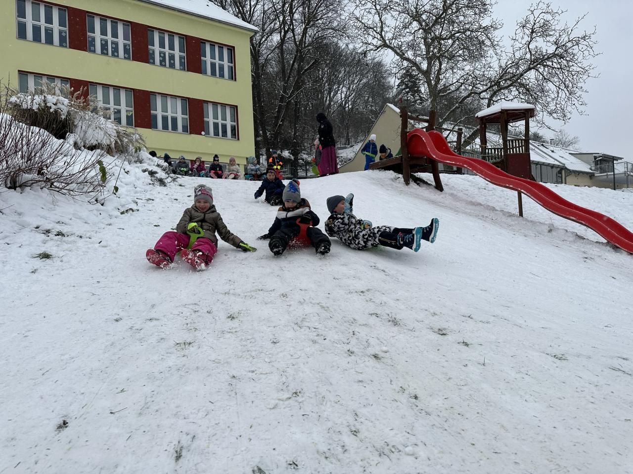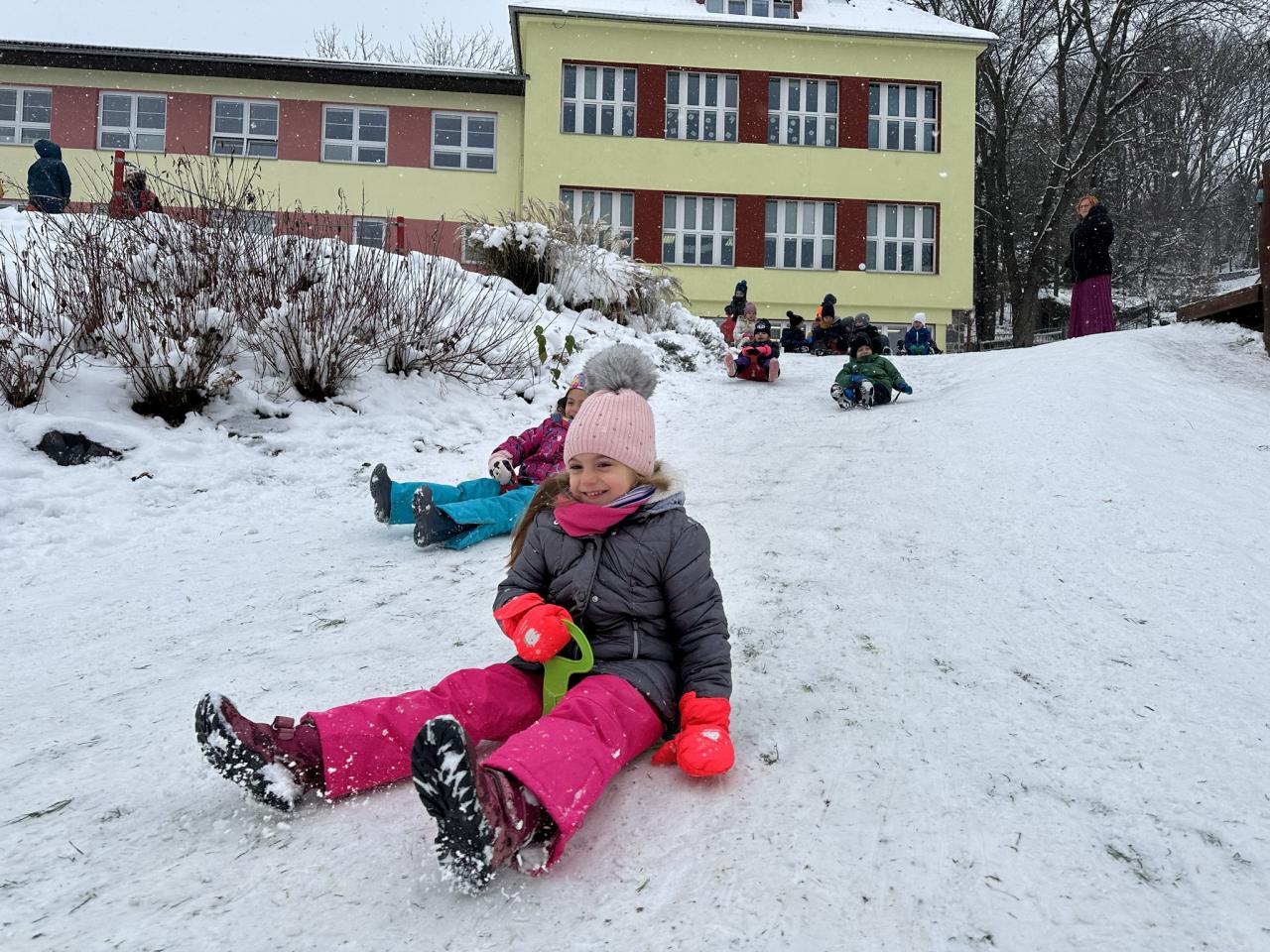 Tento den si děti po dlouhé době užily sníh.