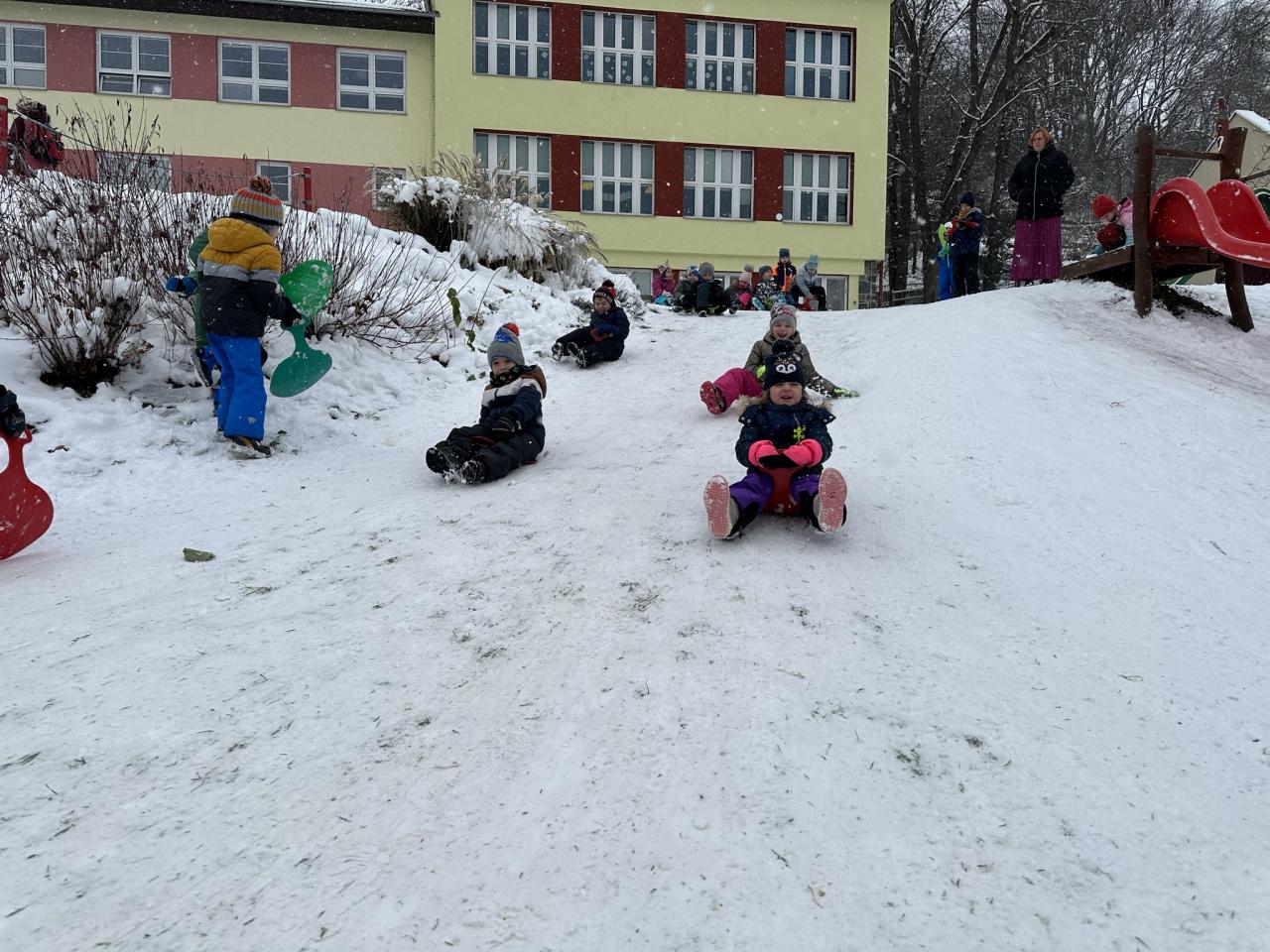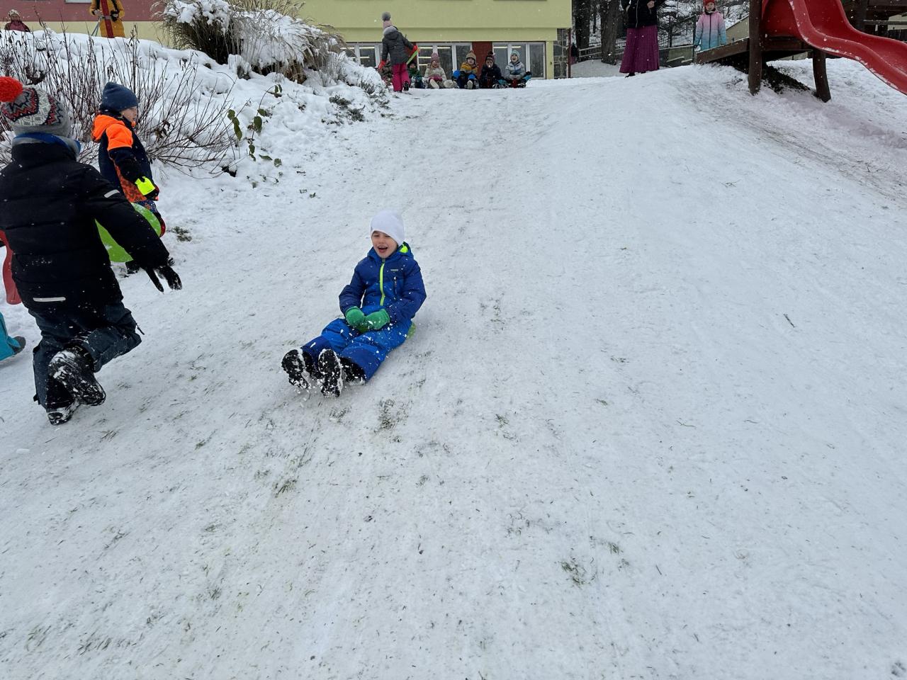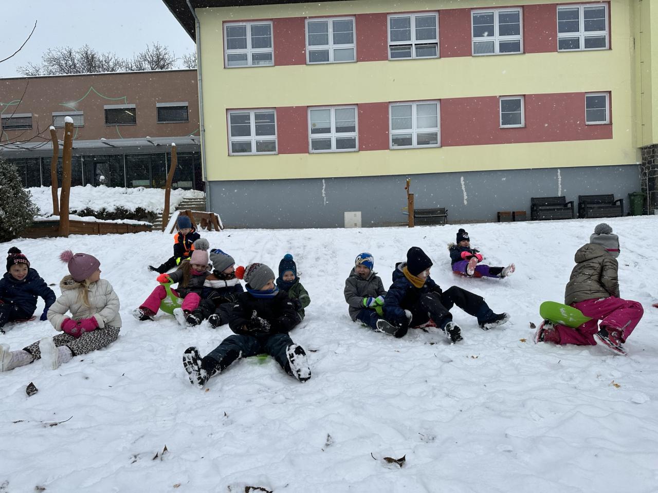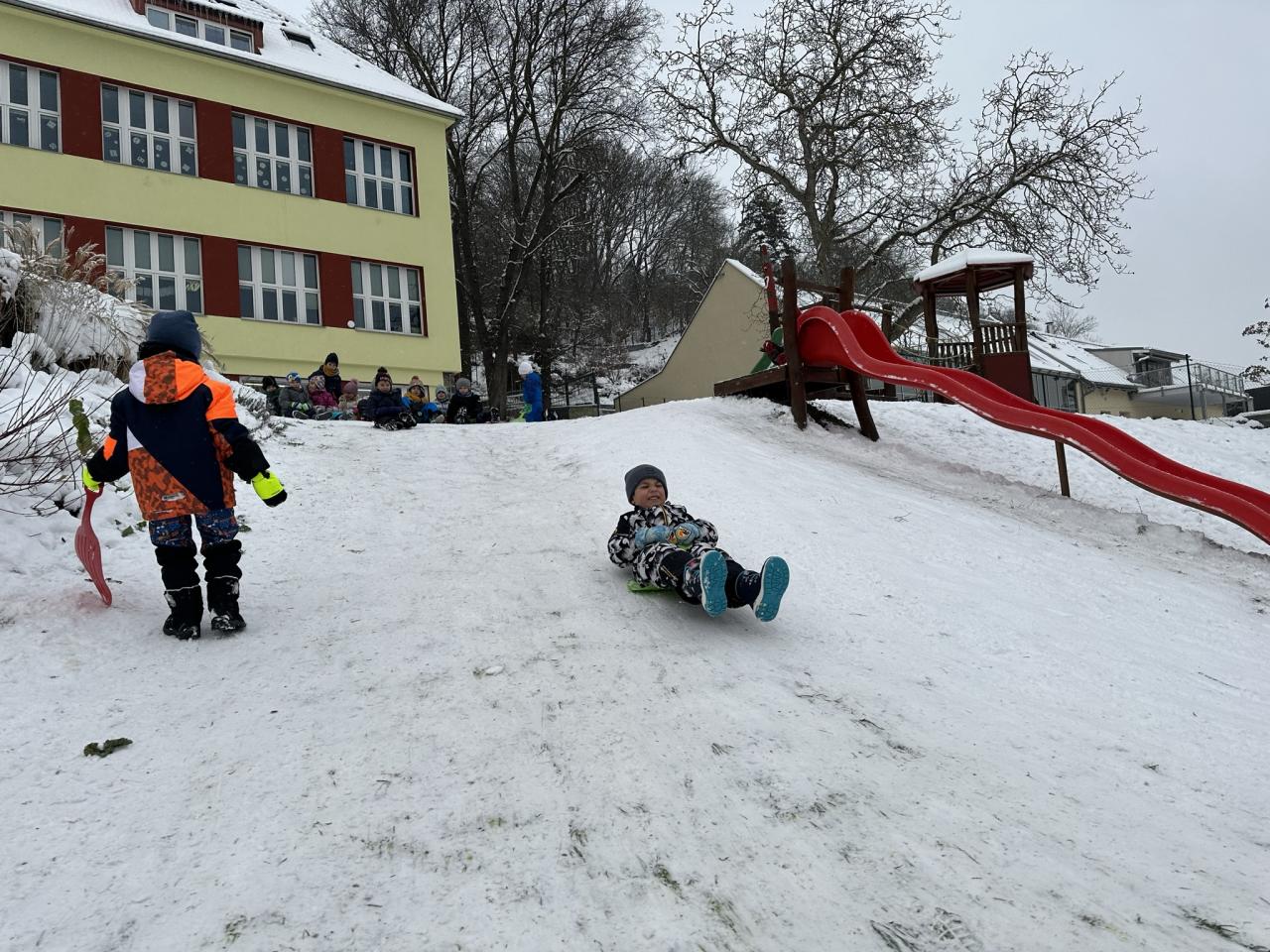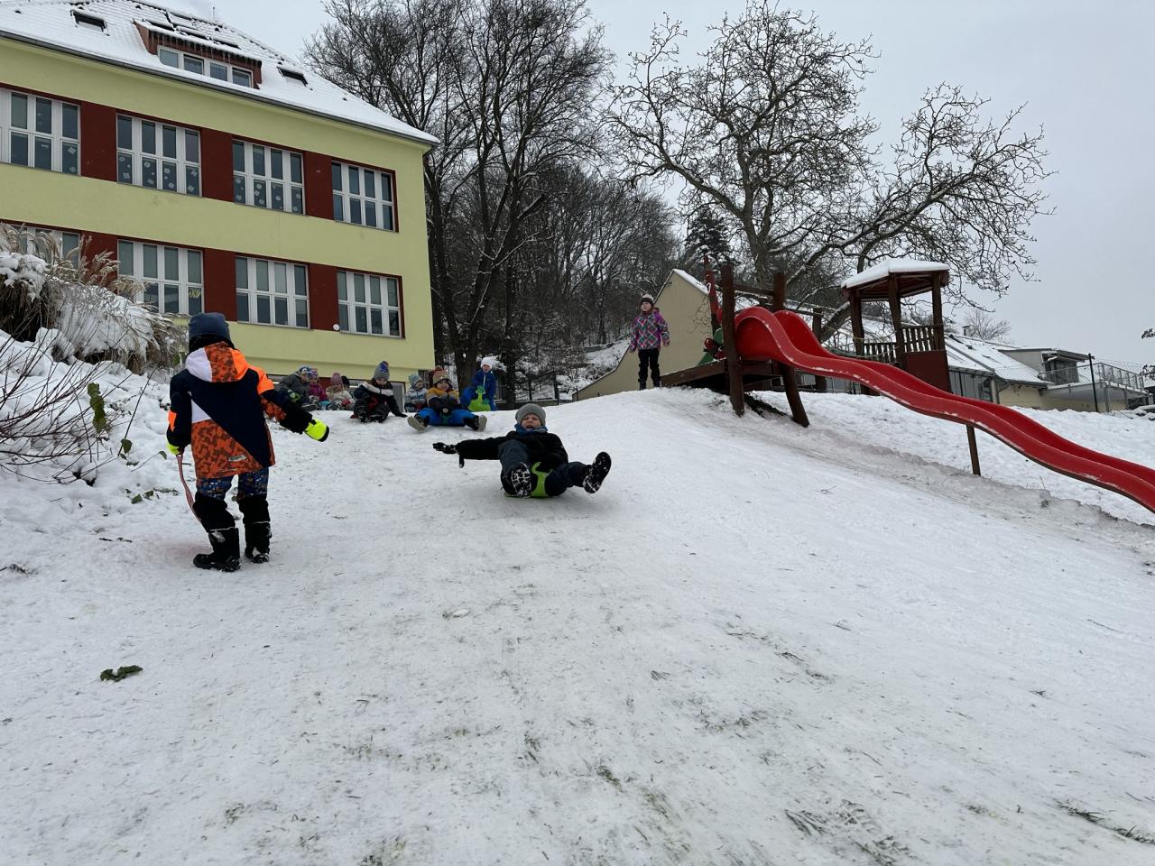 Tento den si děti po dlouhé době užily sníh.