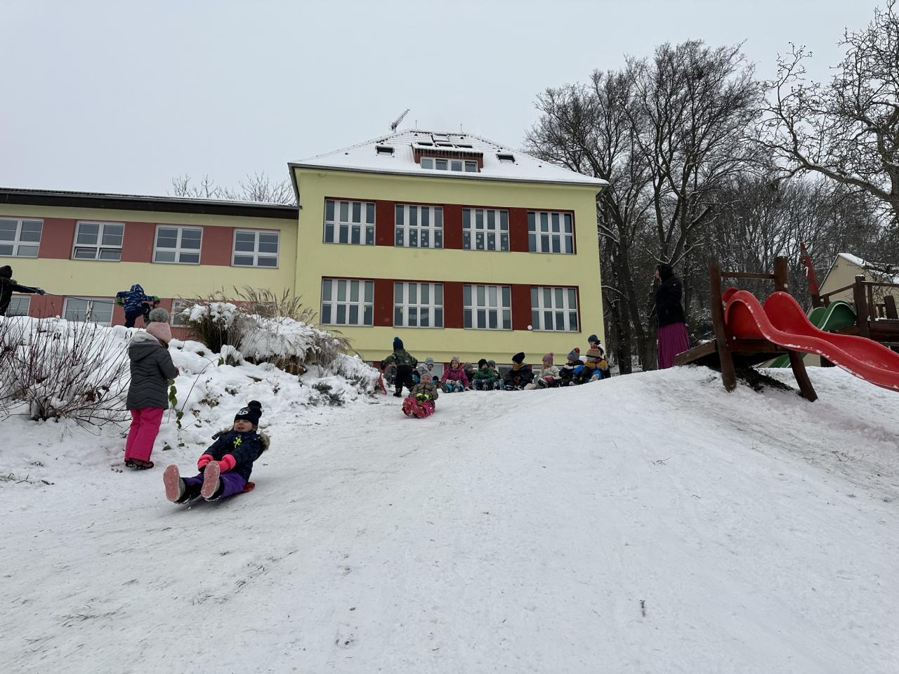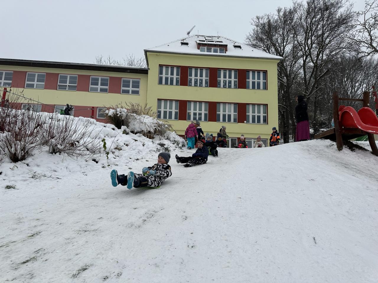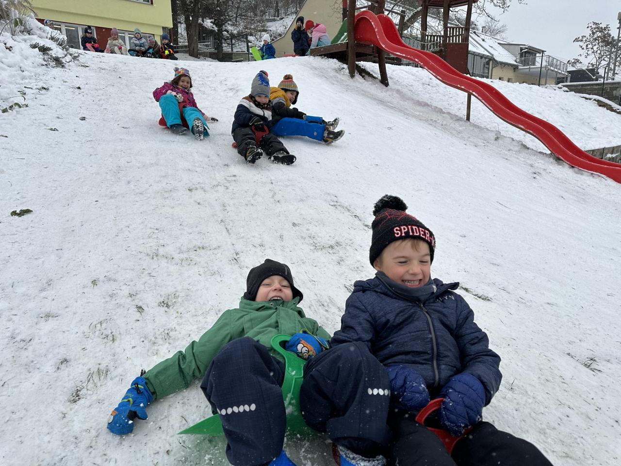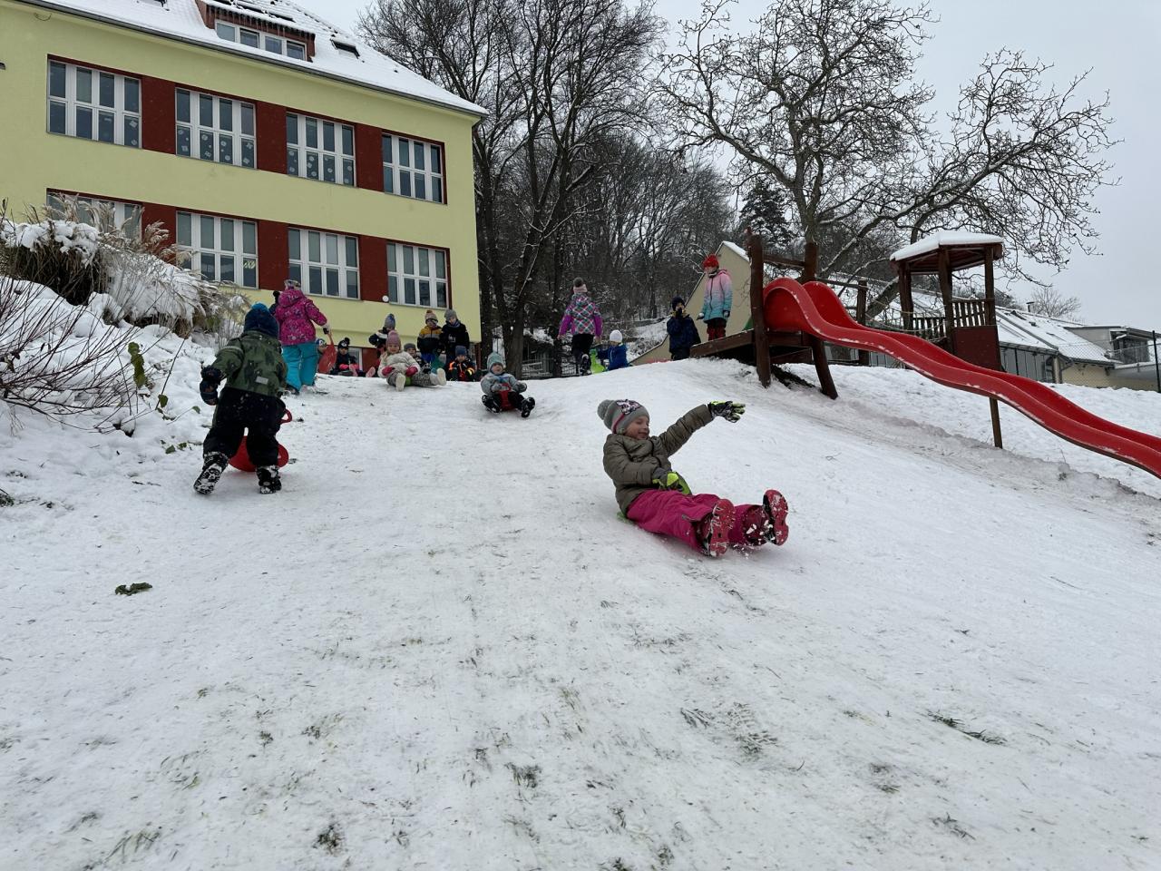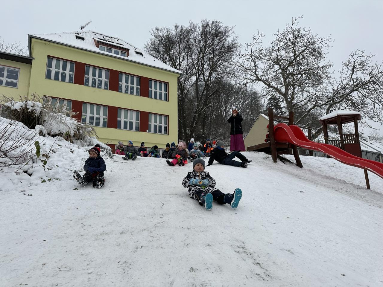 Tento den si děti po dlouhé době užily sníh.