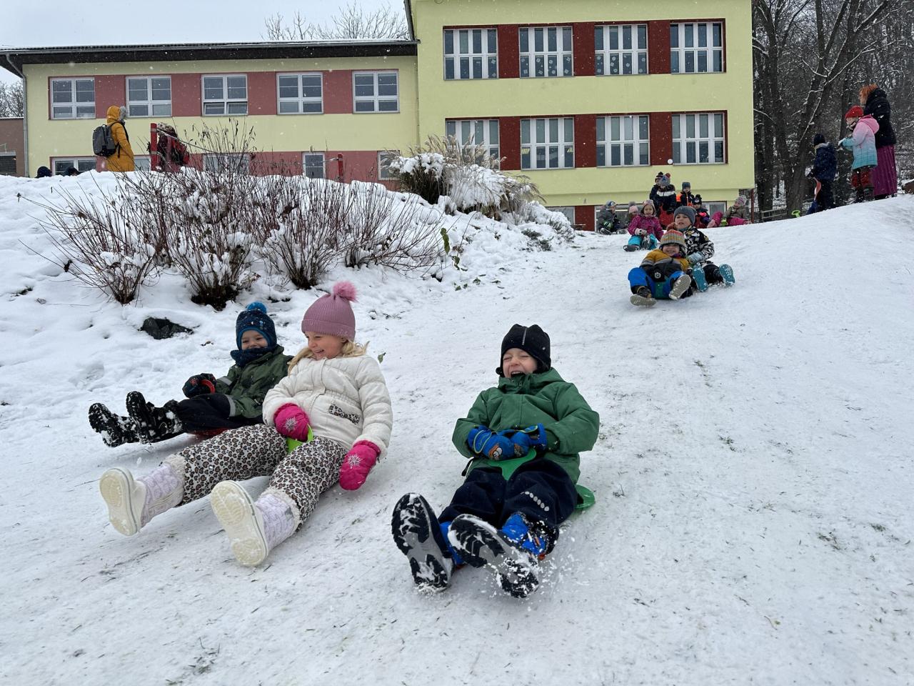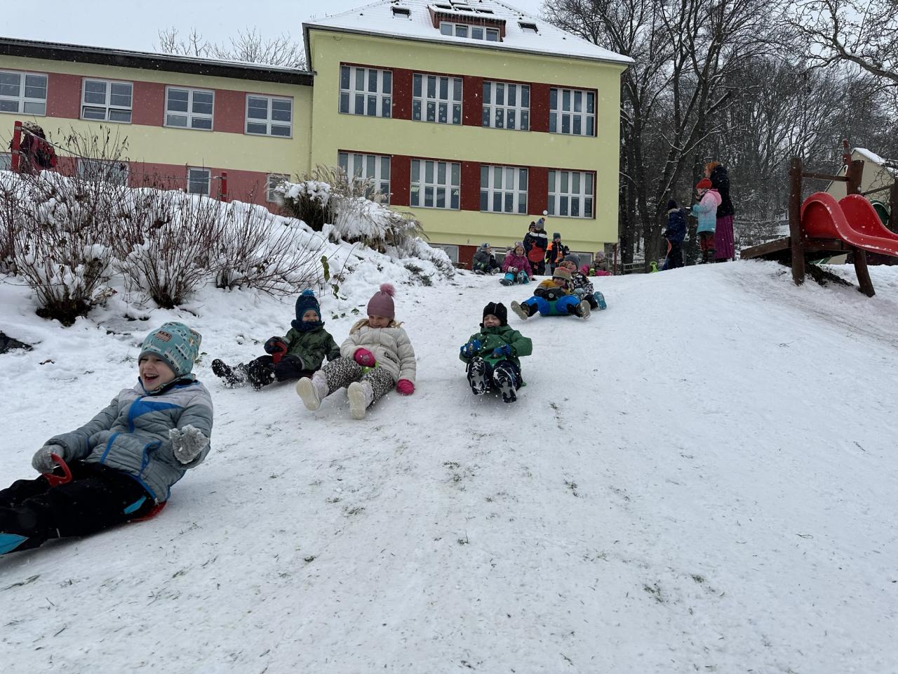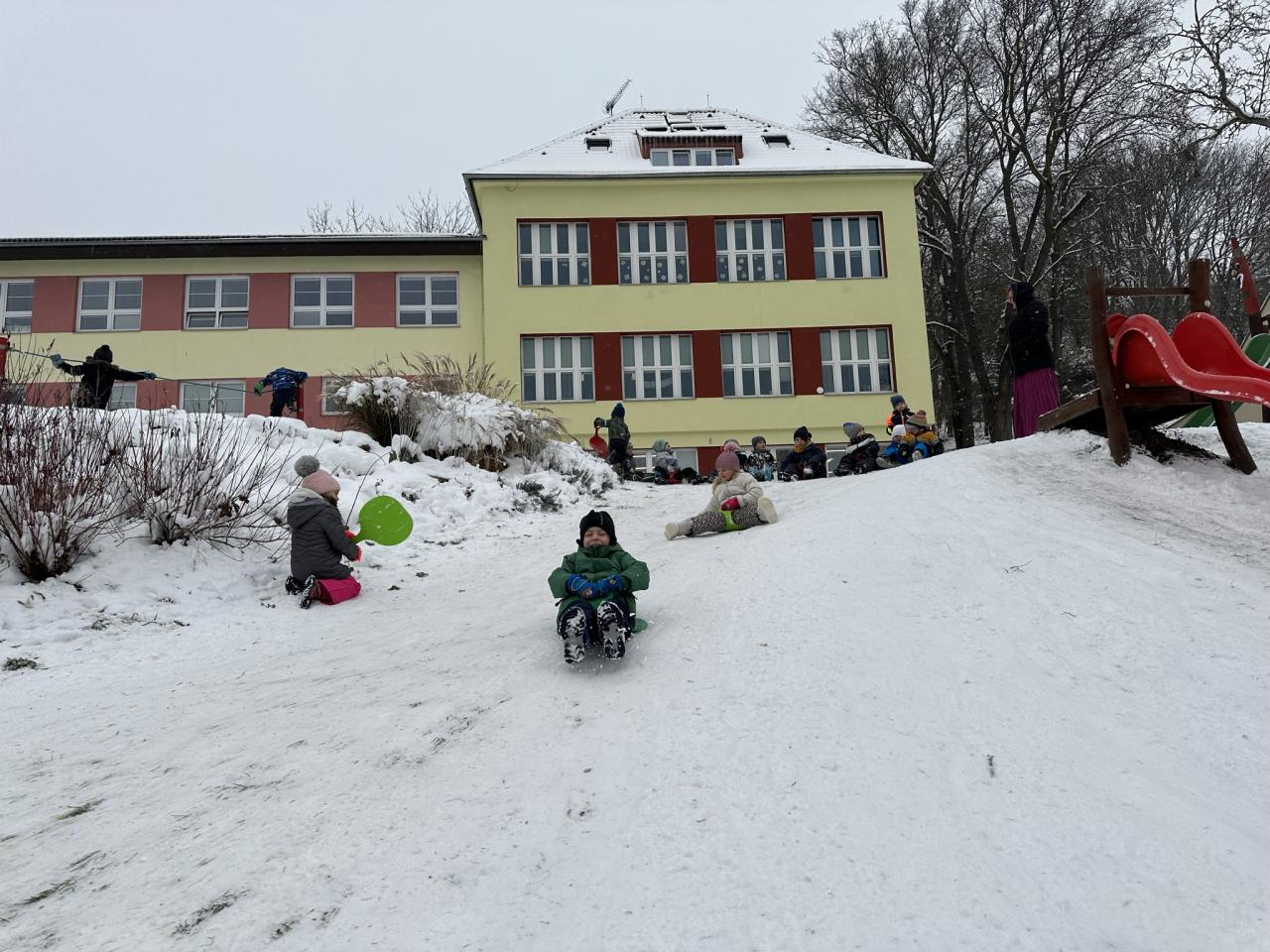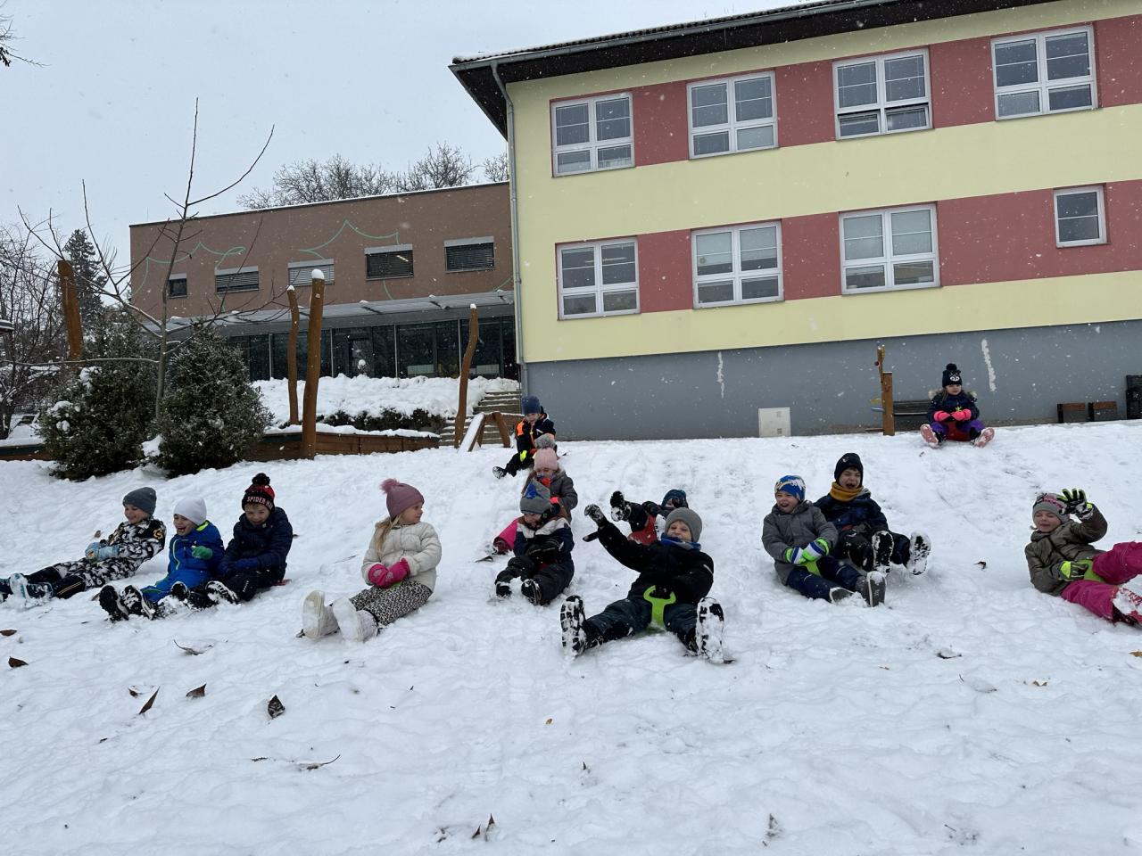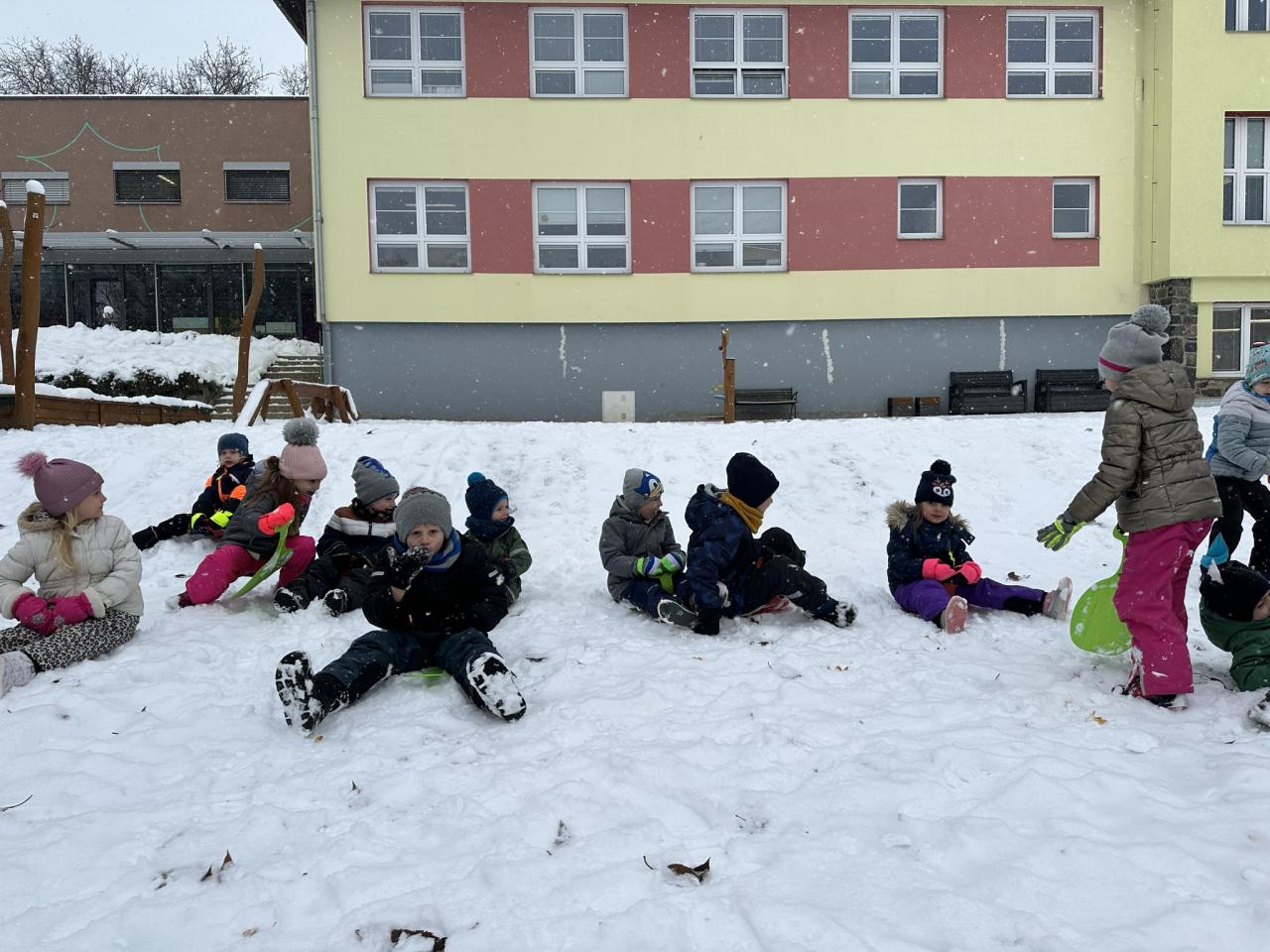 Tento den si děti po dlouhé době užily sníh.