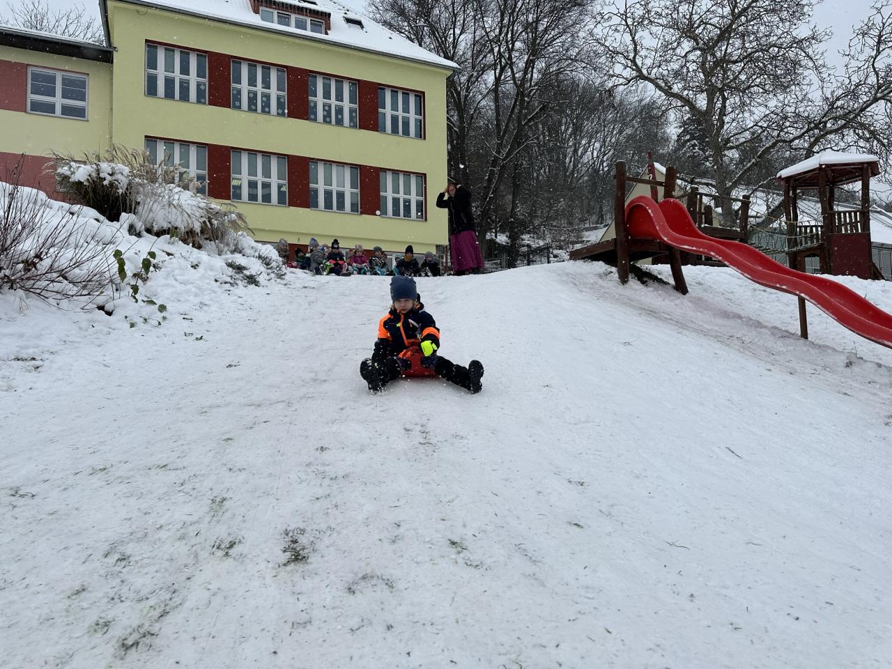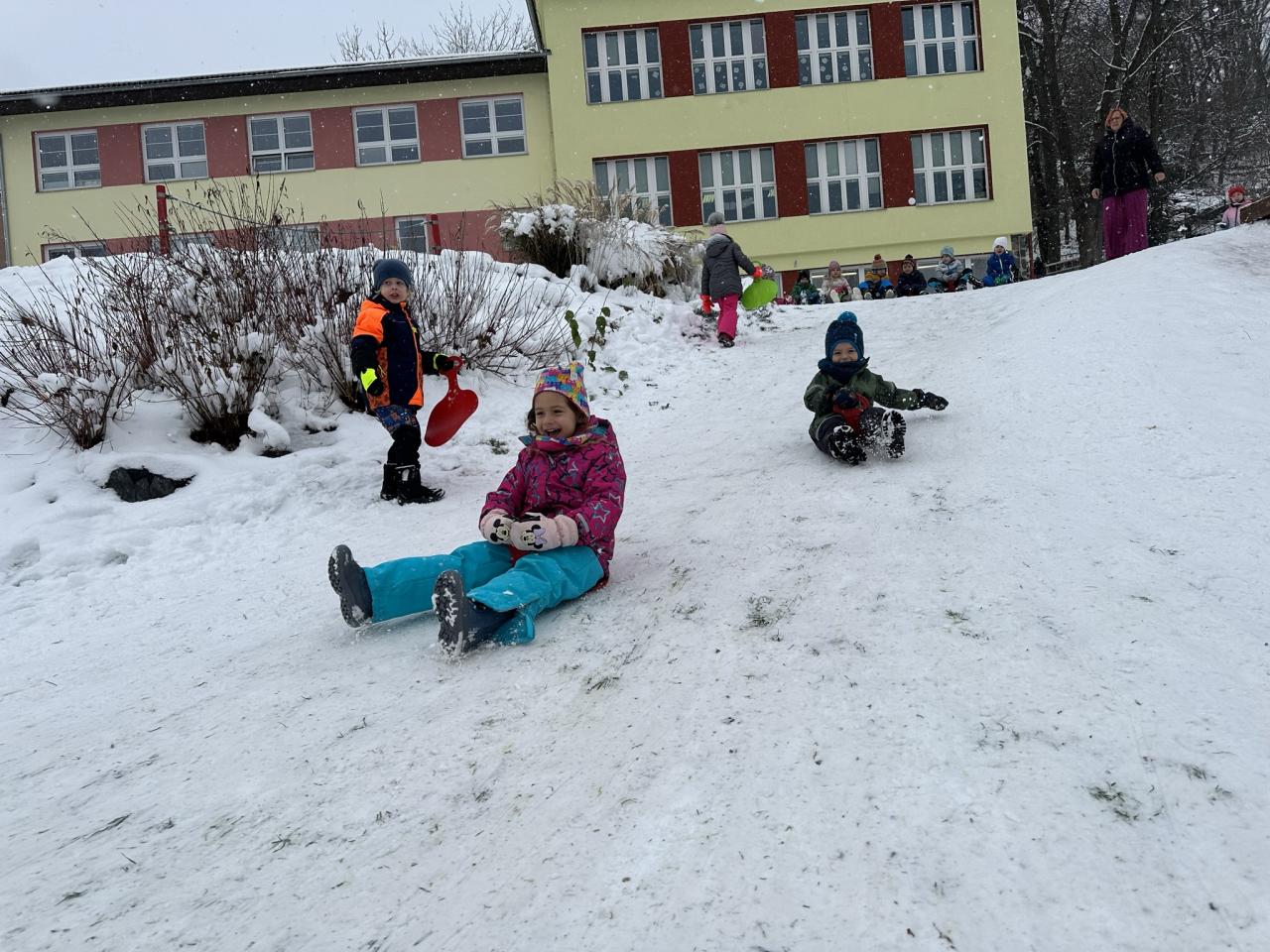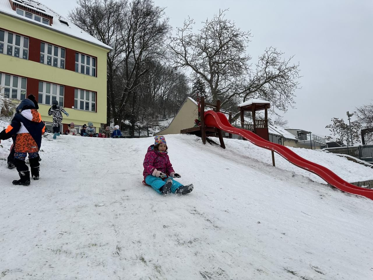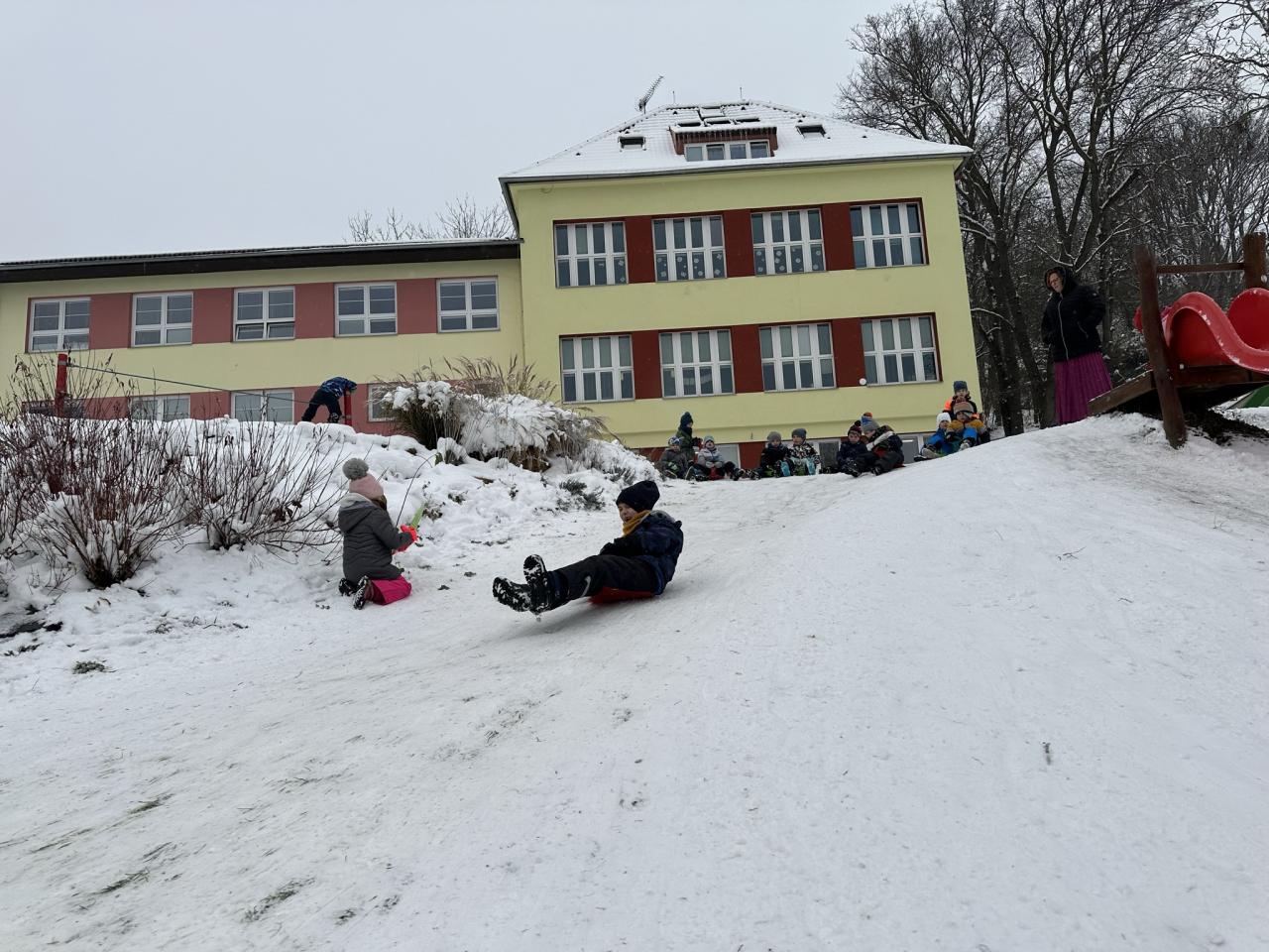 Tento den si děti po dlouhé době užily sníh.
