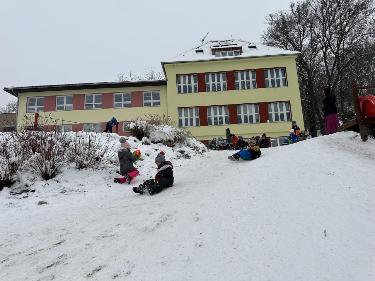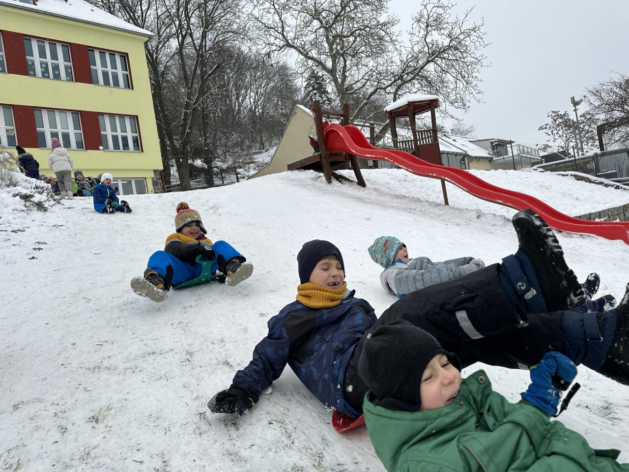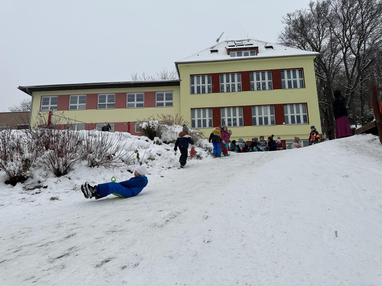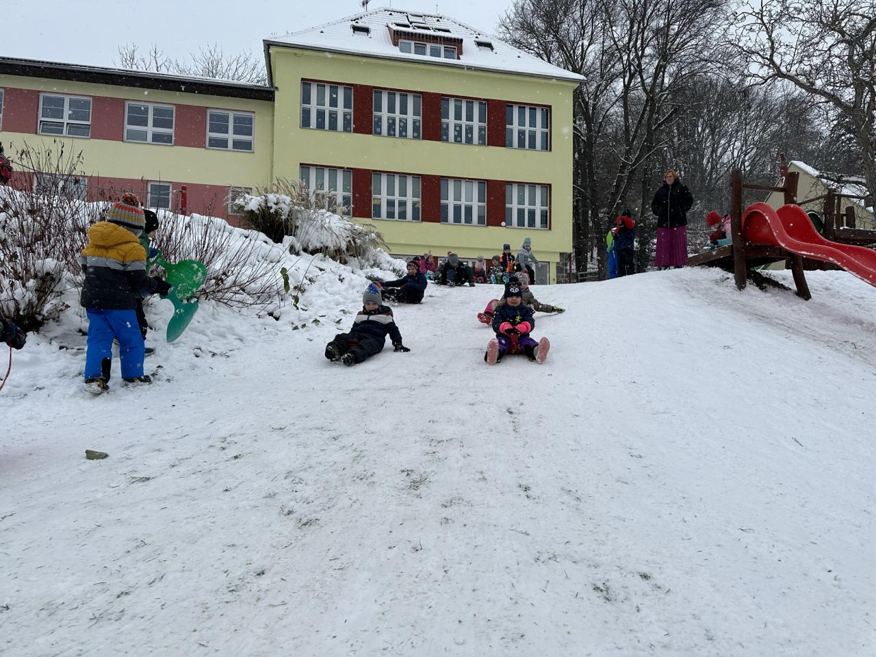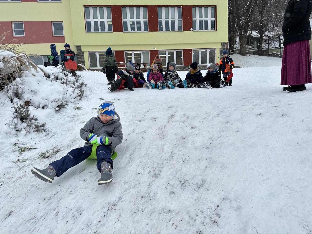 Tento den si děti po dlouhé době užily sníh.