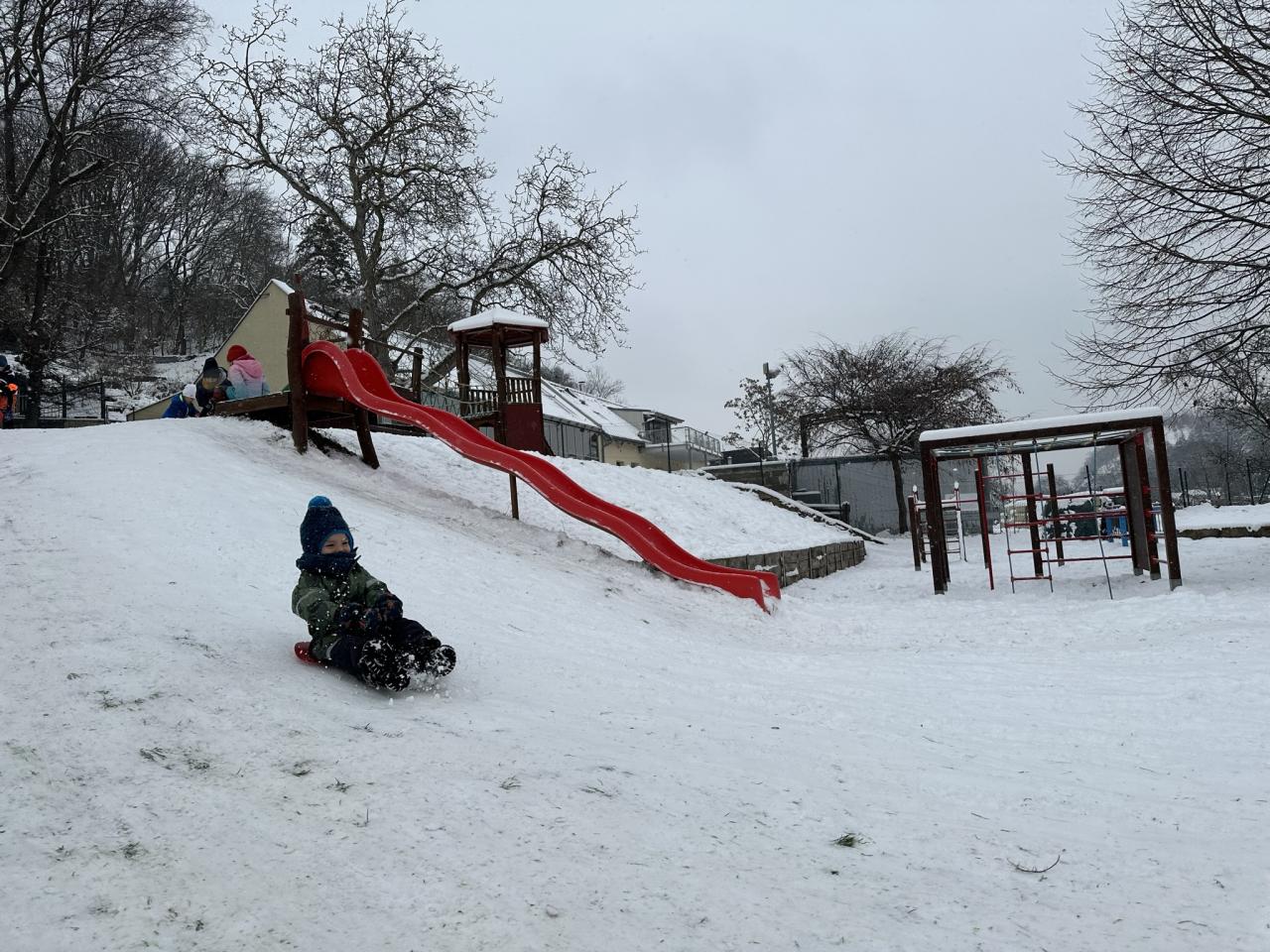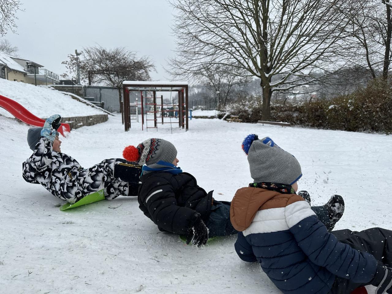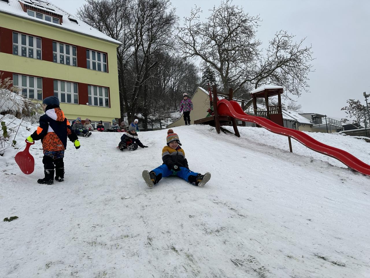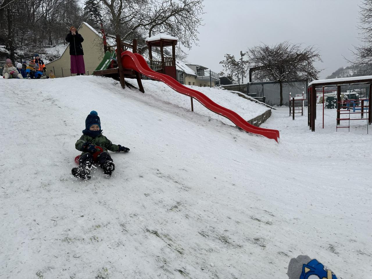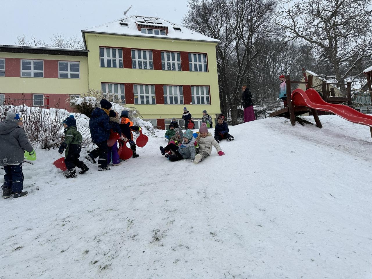 Tento den si děti po dlouhé době užily sníh.