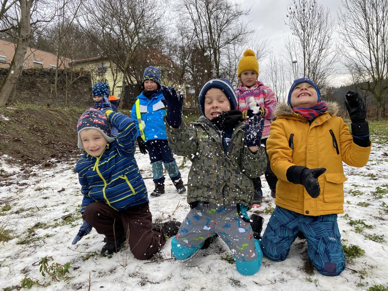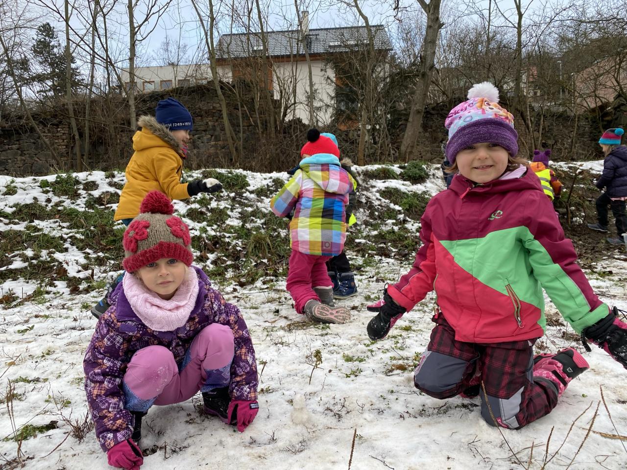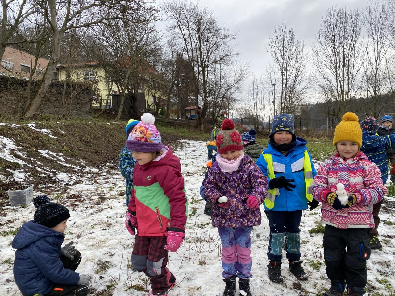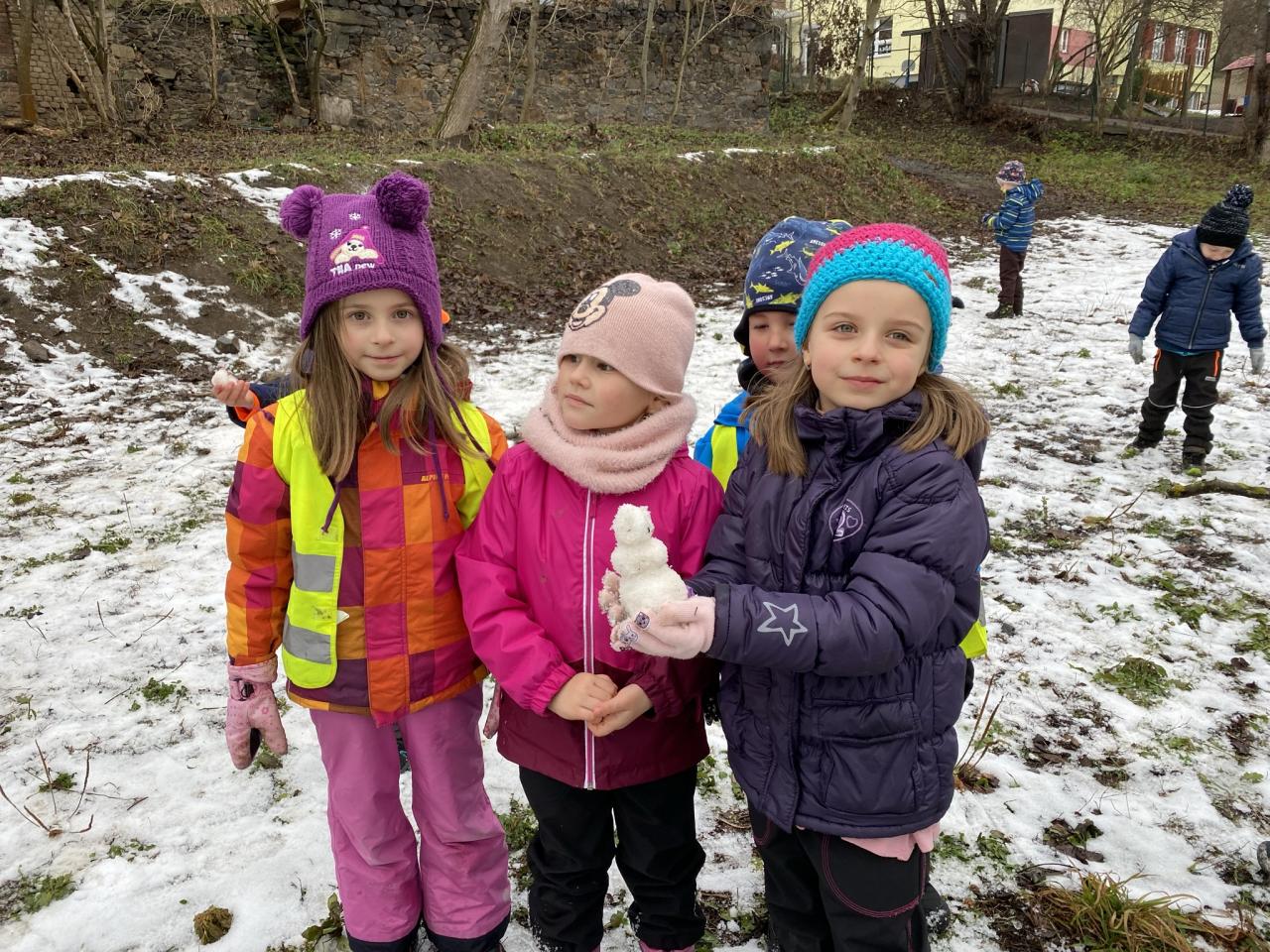 I přesto, že sněhu bylo málo, tak si děti postavily pár sněhuláčků a udělaly si pořádnou koulovačku.