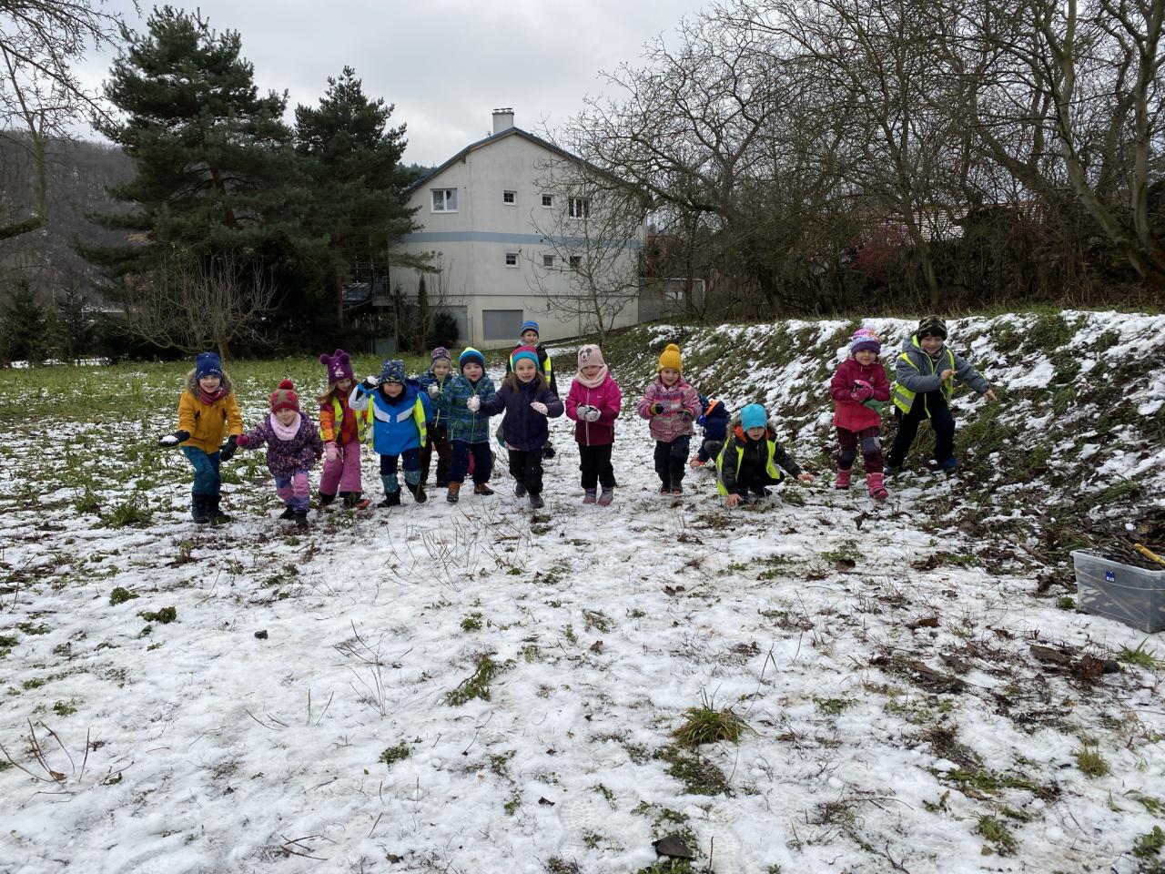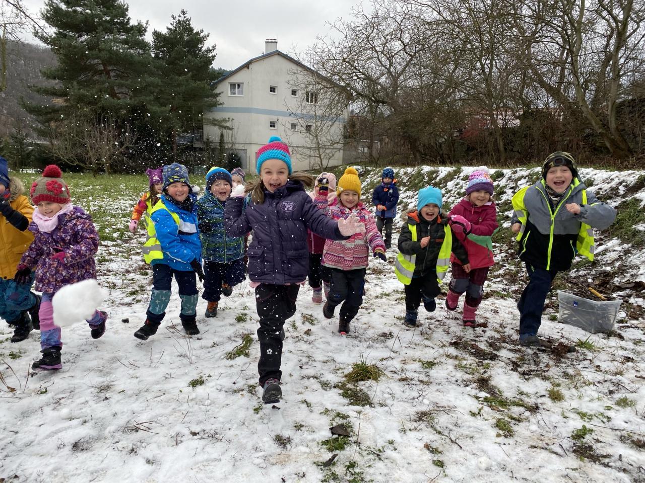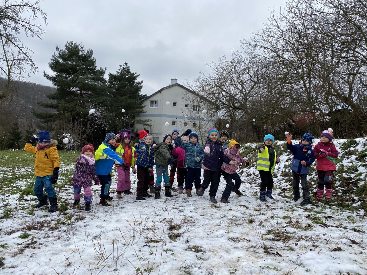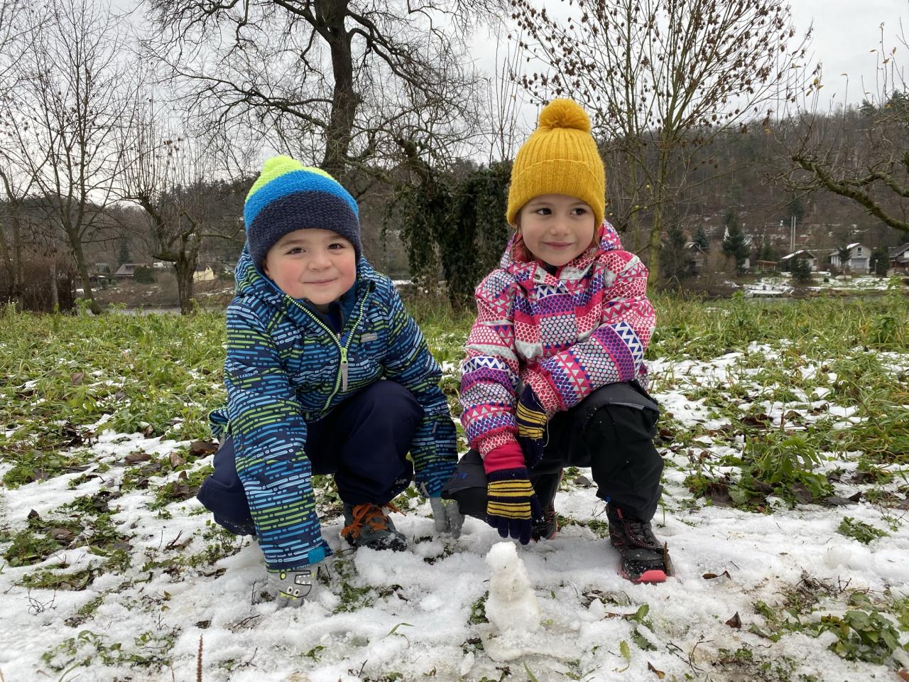 I přesto, že sněhu bylo málo, tak si děti postavily pár sněhuláčků a udělaly si pořádnou koulovačku.