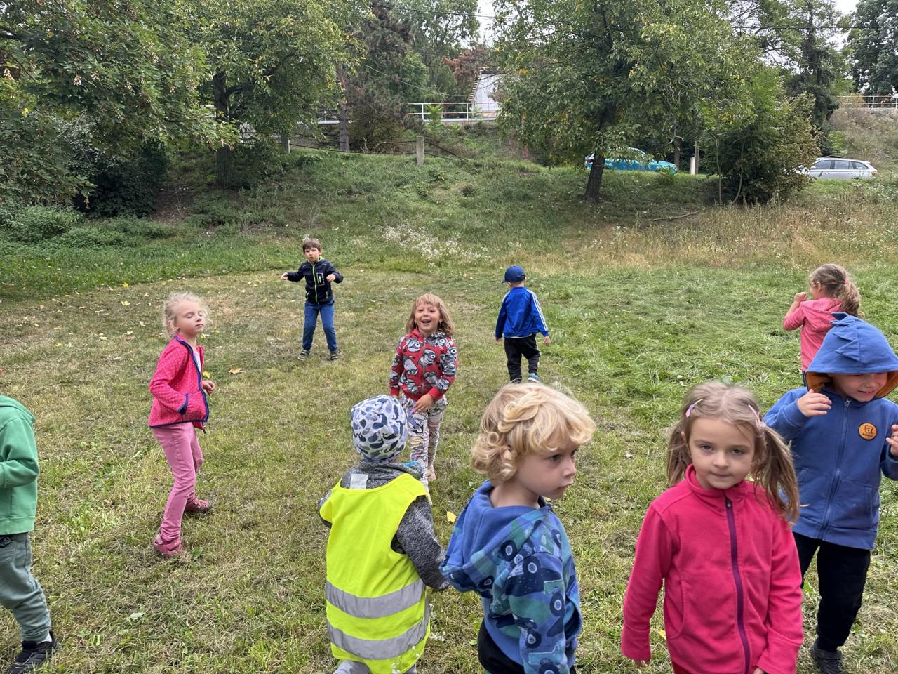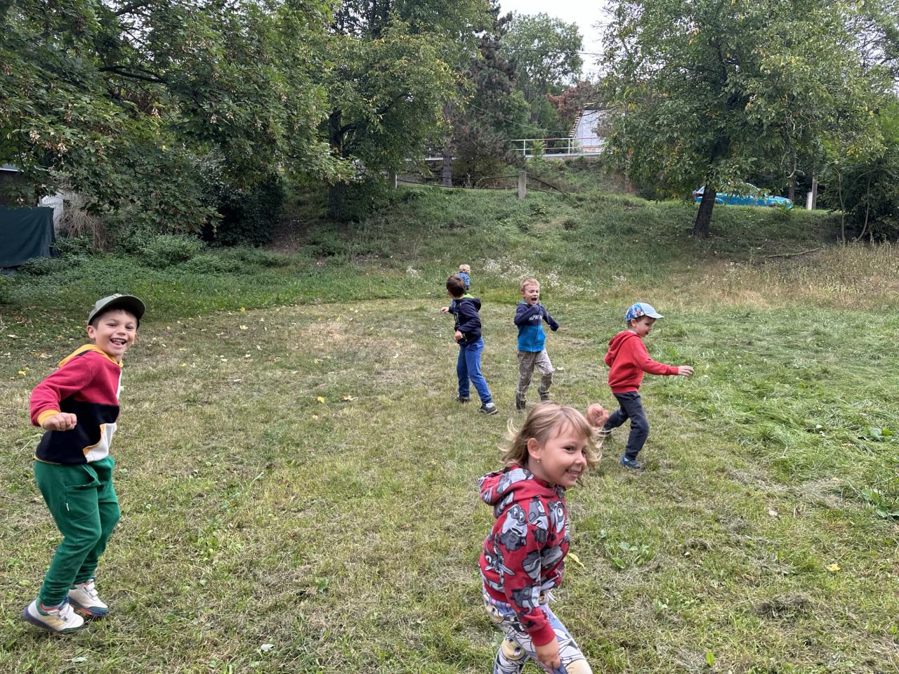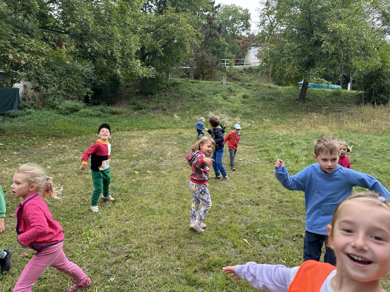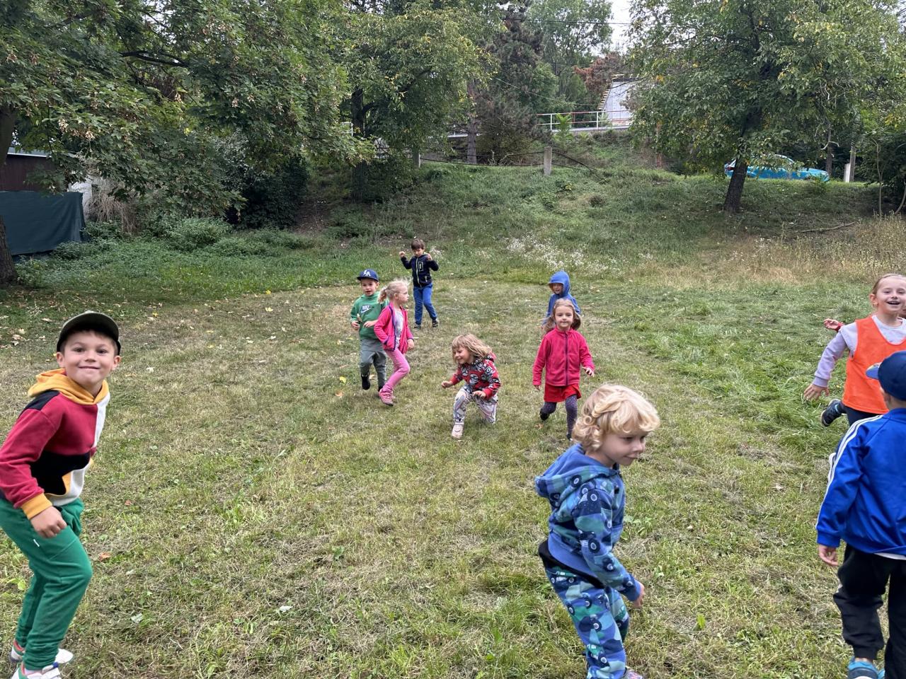 Během září si děti pobyt venku opravdu užily. Pozorovaly změny v přírodě, jak se barevně mění listy na stromech. Děti hrály různé pohybové hry a na školní zahradě využily domeček, kolotoč, hrad, skluzavky a pískoviště, kde rozvíjely fantazii a spolupracovaly na skvělých pískových výtvorech.