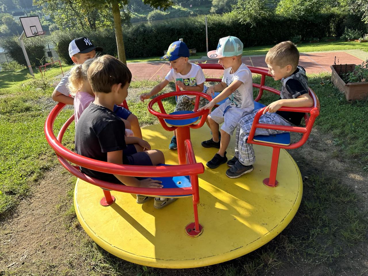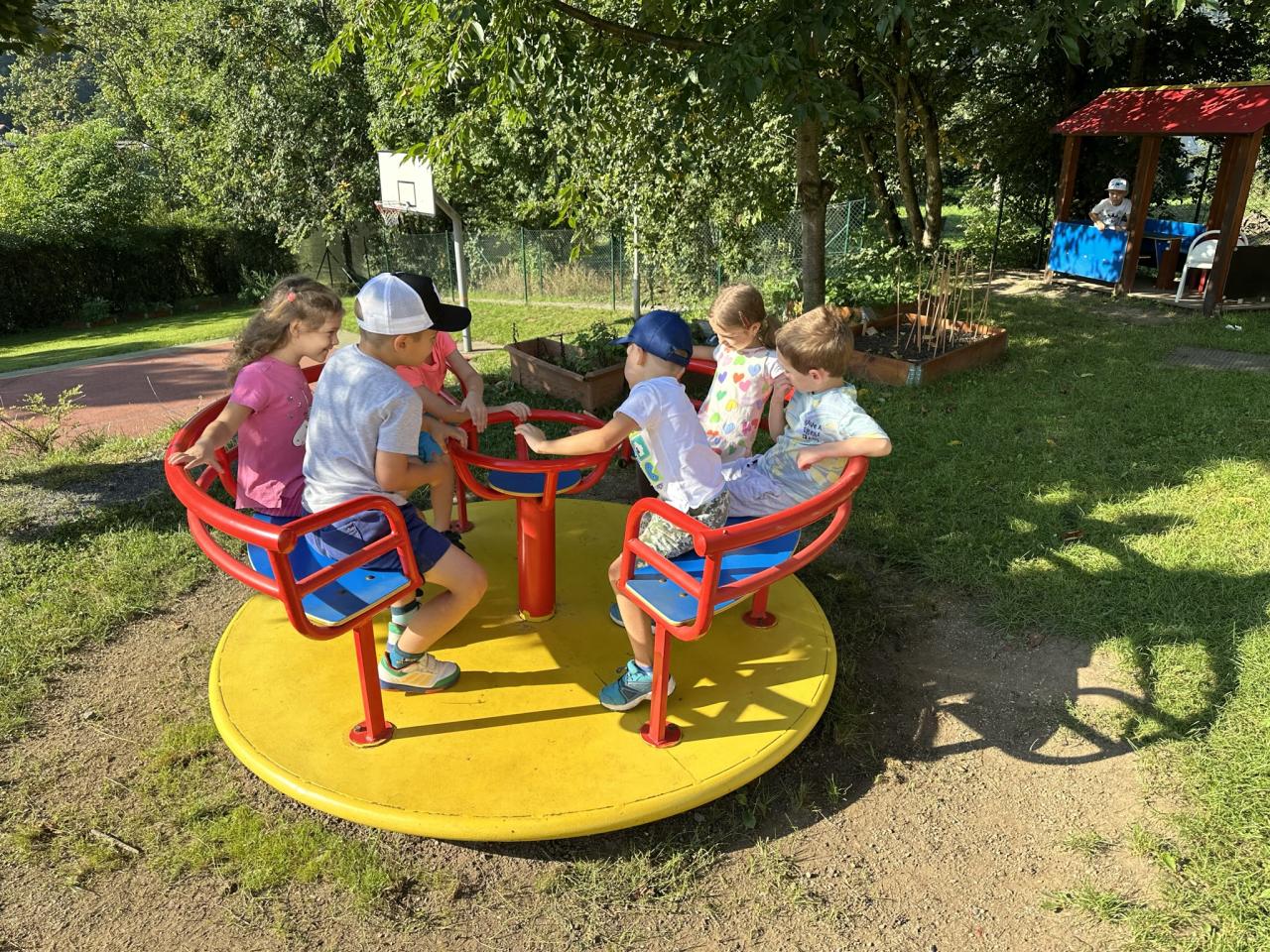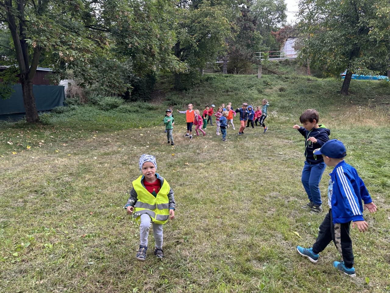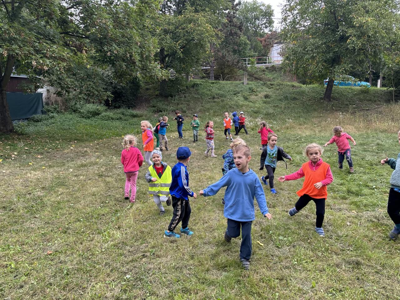 Během září si děti pobyt venku opravdu užily. Pozorovaly změny v přírodě, jak se barevně mění listy na stromech. Děti hrály různé pohybové hry a na školní zahradě využily domeček, kolotoč, hrad, skluzavky a pískoviště, kde rozvíjely fantazii a spolupracovaly na skvělých pískových výtvorech.