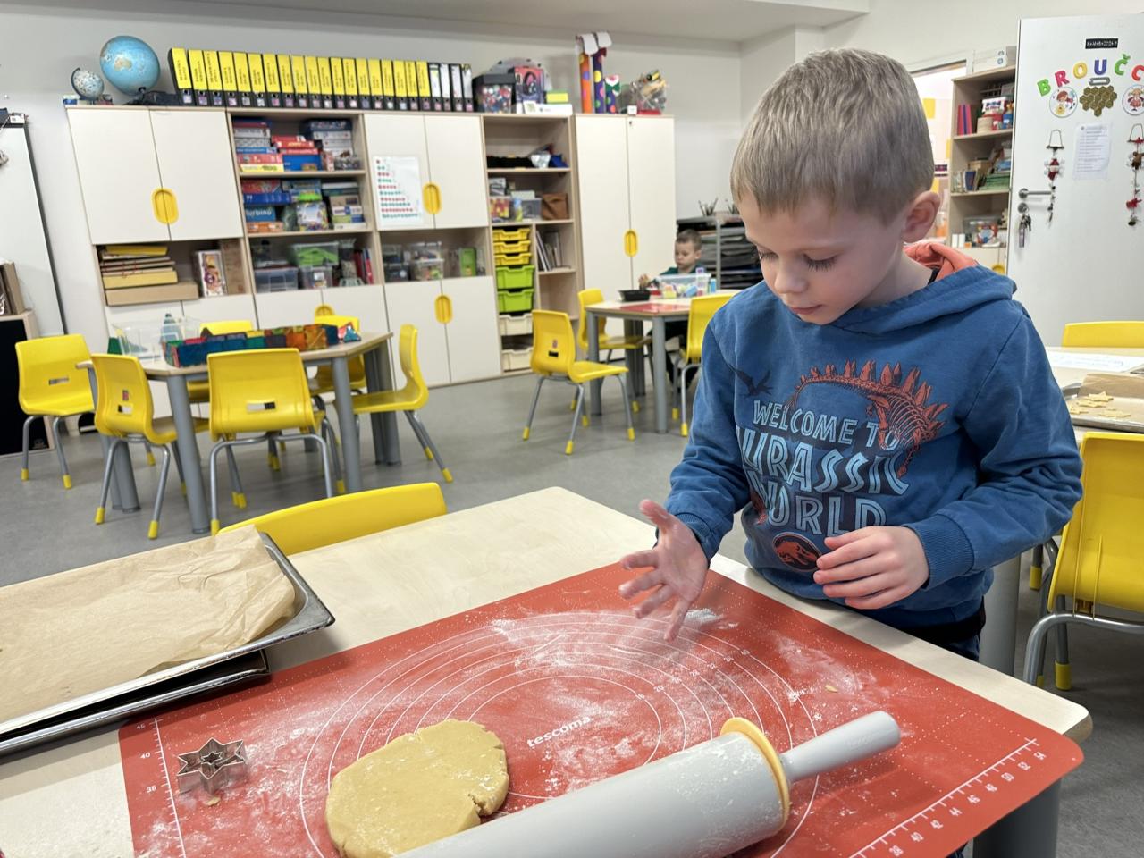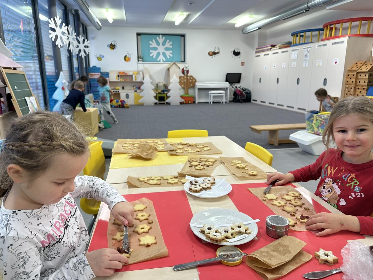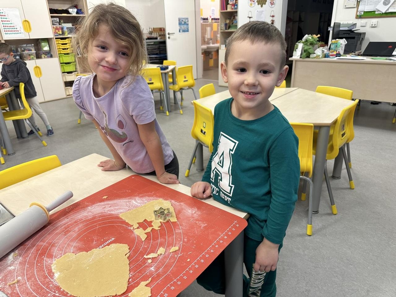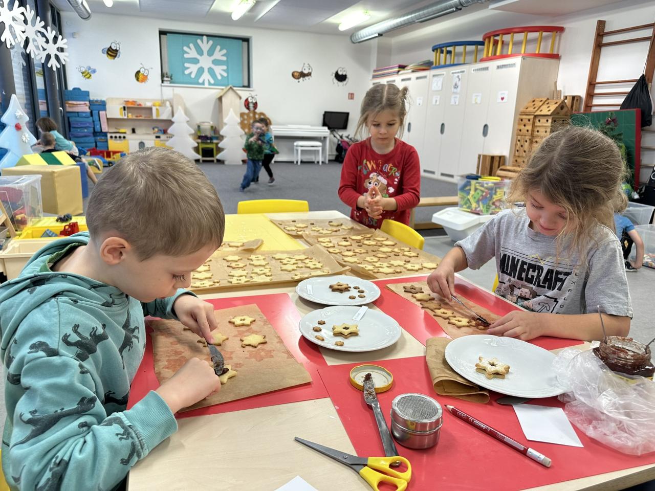Tento týden jsme si povídali o tom, jak můžeme svým chováním a činy přinášet radost druhým – kamarádům, rodičům i dalším lidem kolem nás. Děti vyráběly krásná přáníčka pro své rodiny a s nadšením se zapojily do pečení lineckých hvězdiček. Po upečení je s pečlivostí slepovaly rybízovou marmeládou.