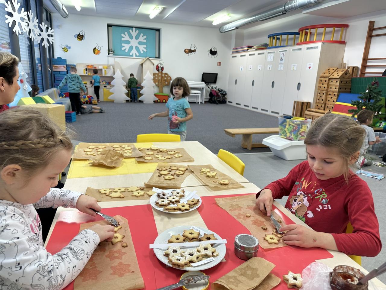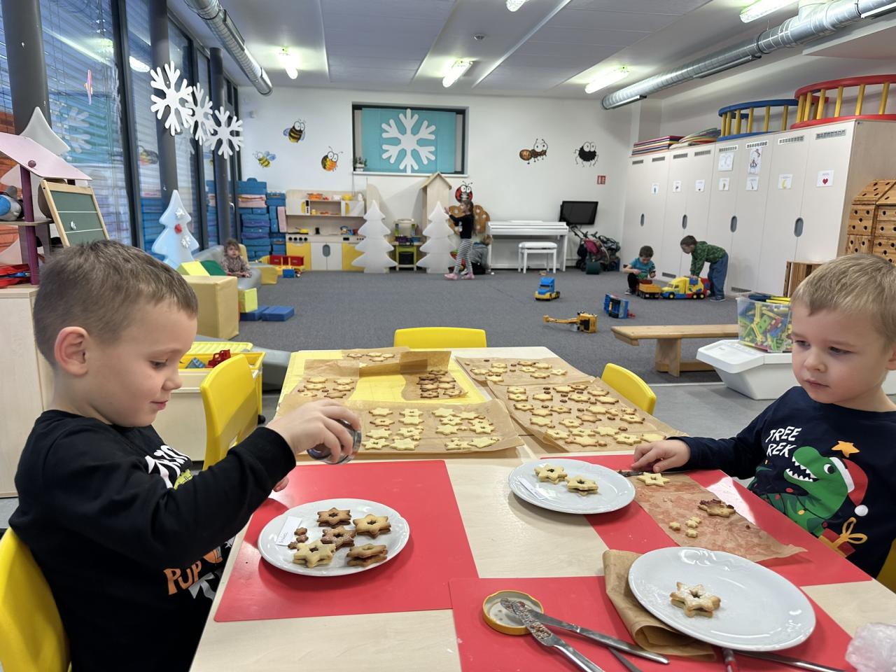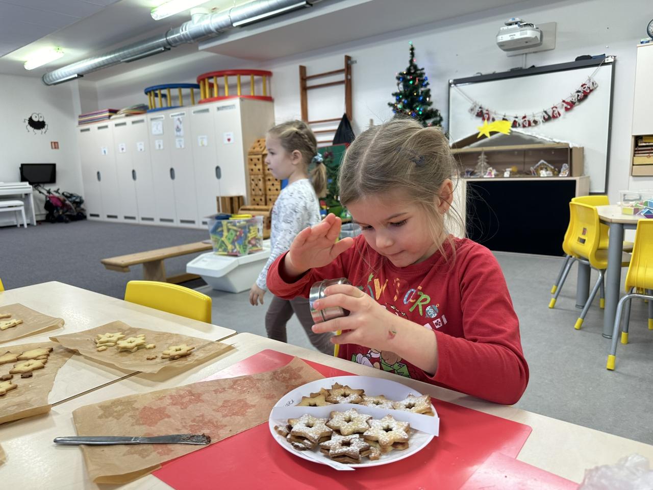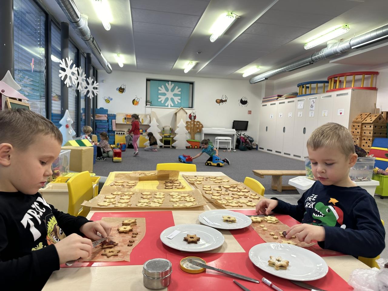 Tento týden jsme si povídali o tom, jak můžeme svým chováním a činy přinášet radost druhým – kamarádům, rodičům i dalším lidem kolem nás. Děti vyráběly krásná přáníčka pro své rodiny a s nadšením se zapojily do pečení lineckých hvězdiček. Po upečení je s pečlivostí slepovaly rybízovou marmeládou.