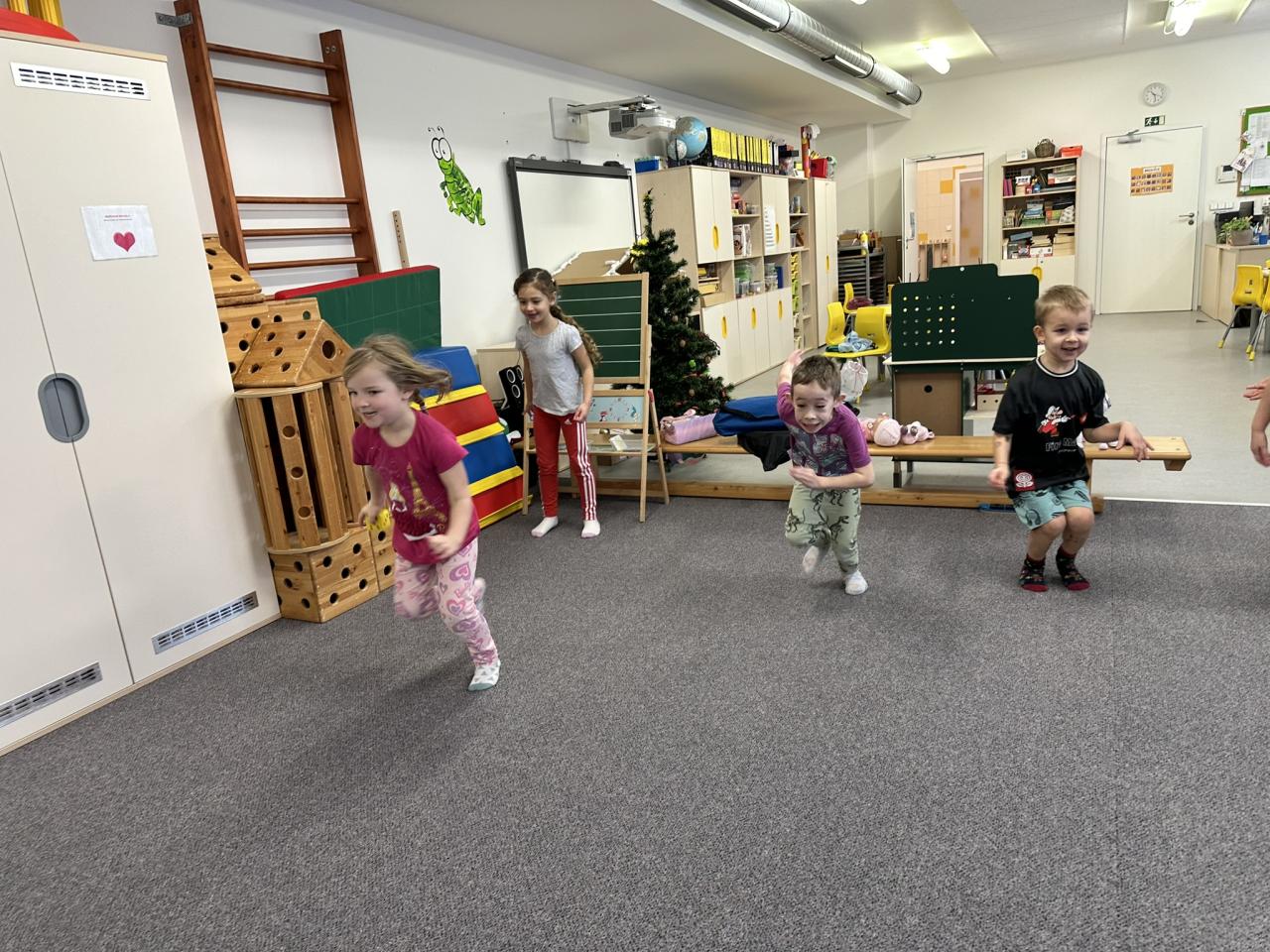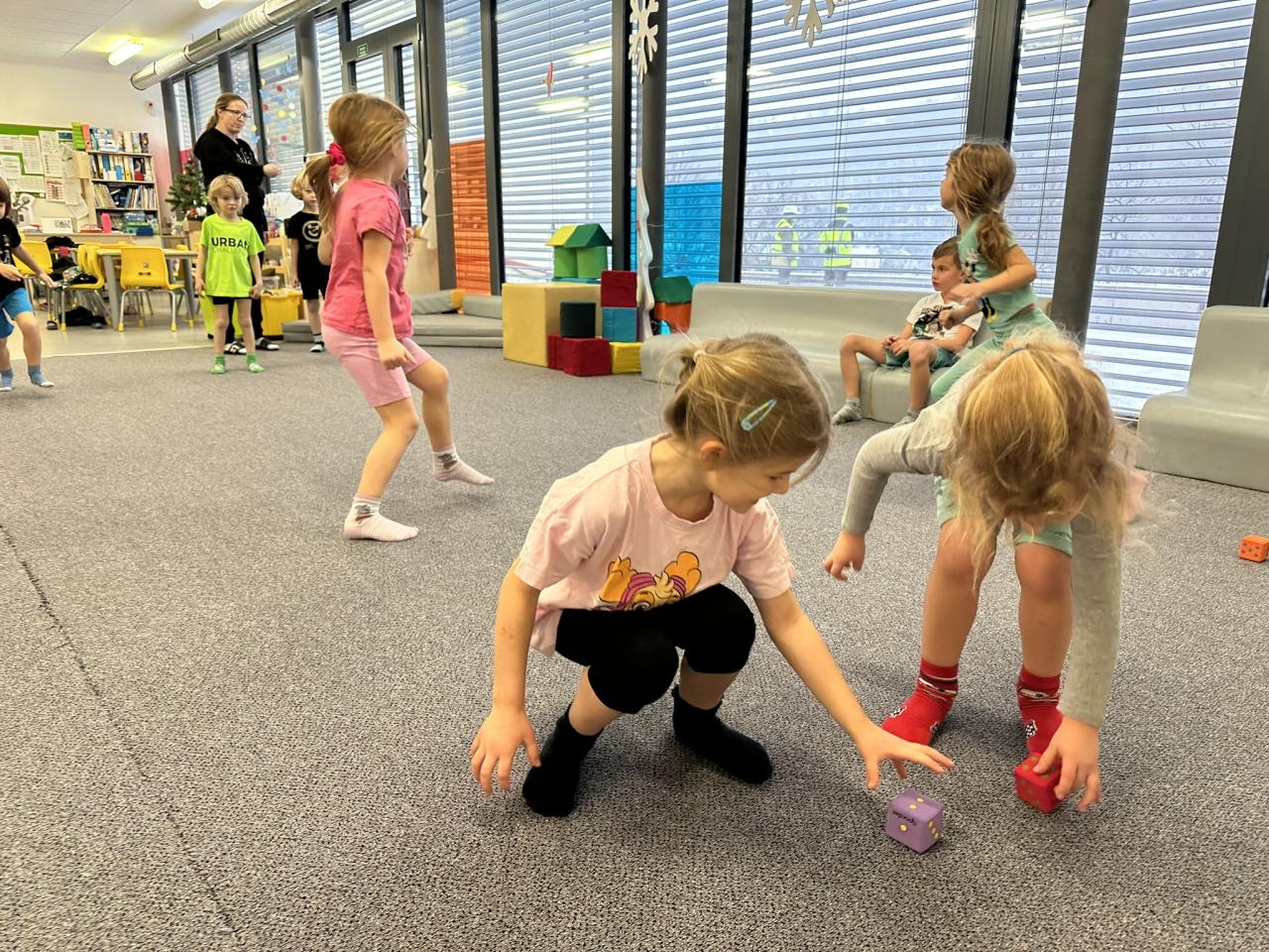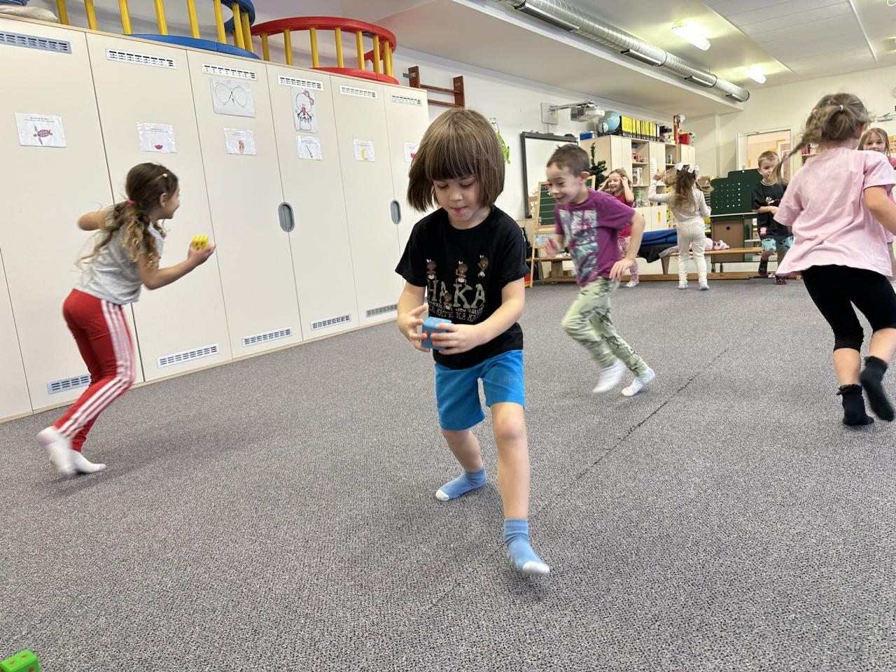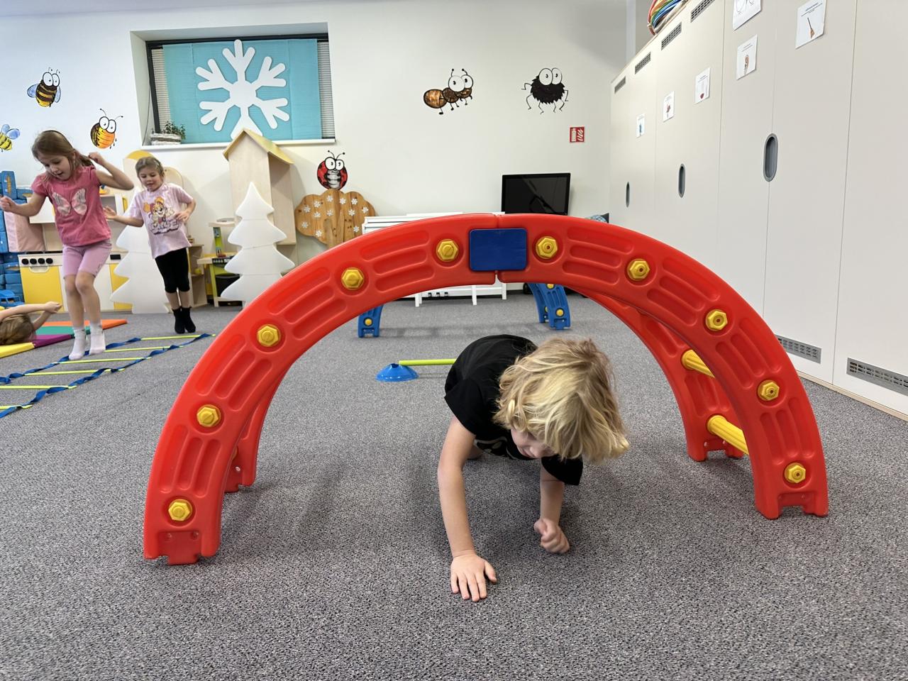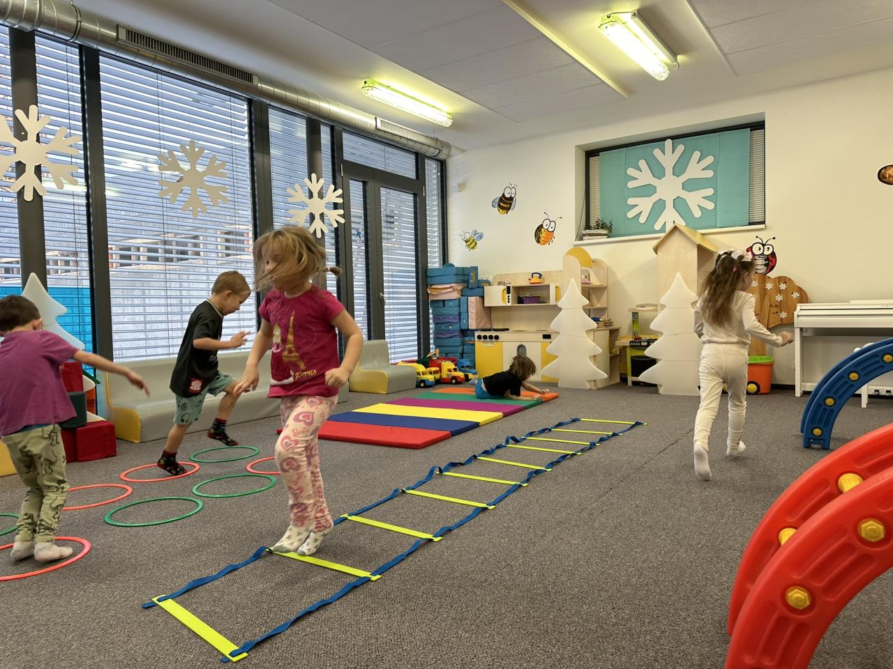 Tento týden děti vyráběly koruny, navrhly a postavily si překážkovou dráhu a při pobytu venku si užily koulování na sněhu.