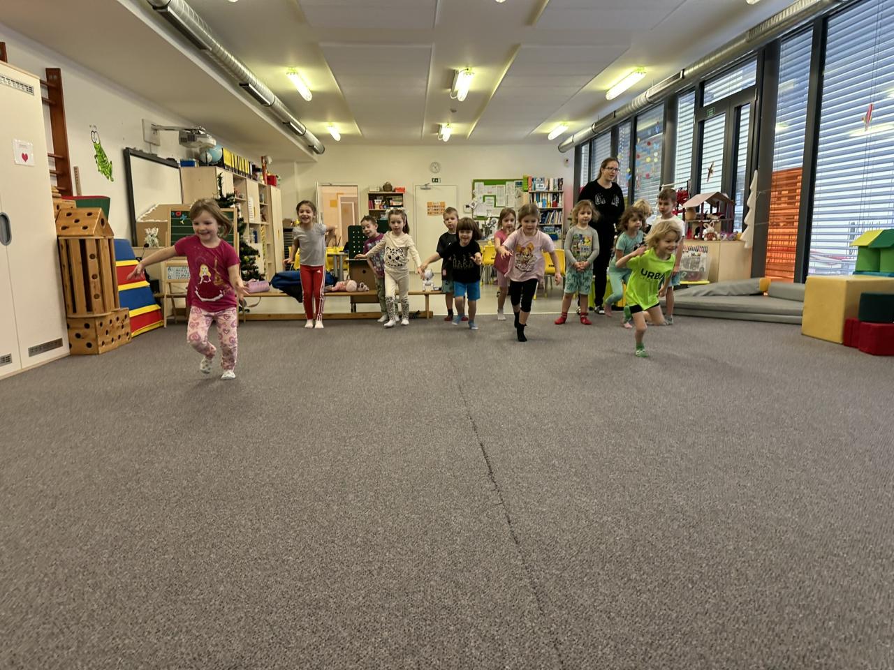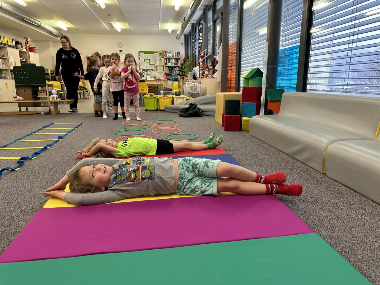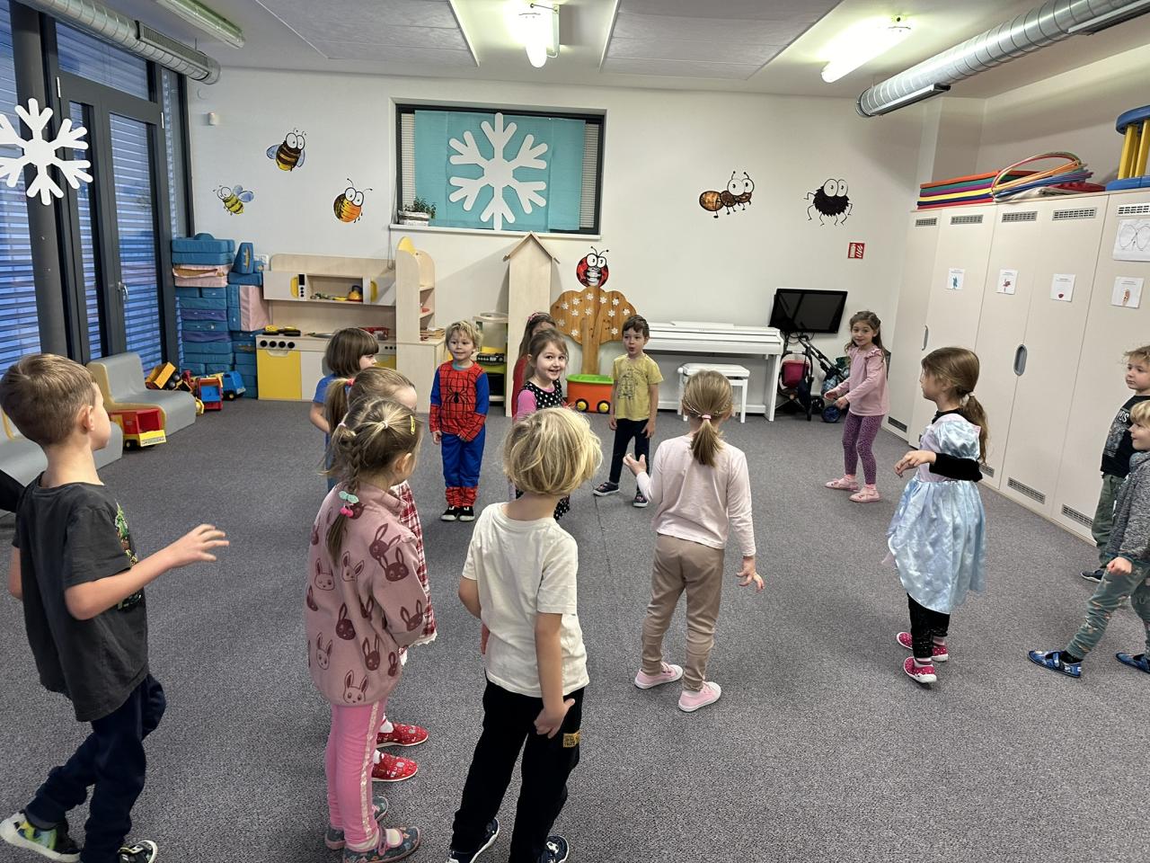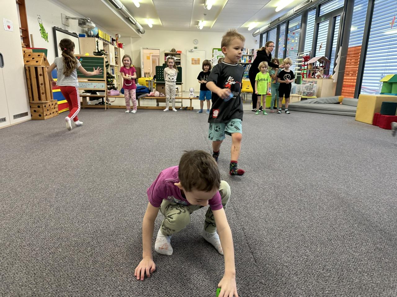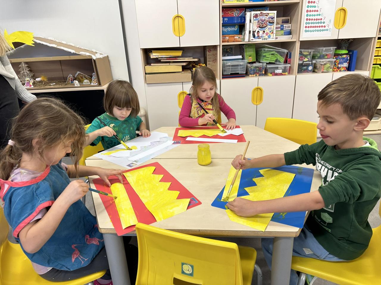Tento týden děti vyráběly koruny, navrhly a postavily si překážkovou dráhu a při pobytu venku si užily koulování na sněhu.