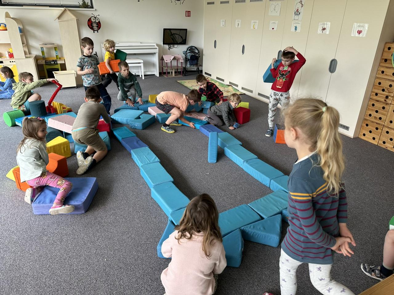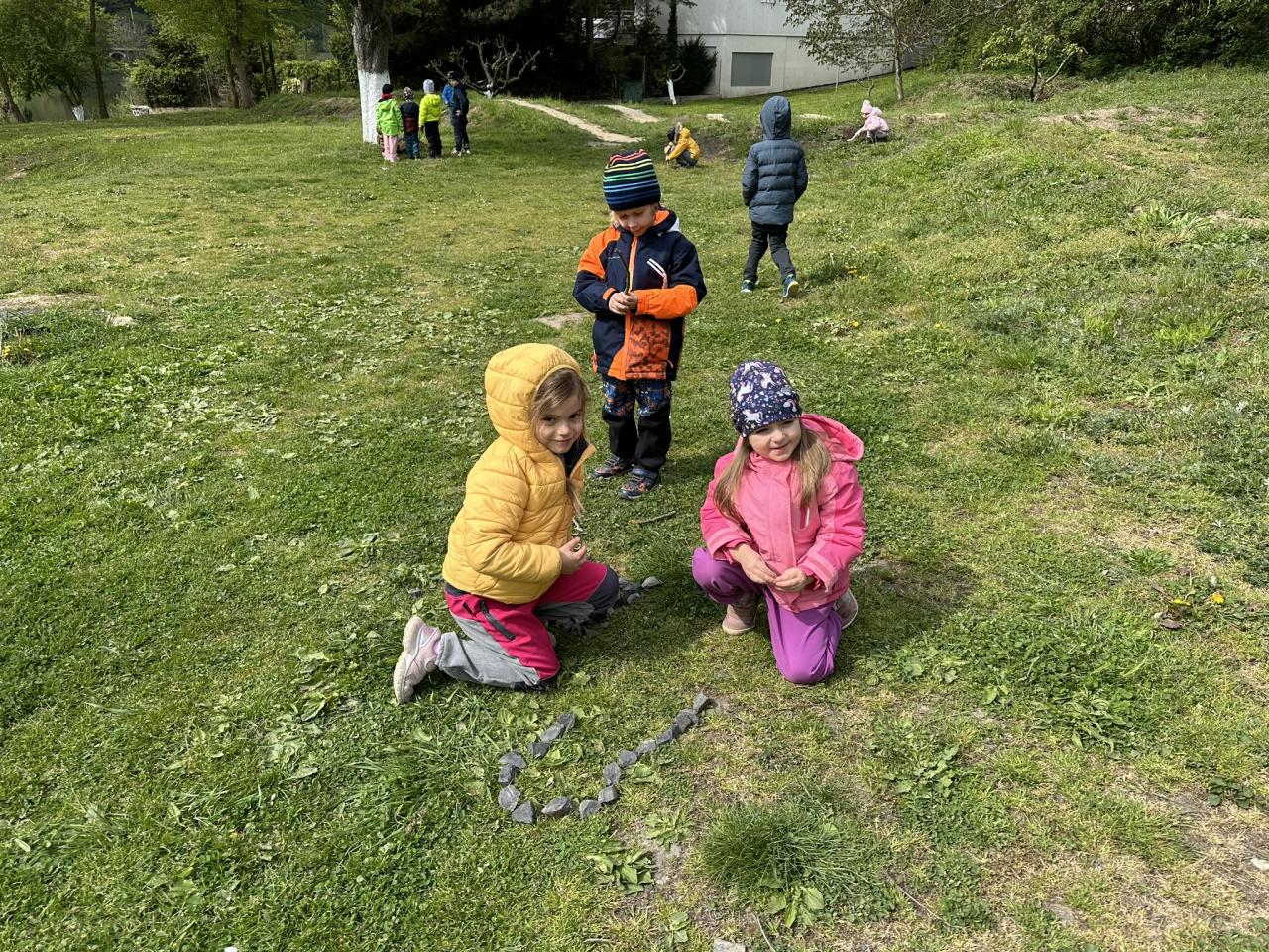 V dubnu jsme ve školce měli téma Vesmír. Děti společně ve třídě stavěly vesmírnou raketu z molitanových kostek. Venku pak v malých skupinkách tvořily další rakety z přírodnin, které našly kolem. Každá skupinka měla krásnou a originální raketu.