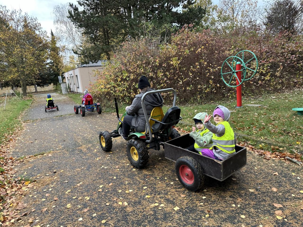 S dětmi jsme se jeli podívat na zvířátka do Klecan. Pro zvířátka si děti připravily i různé dobroty, které jim chutnají. Děti, které chtěly, se mohly povozit na poníkovi a všechny děti jezdily na šlapacích autech. Byl to krásný den plný zábavy pro všechny děti.