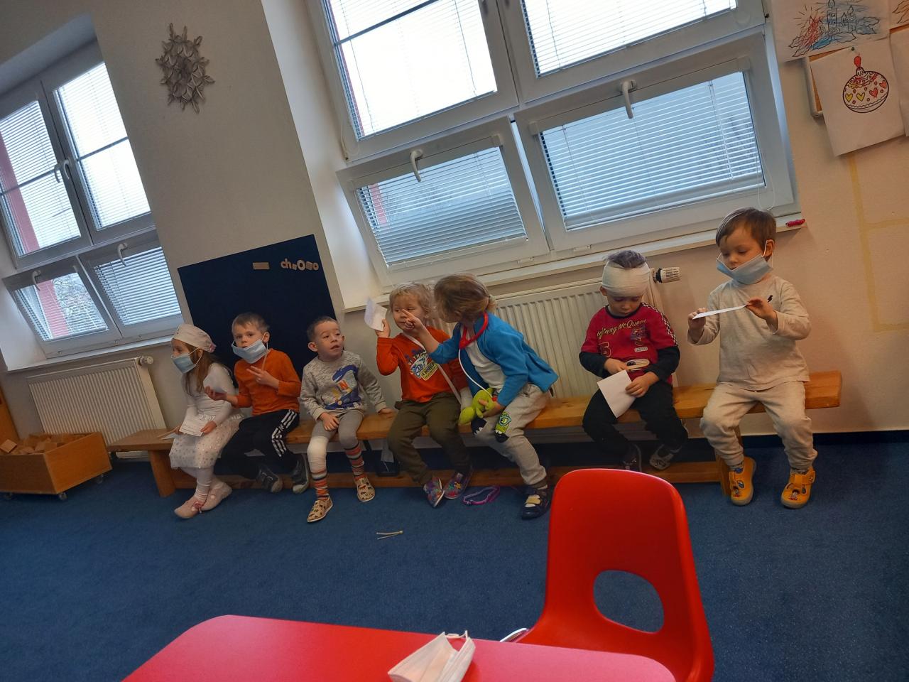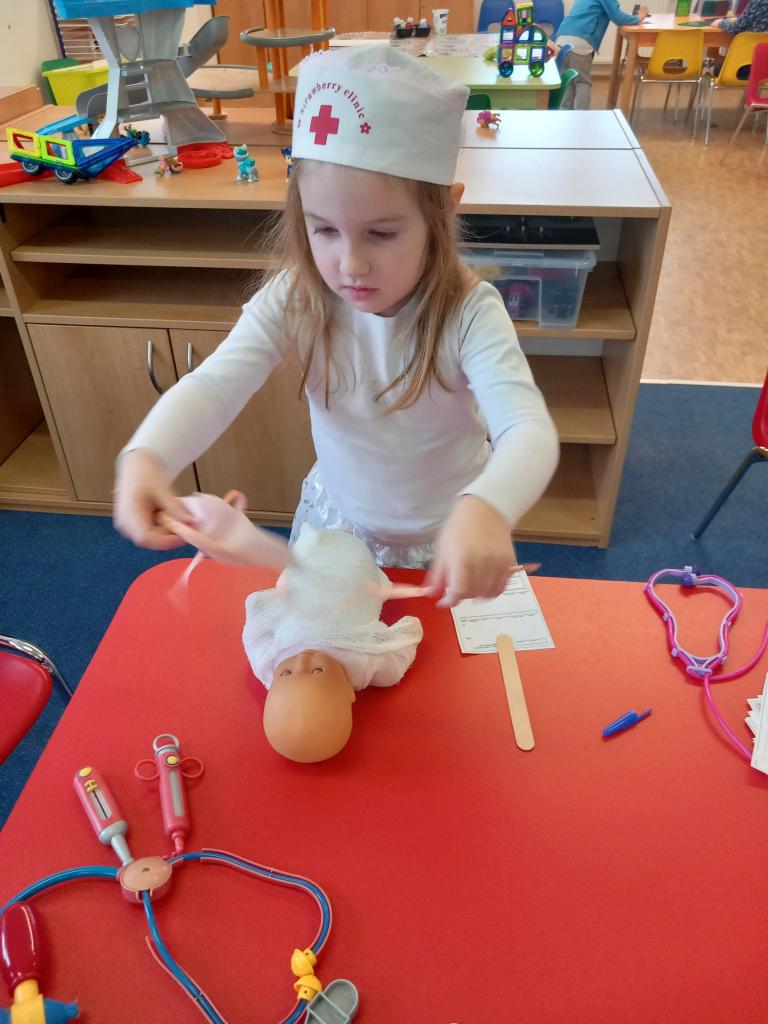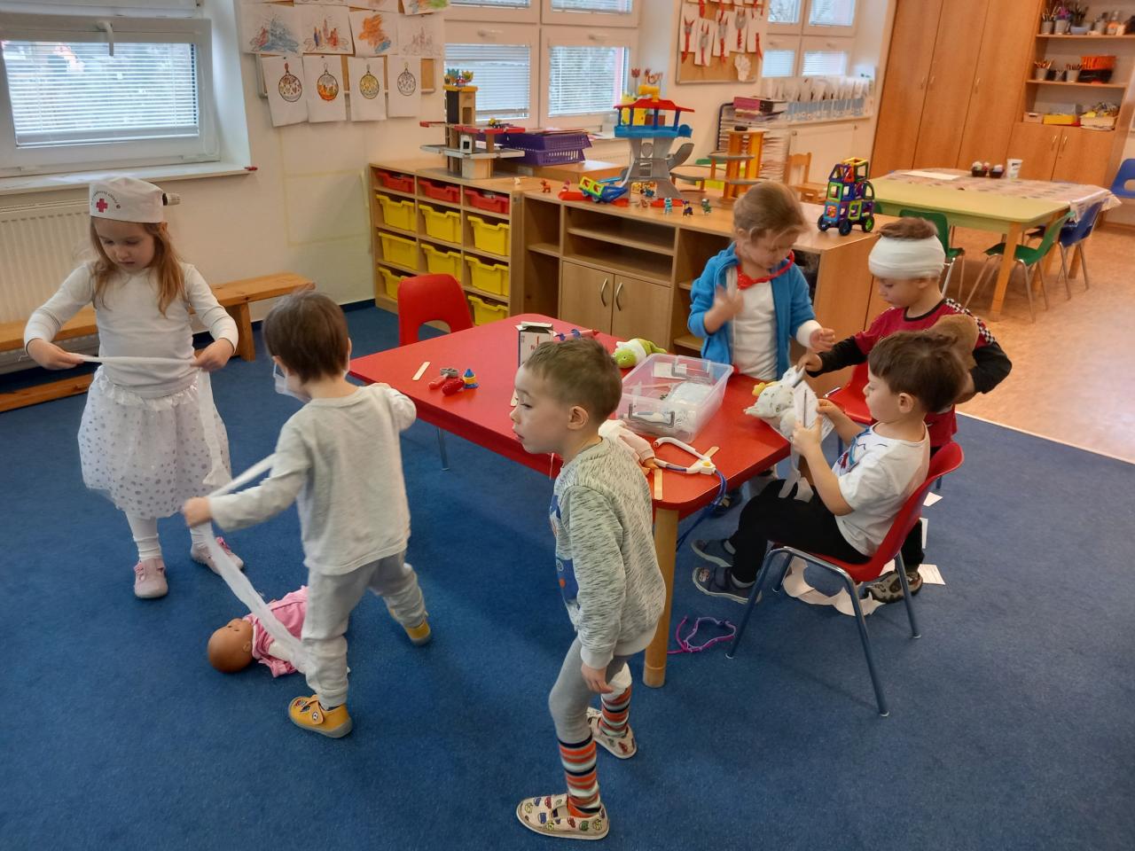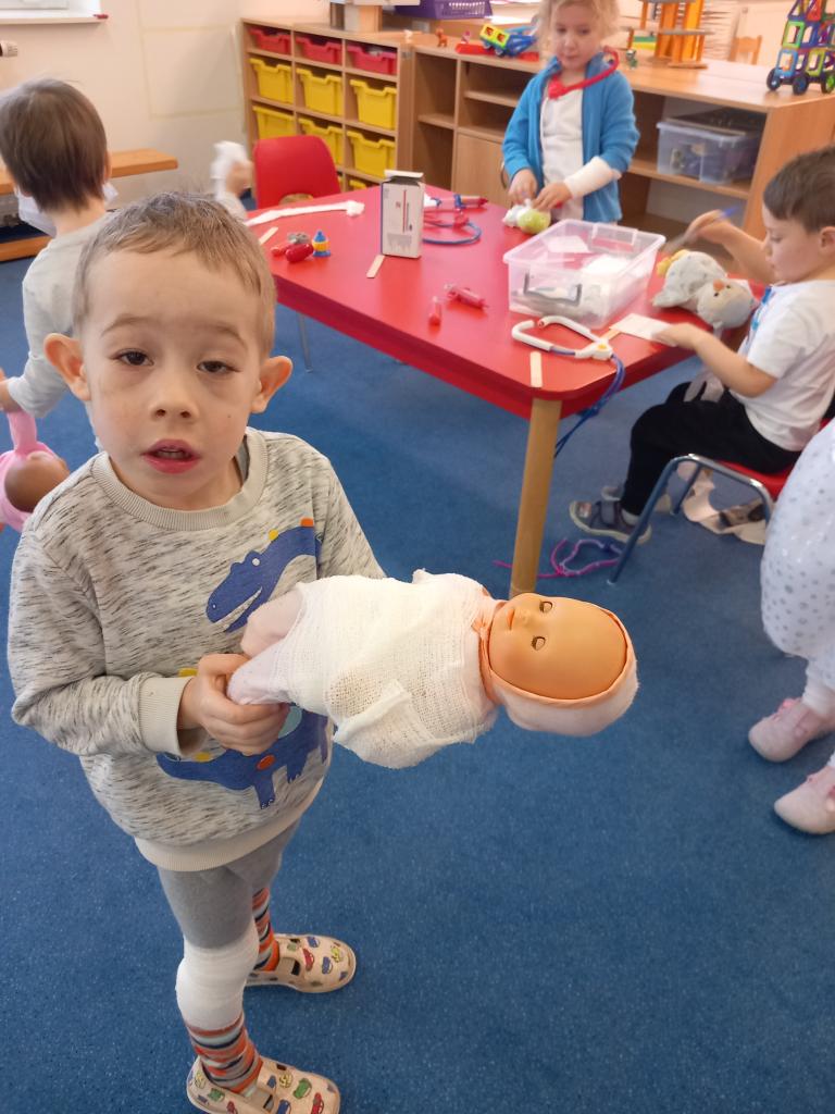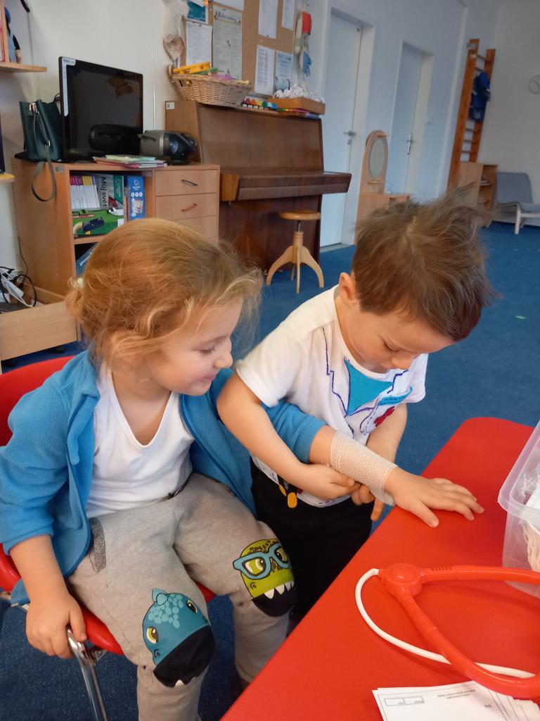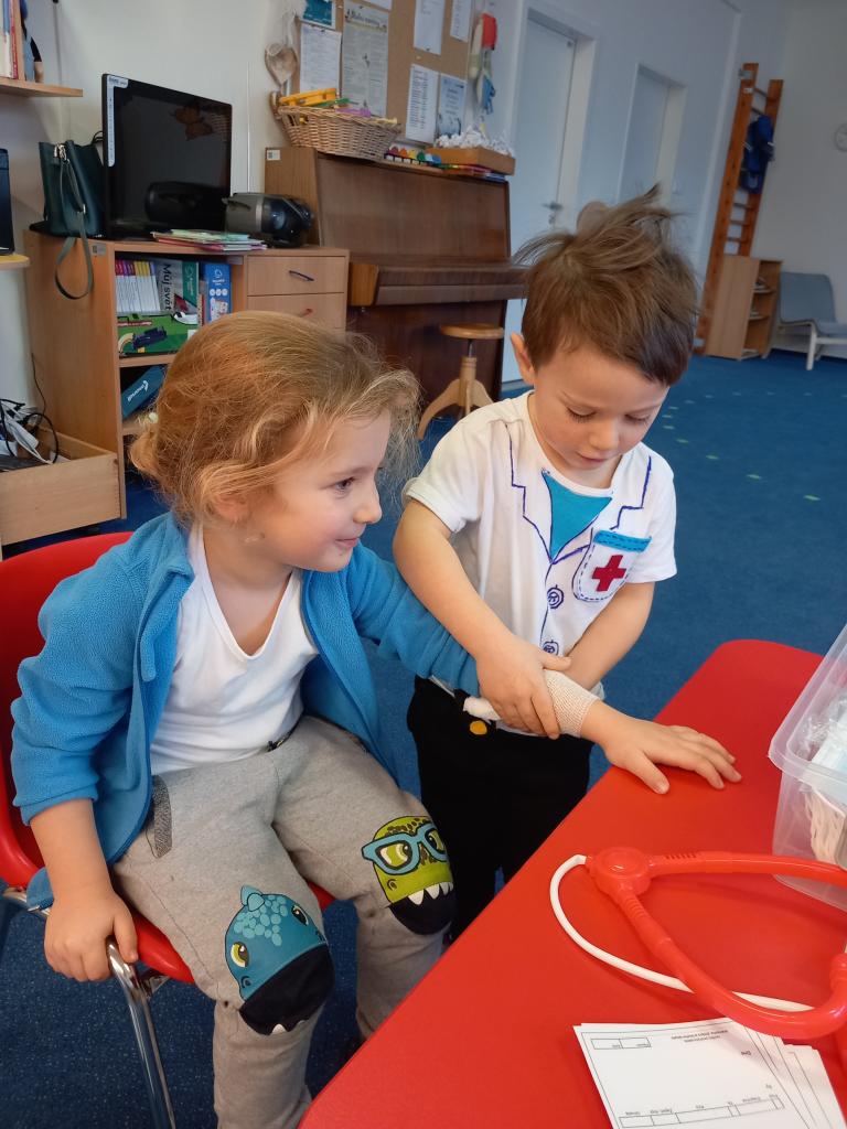 V týdnu, kdy bylo téma „Moje zdraví“ jsme si zahráli na doktory, zdravotní sestřičky či bratry a pacienty.