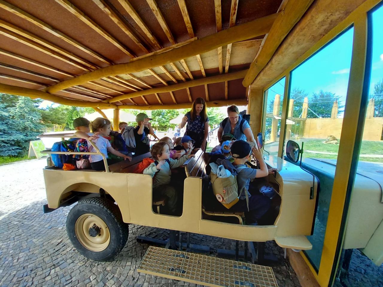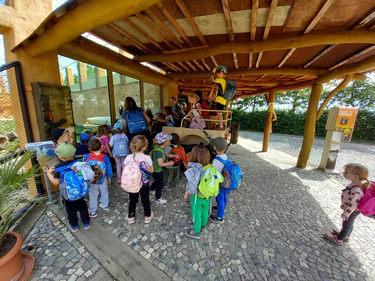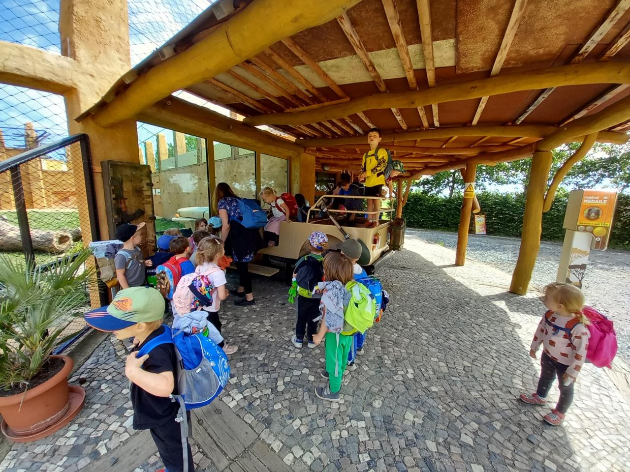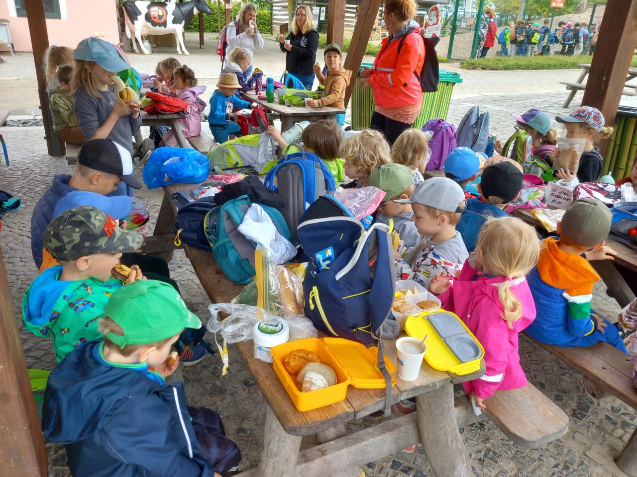 Celodenní výlet do ZOO Chleby – děti měly možnost prohlédnout si zvířátka - medvědy, velbloudy, surikaty, lva, kuřátka se slepičkou, hada, želvy, papoušky, páva, kozy, klokany, emu a mnoho dalších zvířátek. Určitě jsme nezapomněli ani na dětské hřiště. Děti si výlet moc užily.
